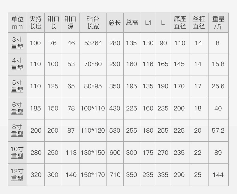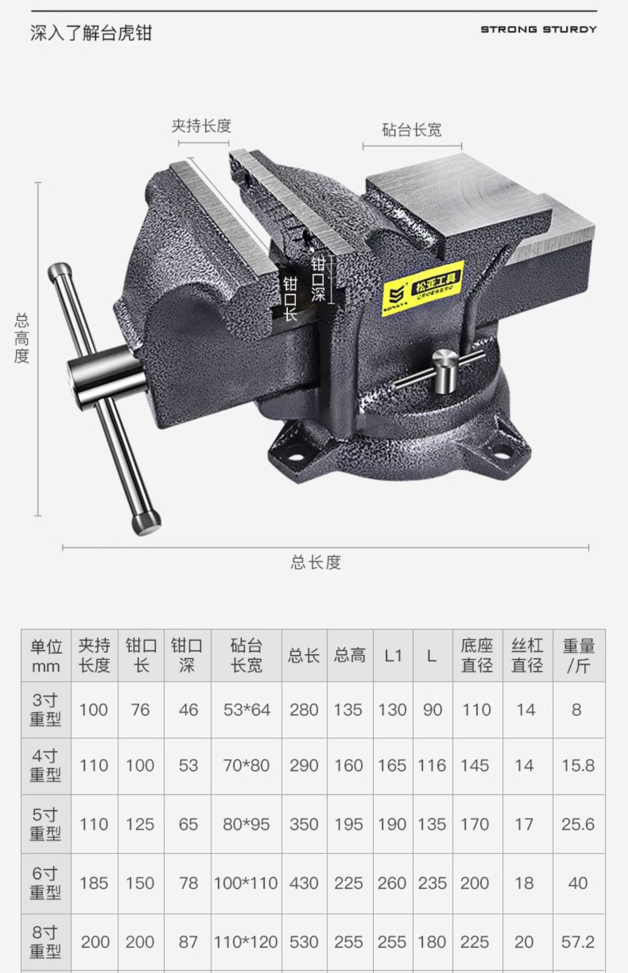 3inch Сверхмощный [ 4kg] [Бесплатные фиксированные болты/3-летняя гарантия]; 4inch Сверхмощный [ 4.7kg] [Бесплатные фиксированные болты/3-летняя гарантия/утолщенные и утяжеленные]; 4inch Немецкий тяжелый режим [ 5kg] [Бесплатные фиксированные болты/3-летняя гарантия]; 4inch Улучшенный сверхмощный [ 7.9kg] [Бесплатные фиксированные болты/3-летняя гарантия/утолщенный и утяжеленный]; 5inch Сверхмощный [ 8kg] [Бесплатные фиксированные болты/3-летняя гарантия]; 5inch Улучшенный сверхмощный [ 12.8kg] [Бесплатные фиксированные болты/3-летняя гарантия/утолщенный и утяжеленный]; 6inch Сверхмощный [ 13.5kg] [Бесплатные фиксированные болты/3-летняя гарантия]; 6inch Улучшенный сверхмощный [ 20kg] [Бесплатные фиксированные болты/3-летняя гарантия/утолщенный и утяжеленный]; 8inch Сверхмощный [ 21.2kg] [Бесплатные фиксированные болты/3-летняя гарантия]; 8inch Улучшенный сверхмощный [ 29kg] [Бесплатные фиксированные болты/3-летняя гарантия/утолщенный и утяжеленный]; 10inch Сверхмощный [ 30kg] [Бесплатные фиксированные болты/3-летняя гарантия]; 10inch Усовершенствованная сверхмощная модель [ 49kg] [Бесплатные фиксированные болты/3-летняя гарантия/утолщенная и утяжеленная]; 12inch Сверхмощный [ 48kg] [Бесплатные фиксированные болты/3-летняя гарантия]; 12inch Улучшенный сверхмощный [ 75kg] [Бесплатные фиксированные болты/3-летняя гарантия/утолщенный и утяжеленный]; 4inch Полностью стальная модель [ 6.5kg] [Бесплатные фиксированные болты/пожизненная гарантия/все утяжеленная сталь]; 5inch Цельностальная модель с вогнутыми и выпуклыми канавками [ 11kg] [Бесплатные фиксированные болты/пожизненная гарантия/весная сталь]; 6inch Цельностальная модель с вогнутыми и выпуклыми канавками [ 15kg] [Бесплатные фиксированные болты/пожизненная гарантия/весная сталь]; 6inch Цельностальная модель с роговой головкой [ 15kg] [Бесплатные фиксированные болты/пожизненная гарантия/все утяжеленная сталь]; 8inch Цельностальная модель с вогнутыми и выпуклыми канавками [ 21kg] [Бесплатные фиксированные болты/пожизненная гарантия/весная сталь]; 10inch Цельностальная модель с вогнутыми и выпуклыми канавками [ 30kg] [Бесплатные фиксированные болты/пожизненная гарантия/весная сталь]; Немецкий стиль 5inch тяжелый тип [ 5.3kg] поставляется с крепежными болтами; Немецкий стиль 6inch тяжелый тип [ 8.1kg] поставляется с крепежными болтами; Немецкий стиль 8inch тяжелый тип [ 12kg] поставляется с крепежными болтами; 4inch Многофункциональные тиски с двойной губкой [ 9.5kg] Поставляется с крепежными болтами; 5inch Многофункциональные тиски с двойной губкой [ 16kg] Поставляется с крепежными болтами