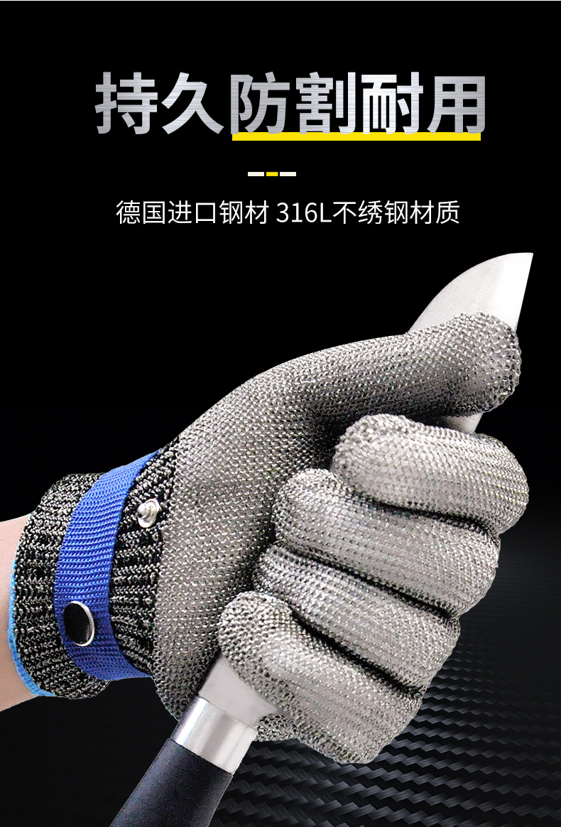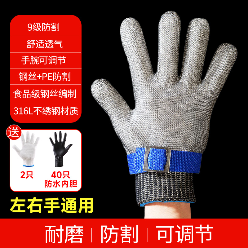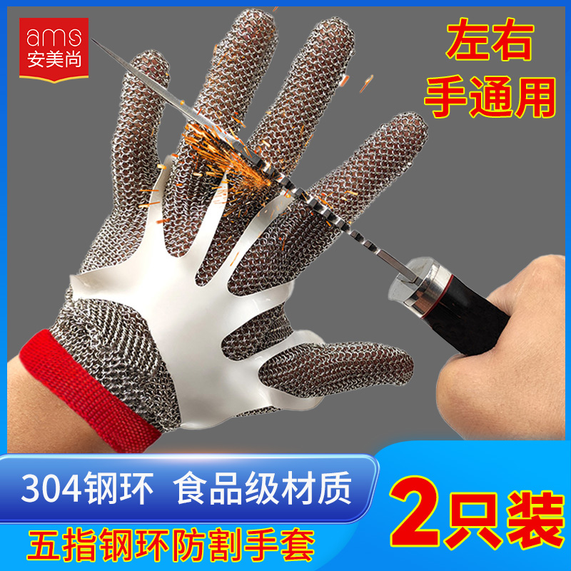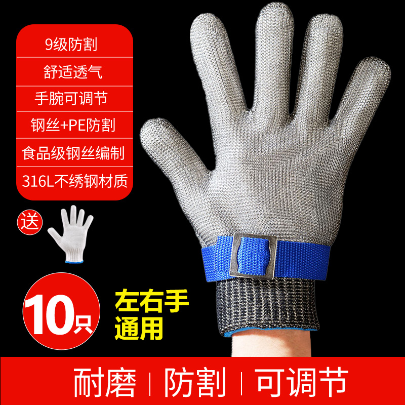 Стальная проволока анти-порезы с пятью пальцами Перчатки из нержавеющей стали 9 уровней анти-ножа и анти-колючие