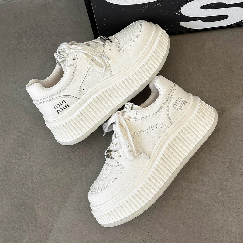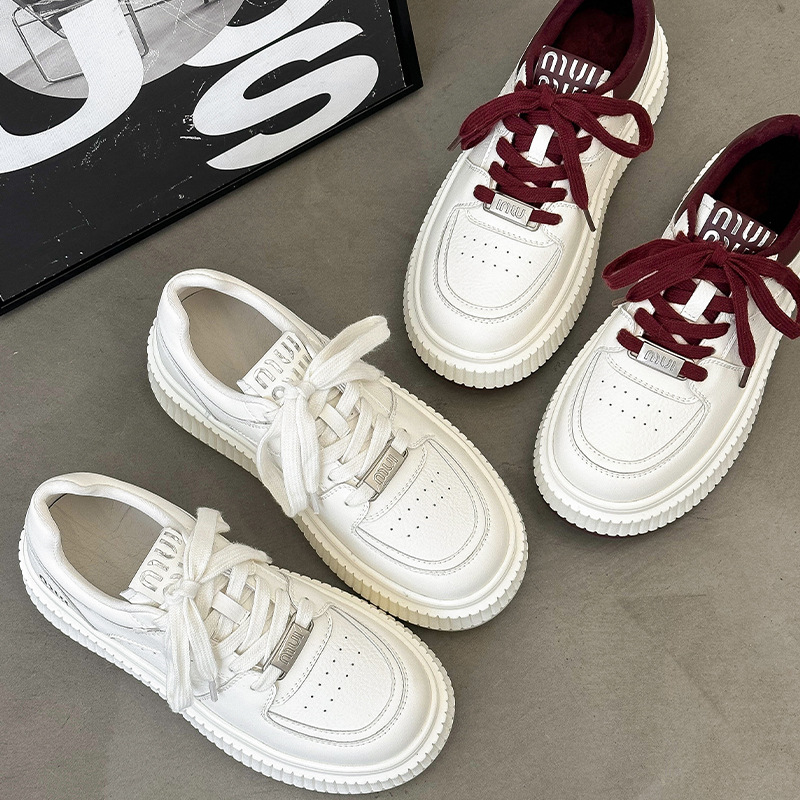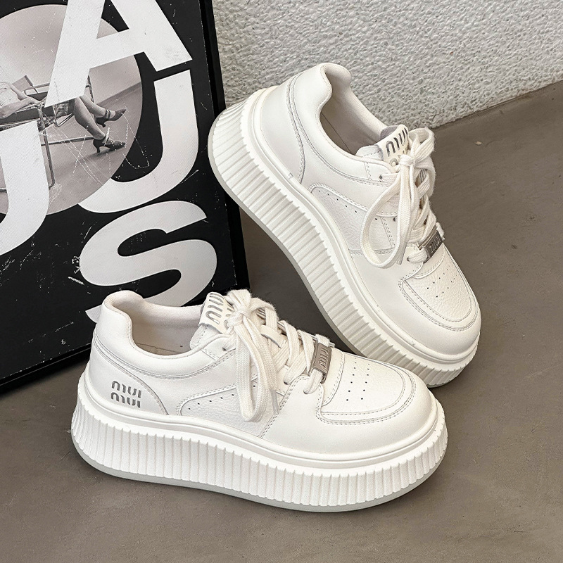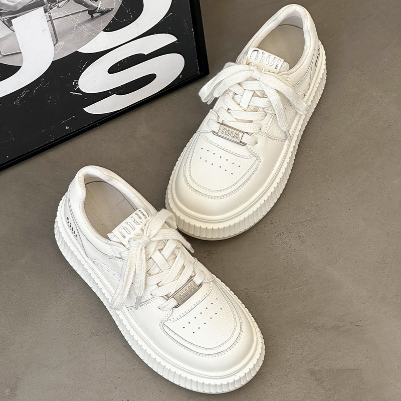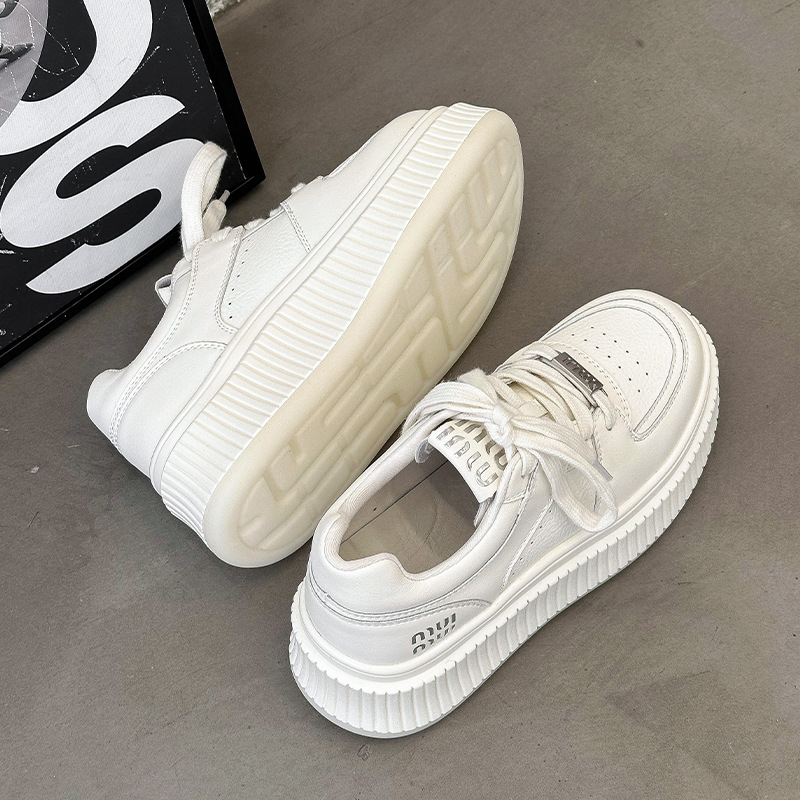 Кожаные кексы с толстой подошной пленкой на дне маленькие белые туфли женские 2024 зимние новые женские туфли