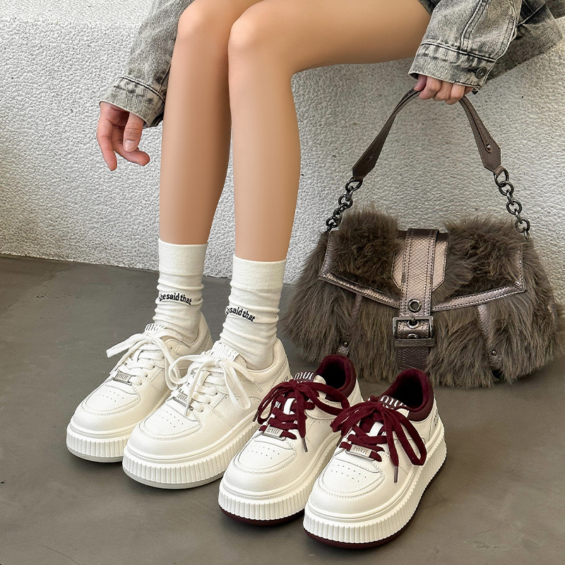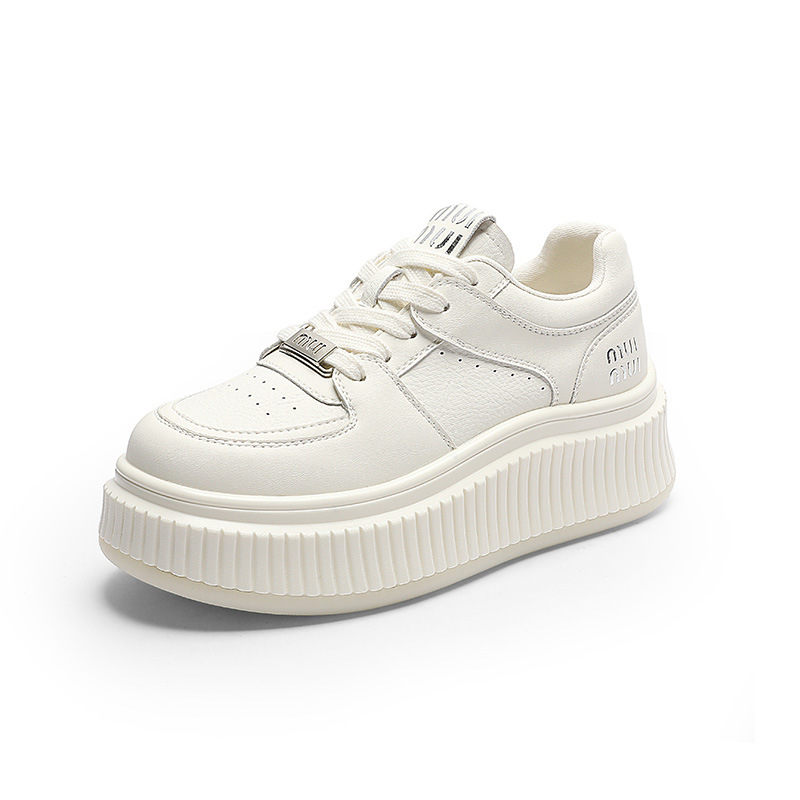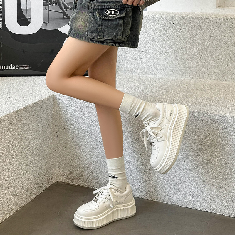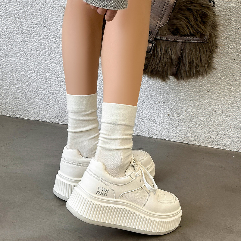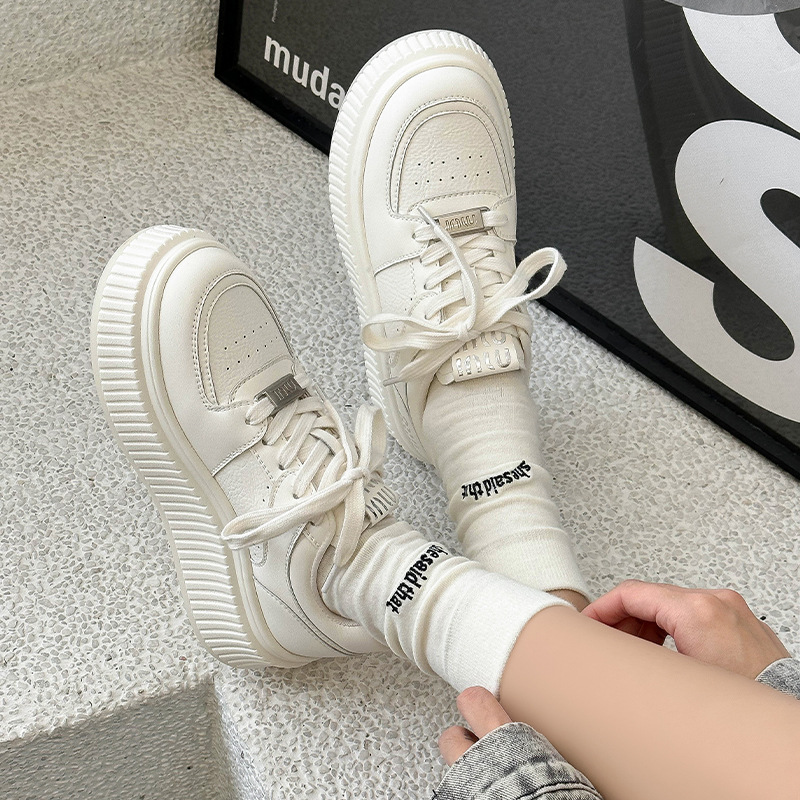 Кожаные кексы с толстой подошной пленкой на дне маленькие белые туфли женские 2024 зимние новые женские туфли