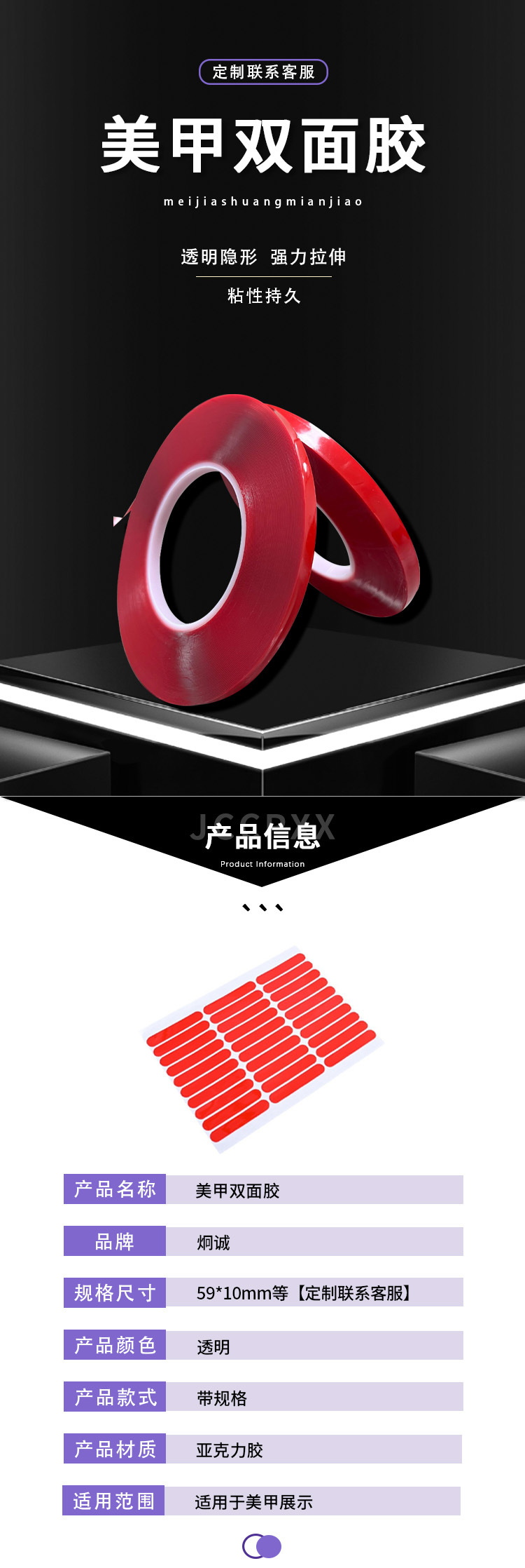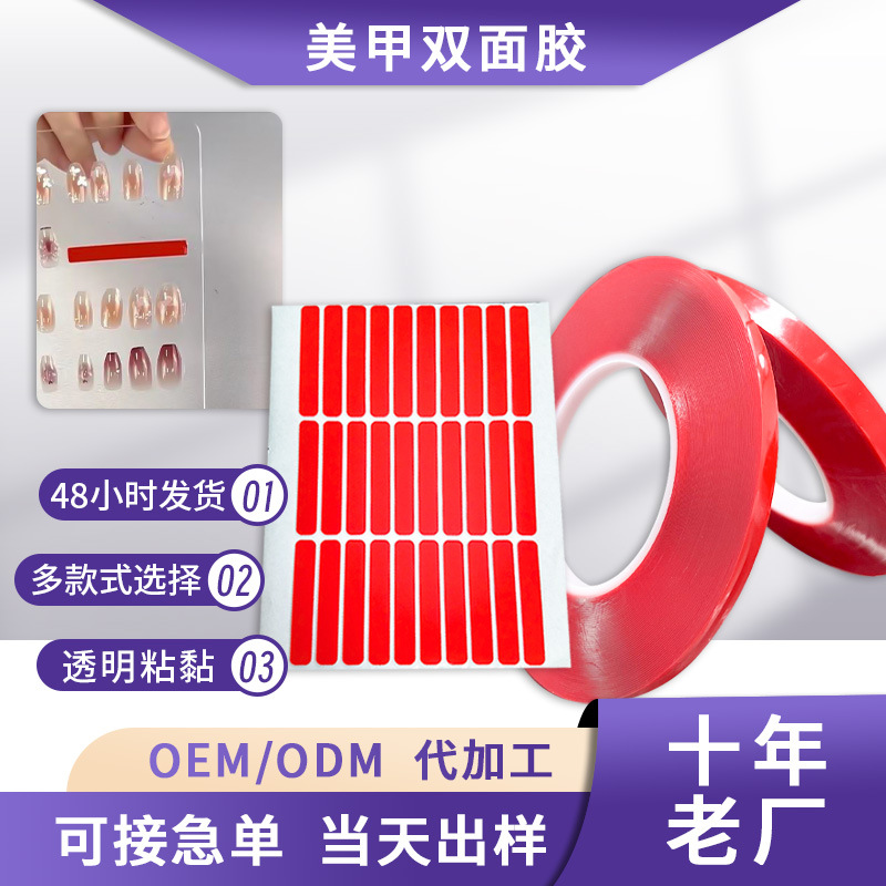 穿戴美甲透明水晶双面胶免裁剪长条胶30贴超粘无痕纳米胶带5/10米