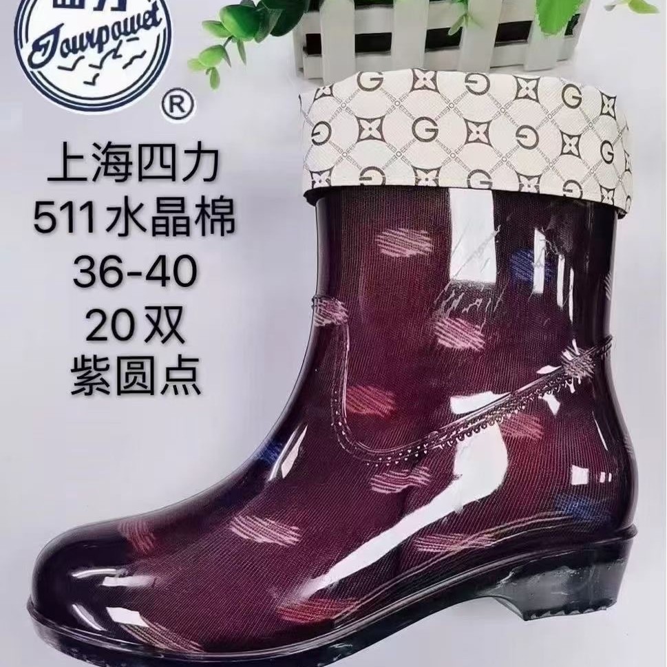Четыре силы 511 хрустальные хлопчатобумажные резиновые сапоги женские высокие трубочки ватные резиновые сапоги универсальные удобные нескользкие водонепроницаемые туфли