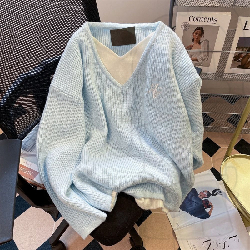 Осенние поддельные два мягких воска внешнее чувство дизайна с v-образным вырезом