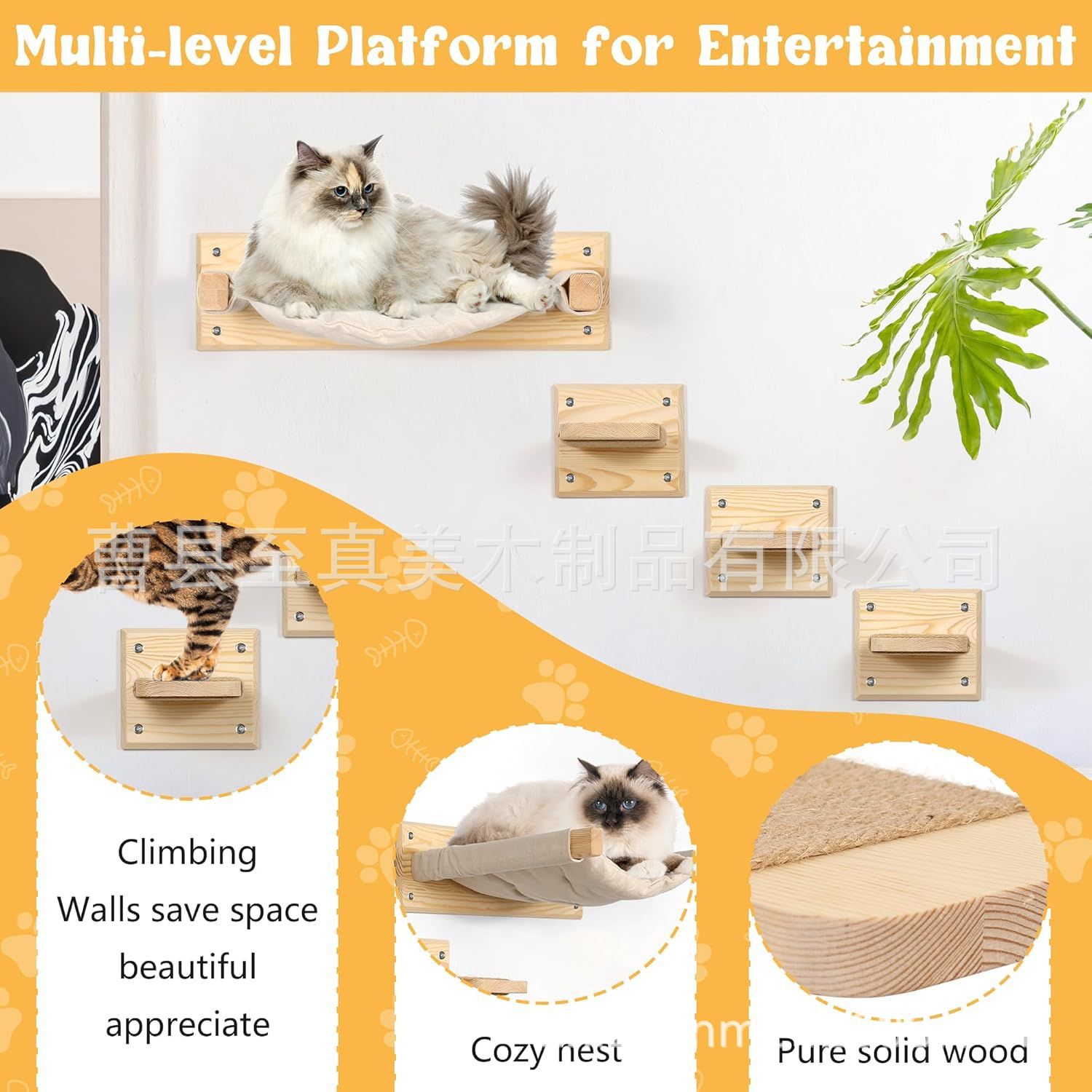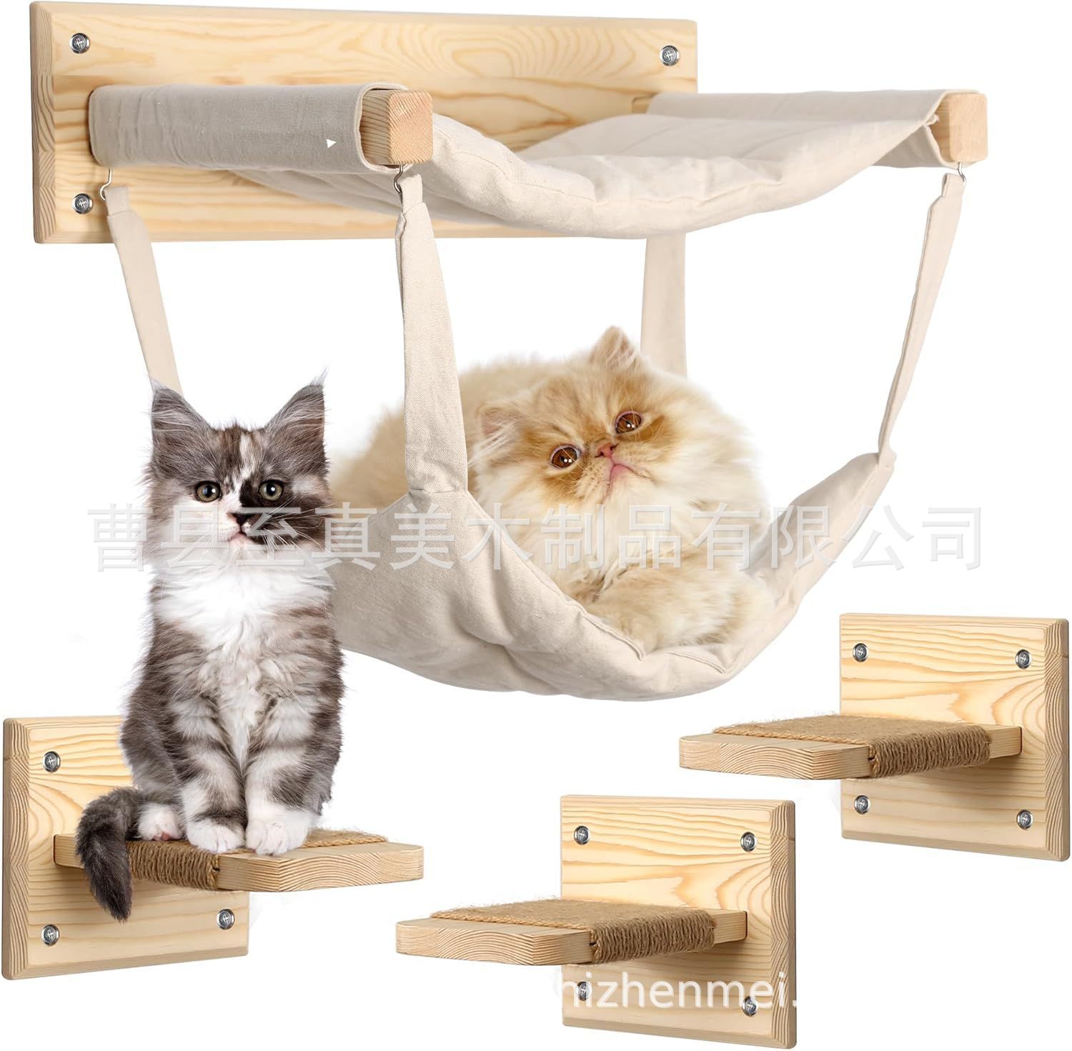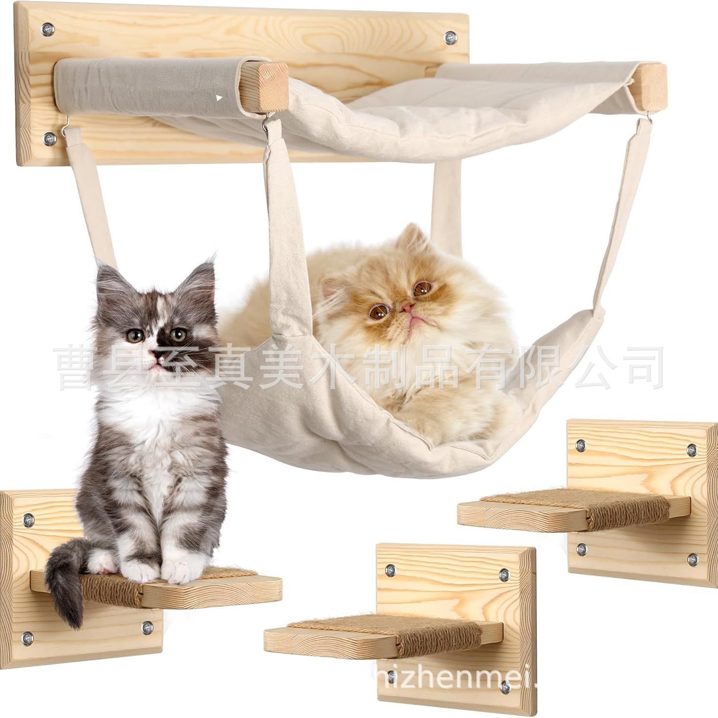 Деревянный настенный двухслойный кошачий гамак, комбинированный комплект платформы для прыжков кошек