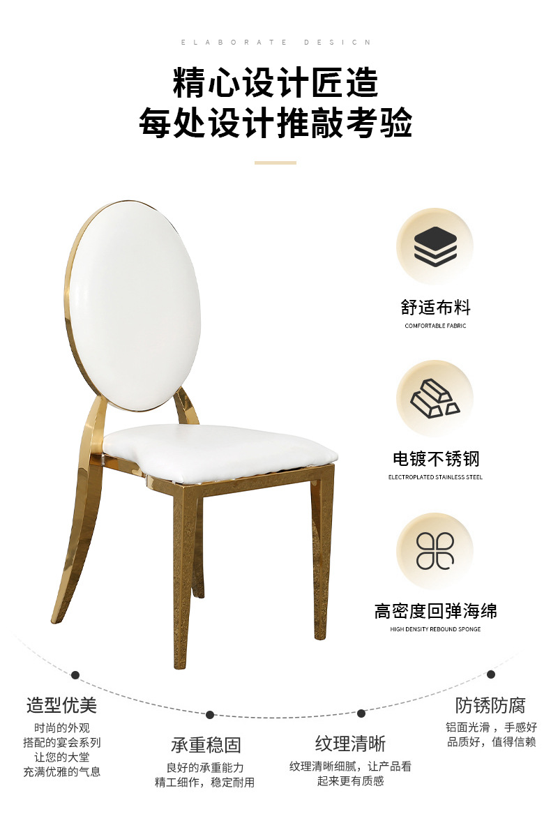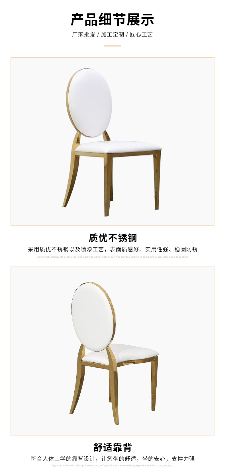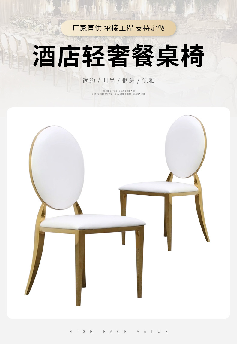 Прямые продажи с фабрики обеденные стулья из нержавеющей стали, легкие роскошные свадебные столы и стулья, банкетный зал, свадебные стулья, ресторан, отель, домашние стулья с круглой спинкой
