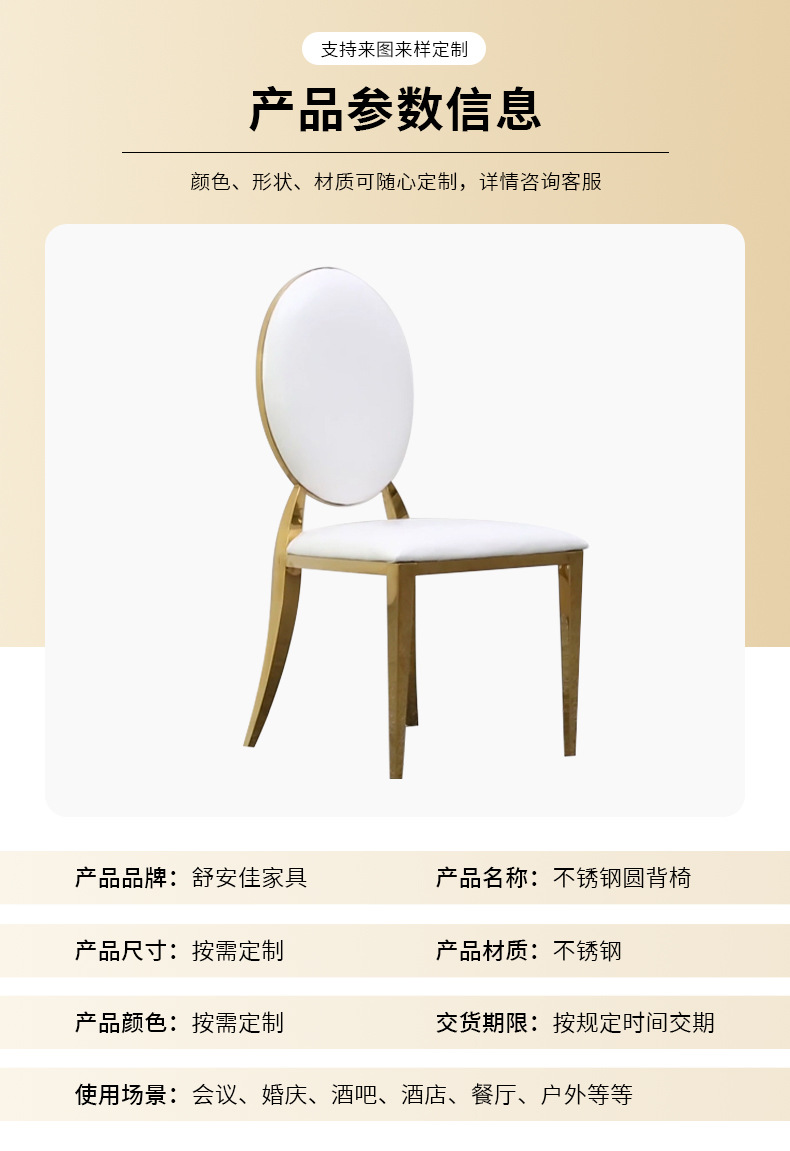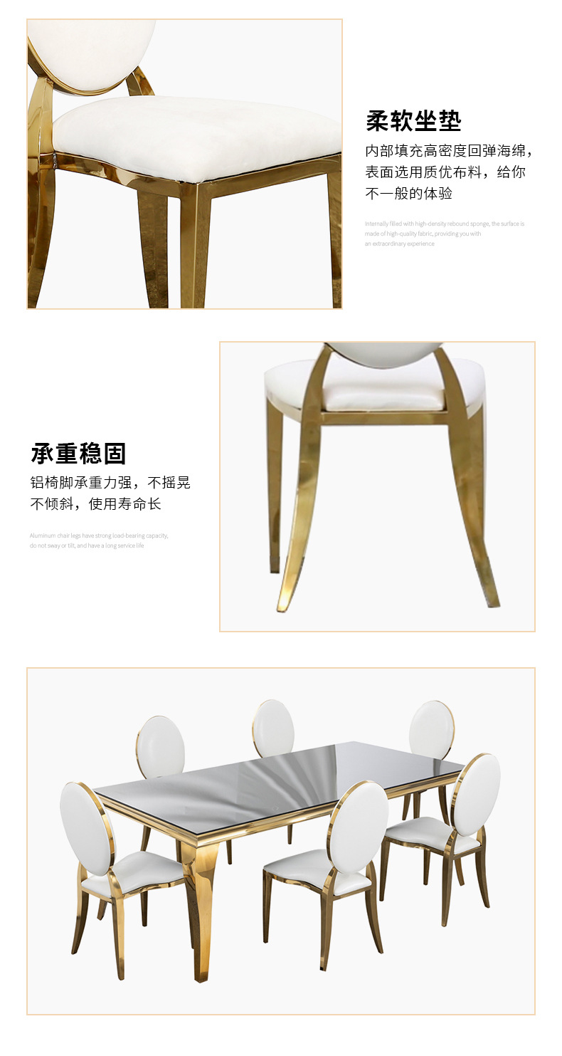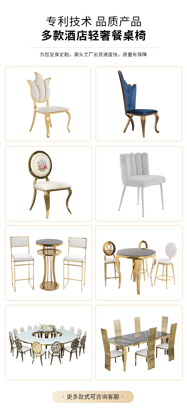 Прямые продажи с фабрики обеденные стулья из нержавеющей стали, легкие роскошные свадебные столы и стулья, банкетный зал, свадебные стулья, ресторан, отель, домашние стулья с круглой спинкой
