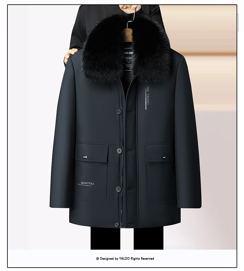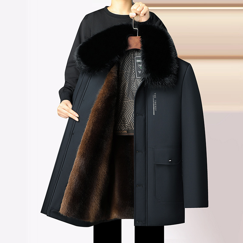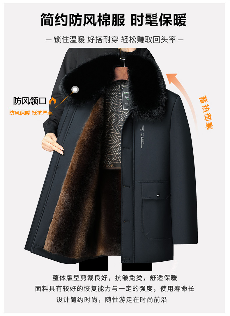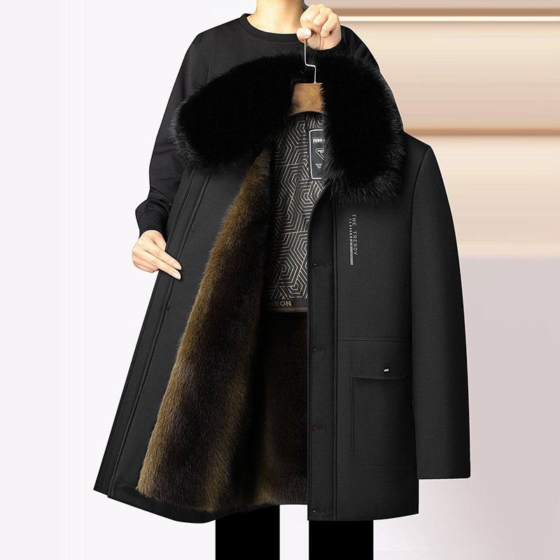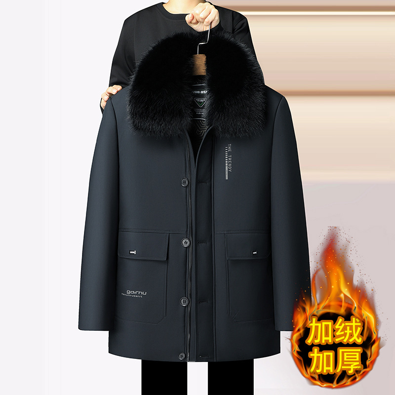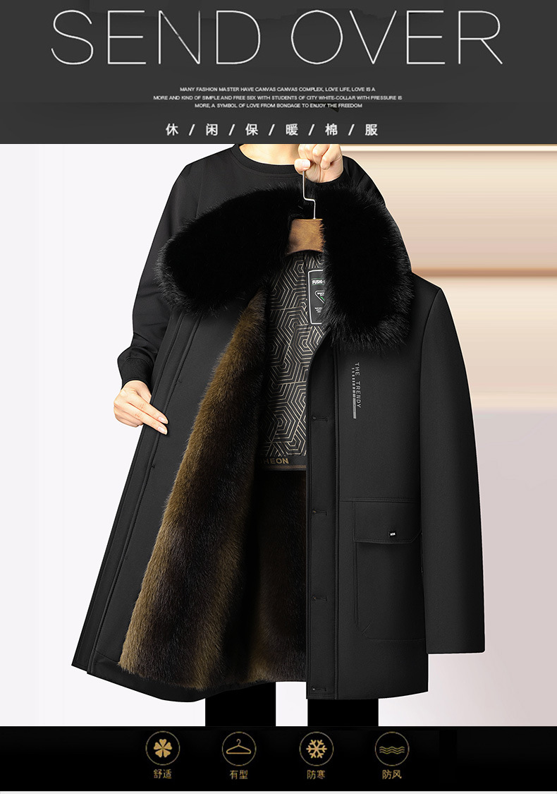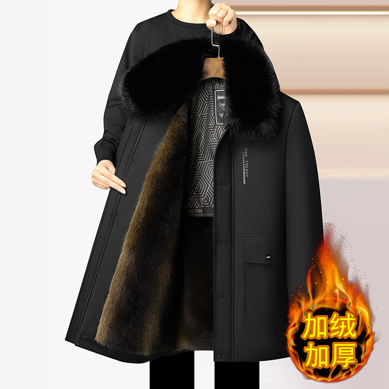 Новая модель пальто для мужчин среднего и пожилого возраста (50-60 лет), повседневное хлопковое пальто, утепленное флисом с большим меховым воротником для зимы.