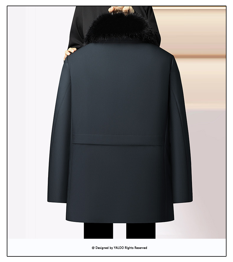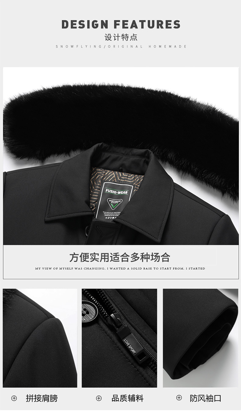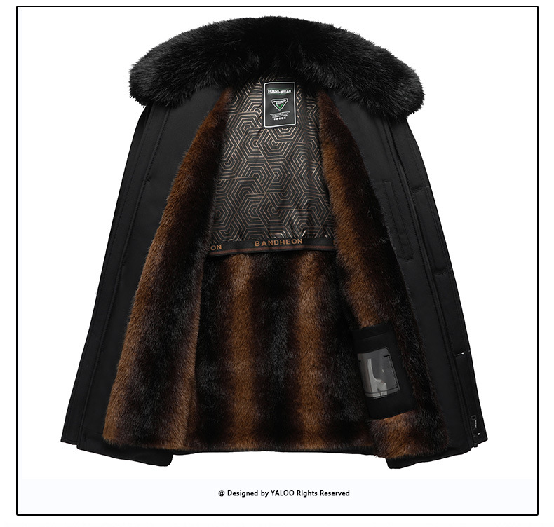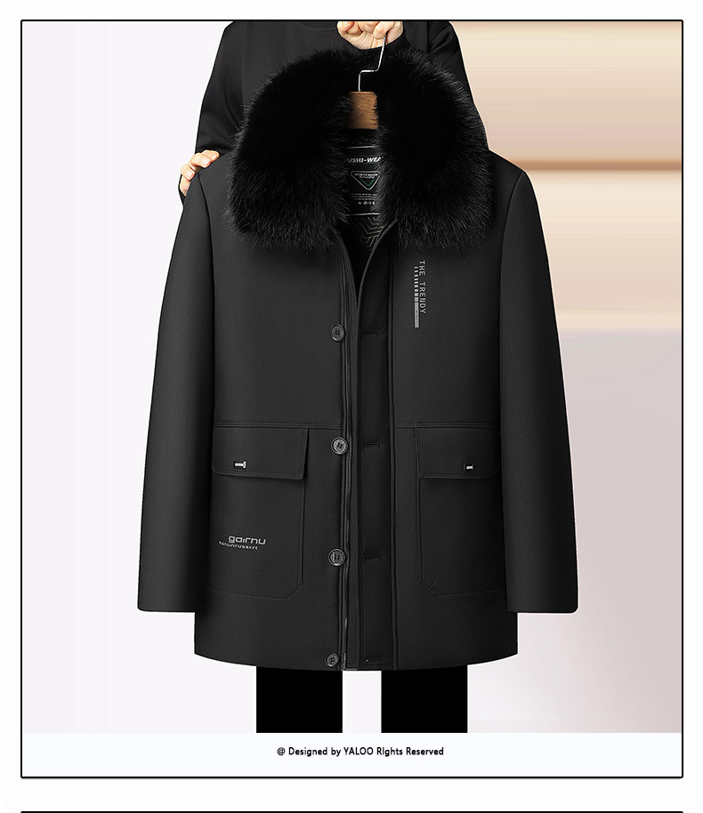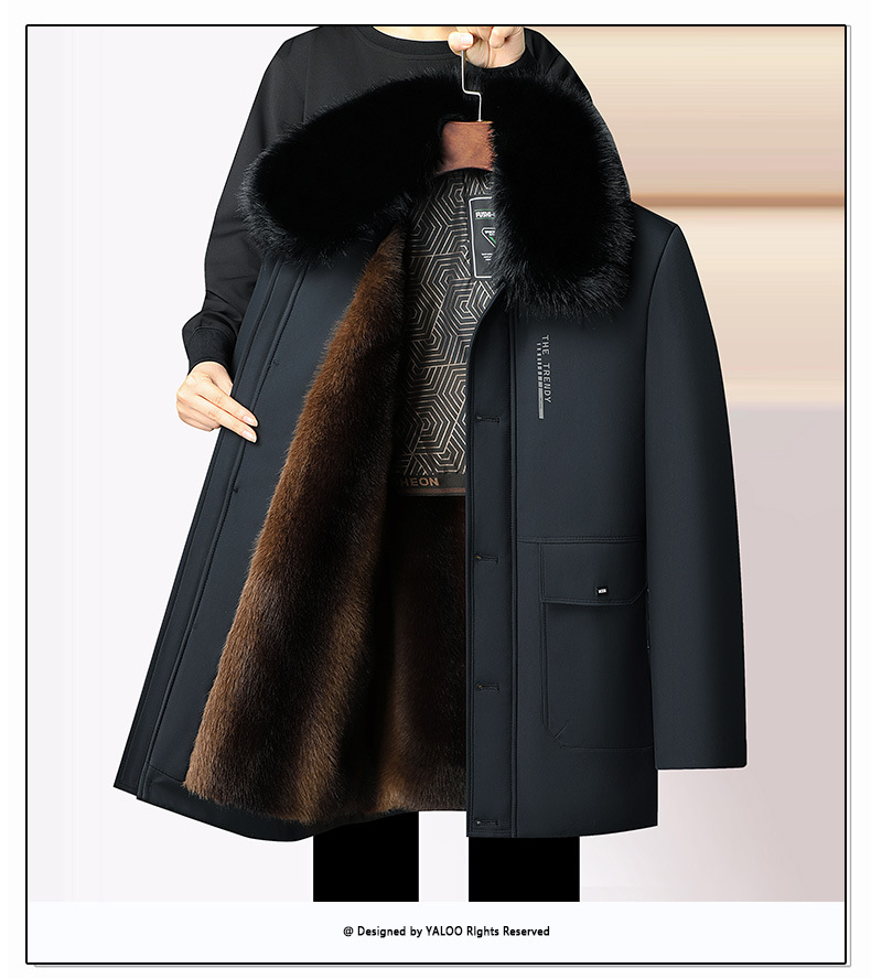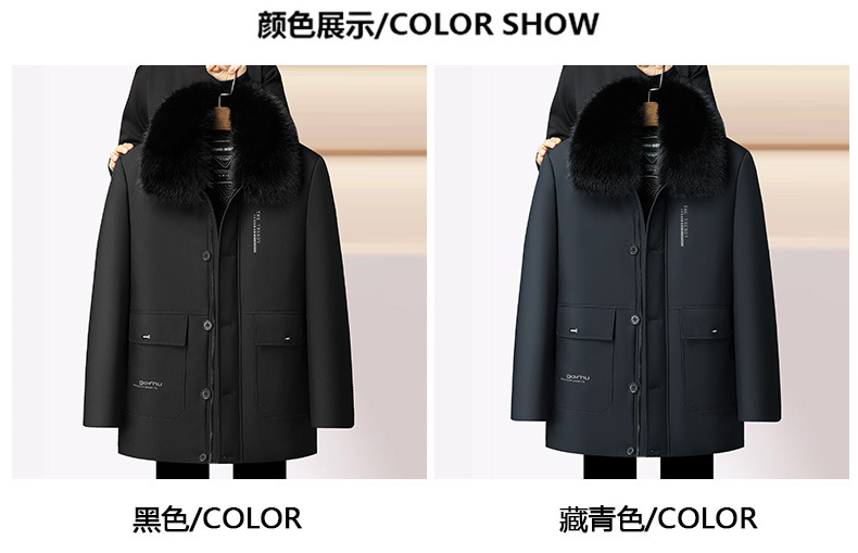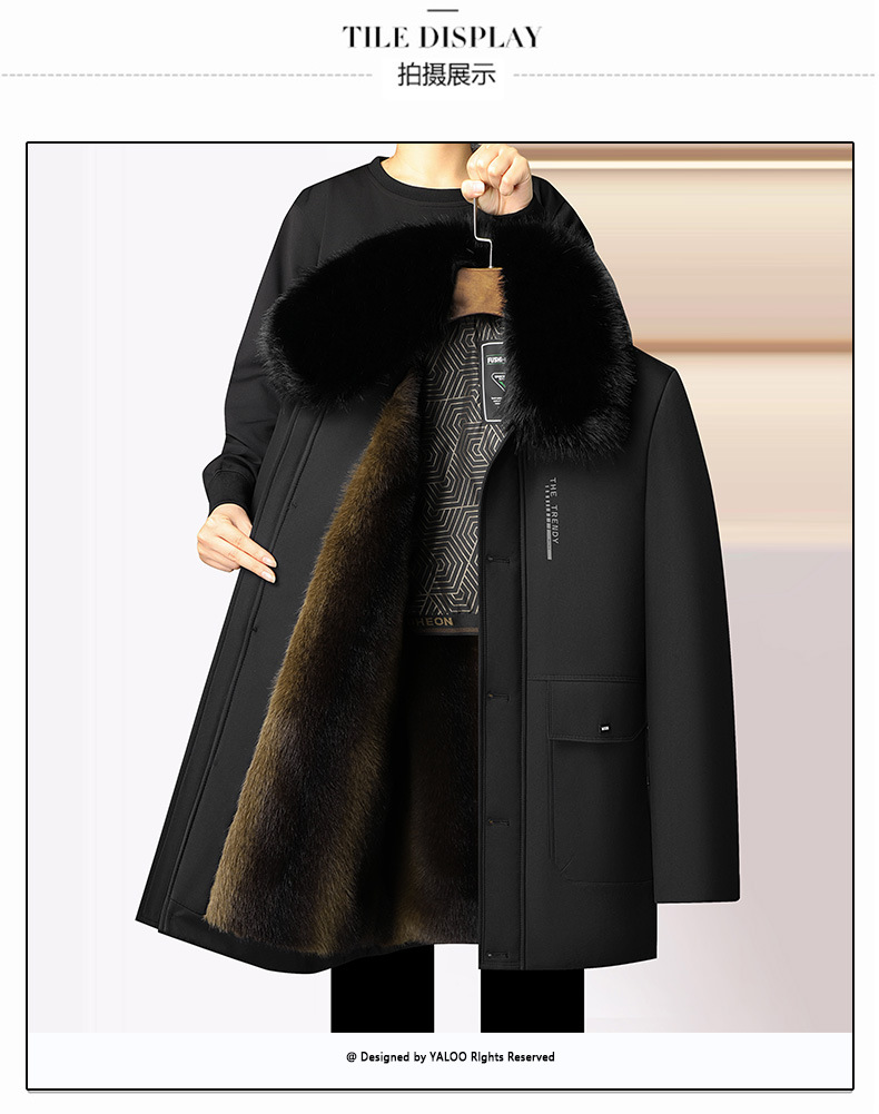 Новая модель пальто для мужчин среднего и пожилого возраста (50-60 лет), повседневное хлопковое пальто, утепленное флисом с большим меховым воротником для зимы.
