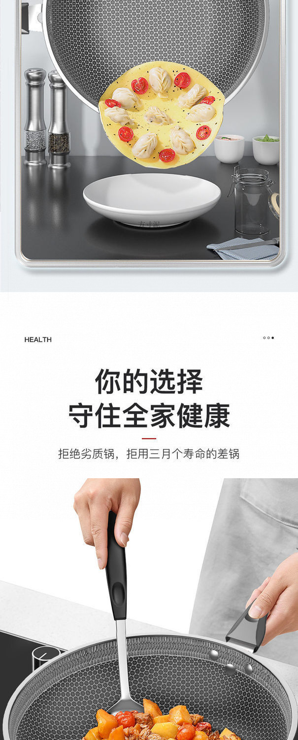Вок и сотовая нержавеющая сталь, легкий дым, антипригарный горшок, утолщенный плоский дно, домашняя индукционная плита, общий газ