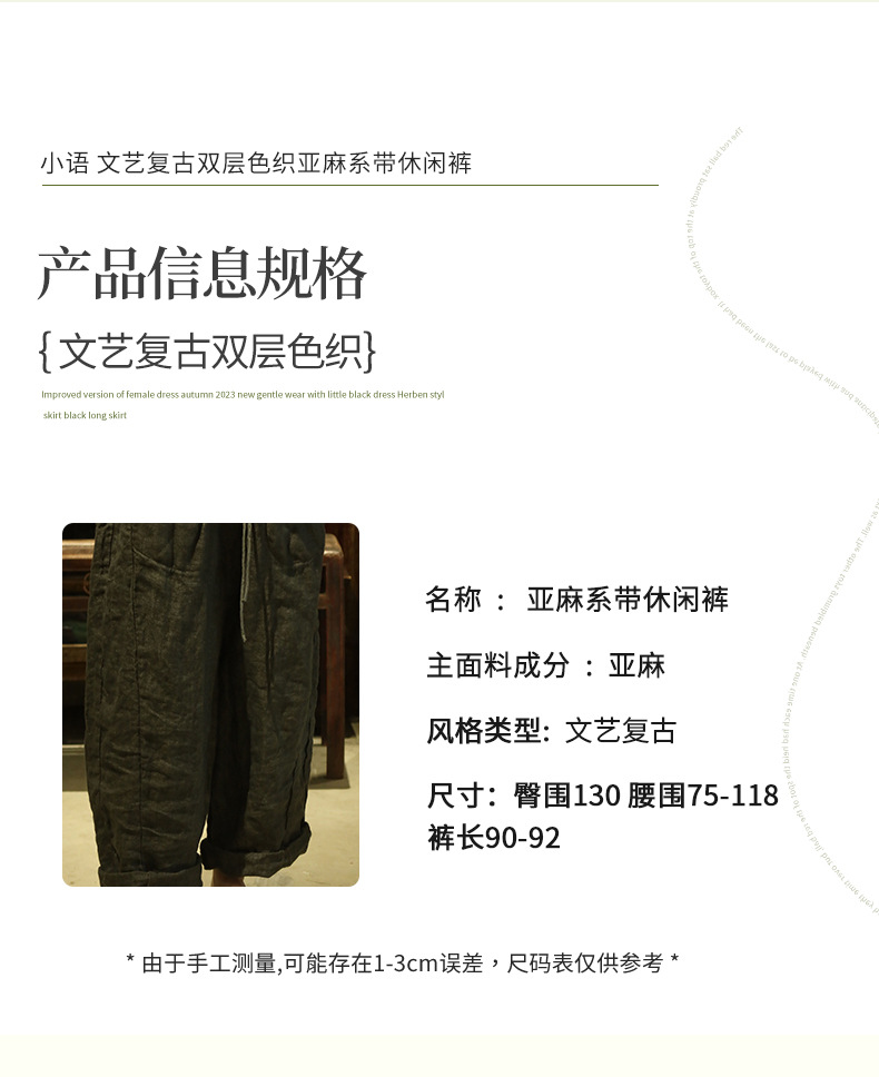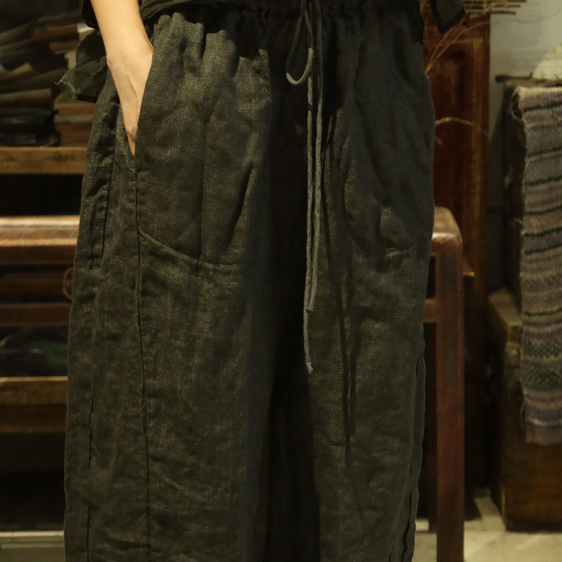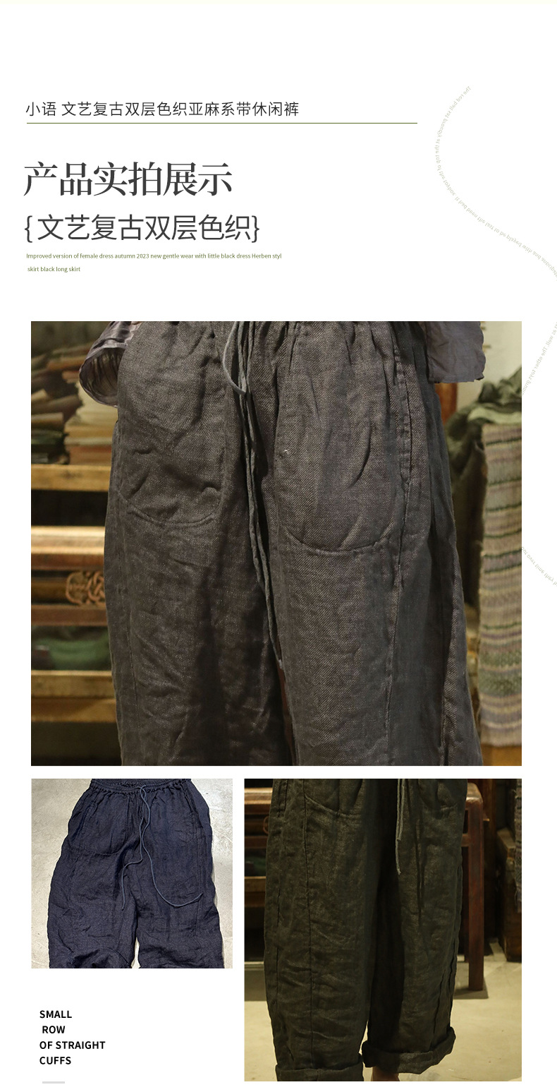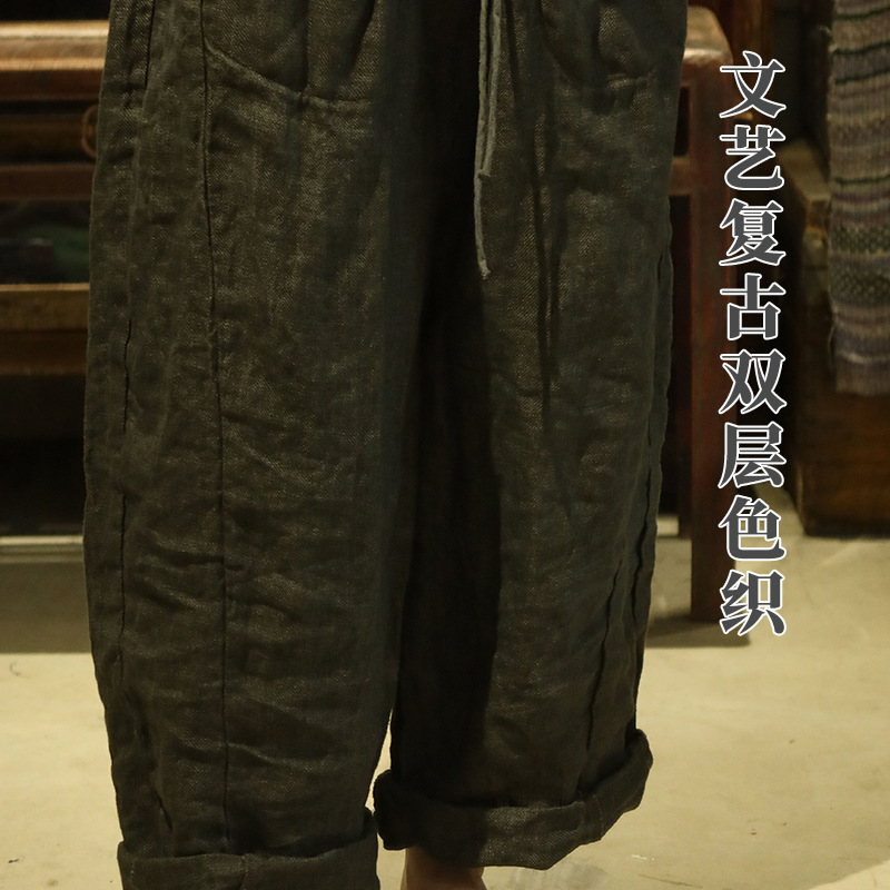 24/10 шепот ретро двухслойный трикотажный льняный шнурки повседневные брюки ретро стиль свободной литературы