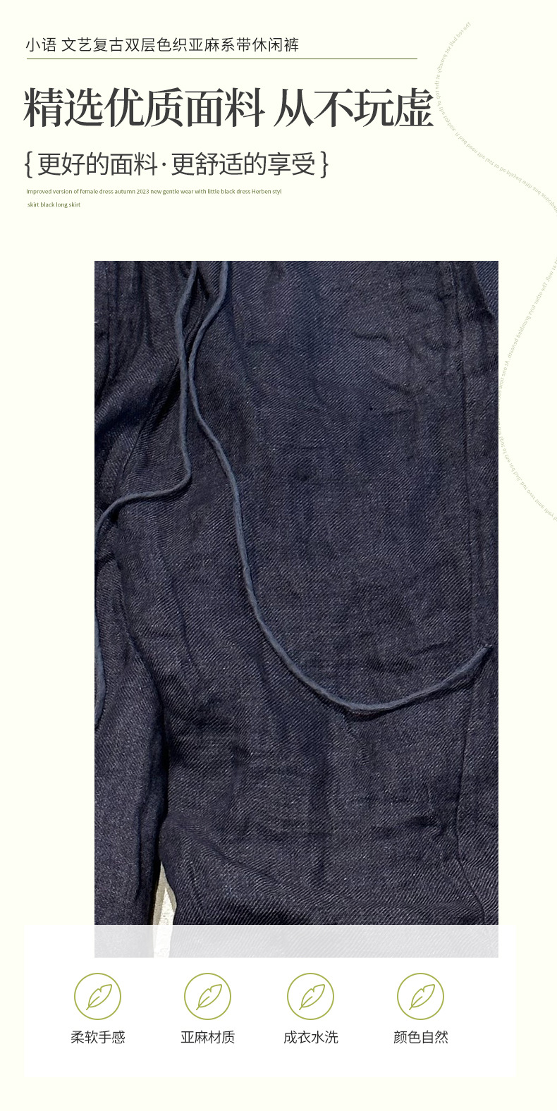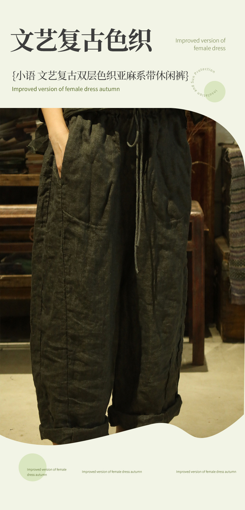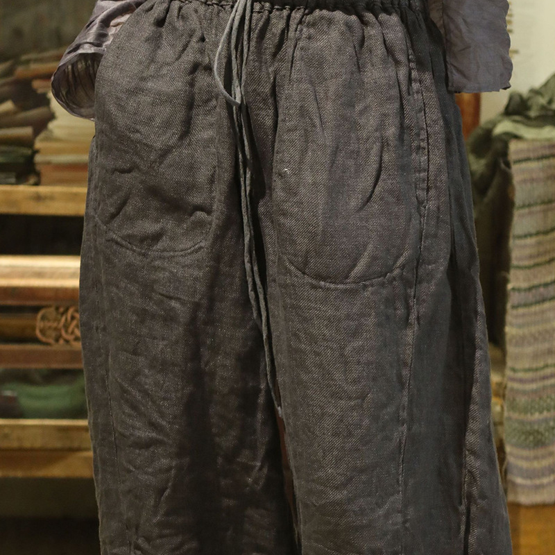 24/10 шепот ретро двухслойный трикотажный льняный шнурки повседневные брюки ретро стиль свободной литературы