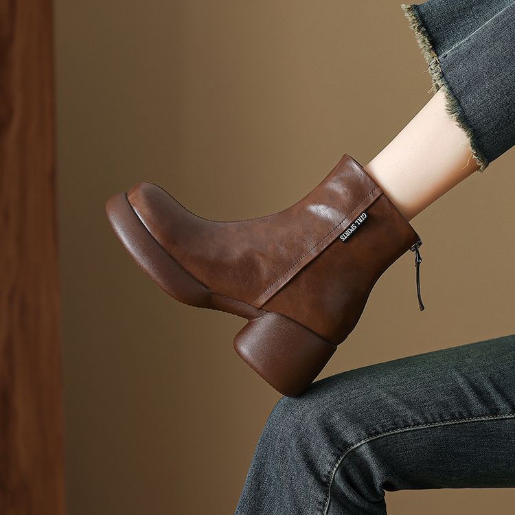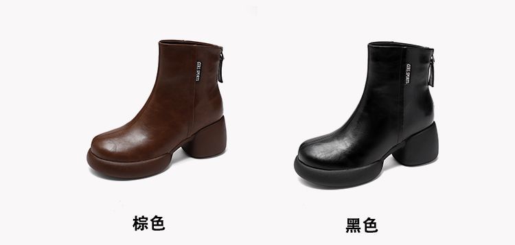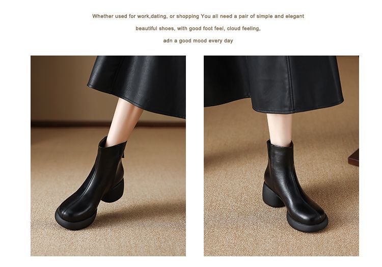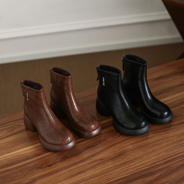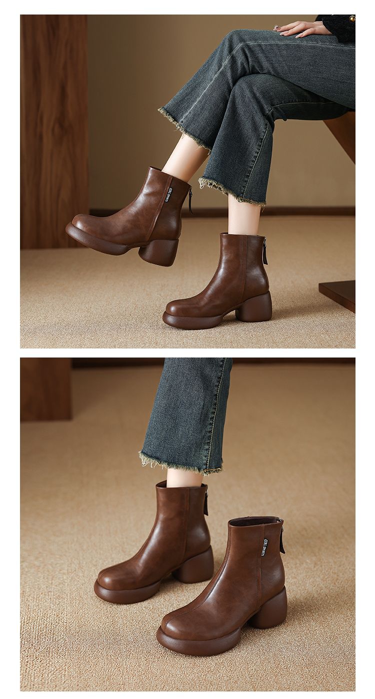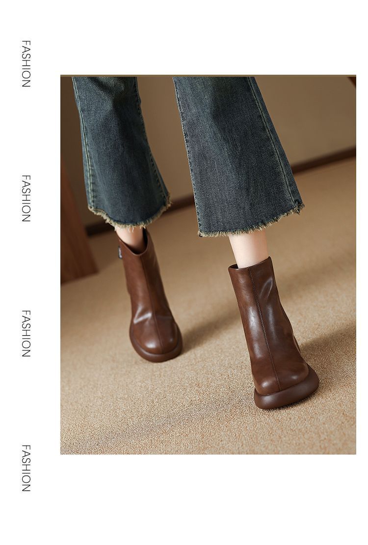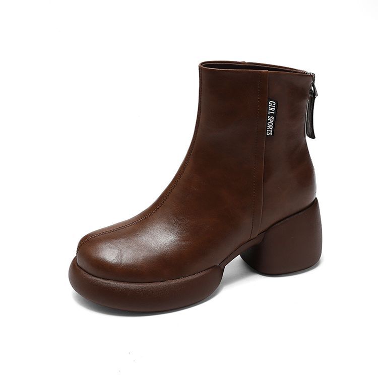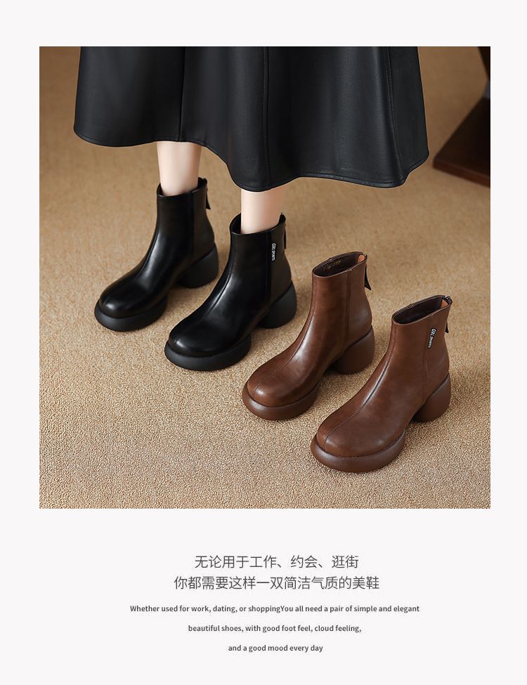 2024 осень и зима новый стиль повседневная круглая голова с толстой подошвой сапоги челси коричневые кожаные сапоги на каблуках женские ботинки
