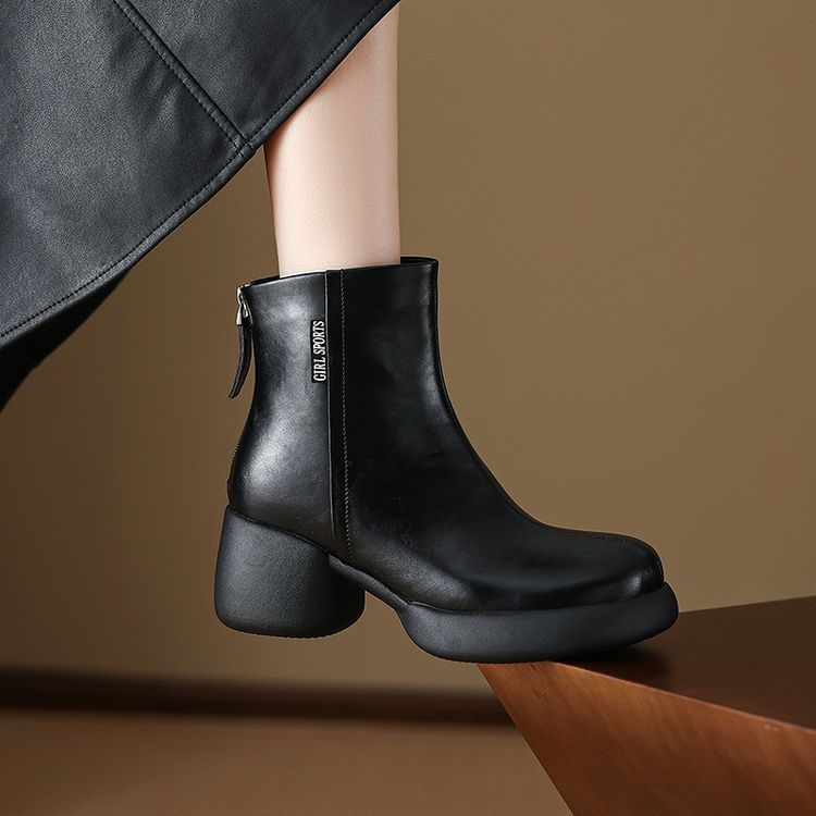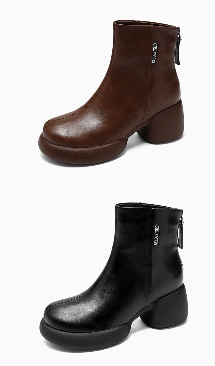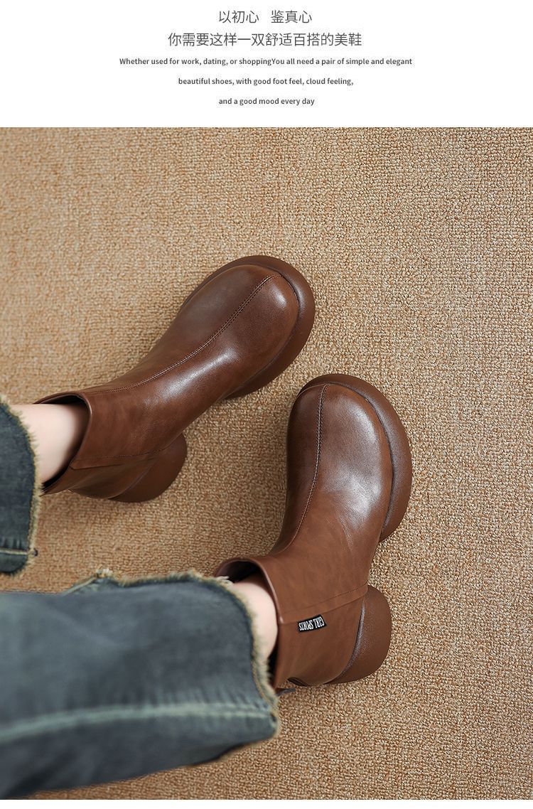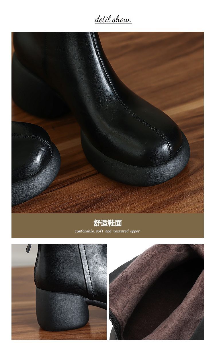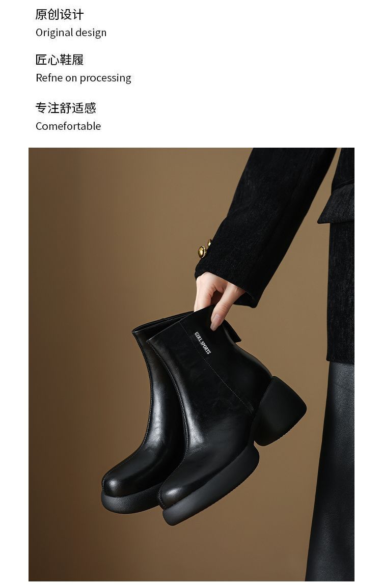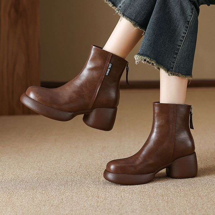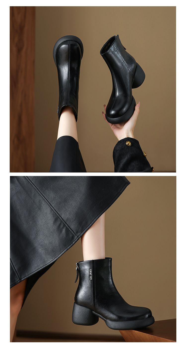 2024 осень и зима новый стиль повседневная круглая голова с толстой подошвой сапоги челси коричневые кожаные сапоги на каблуках женские ботинки