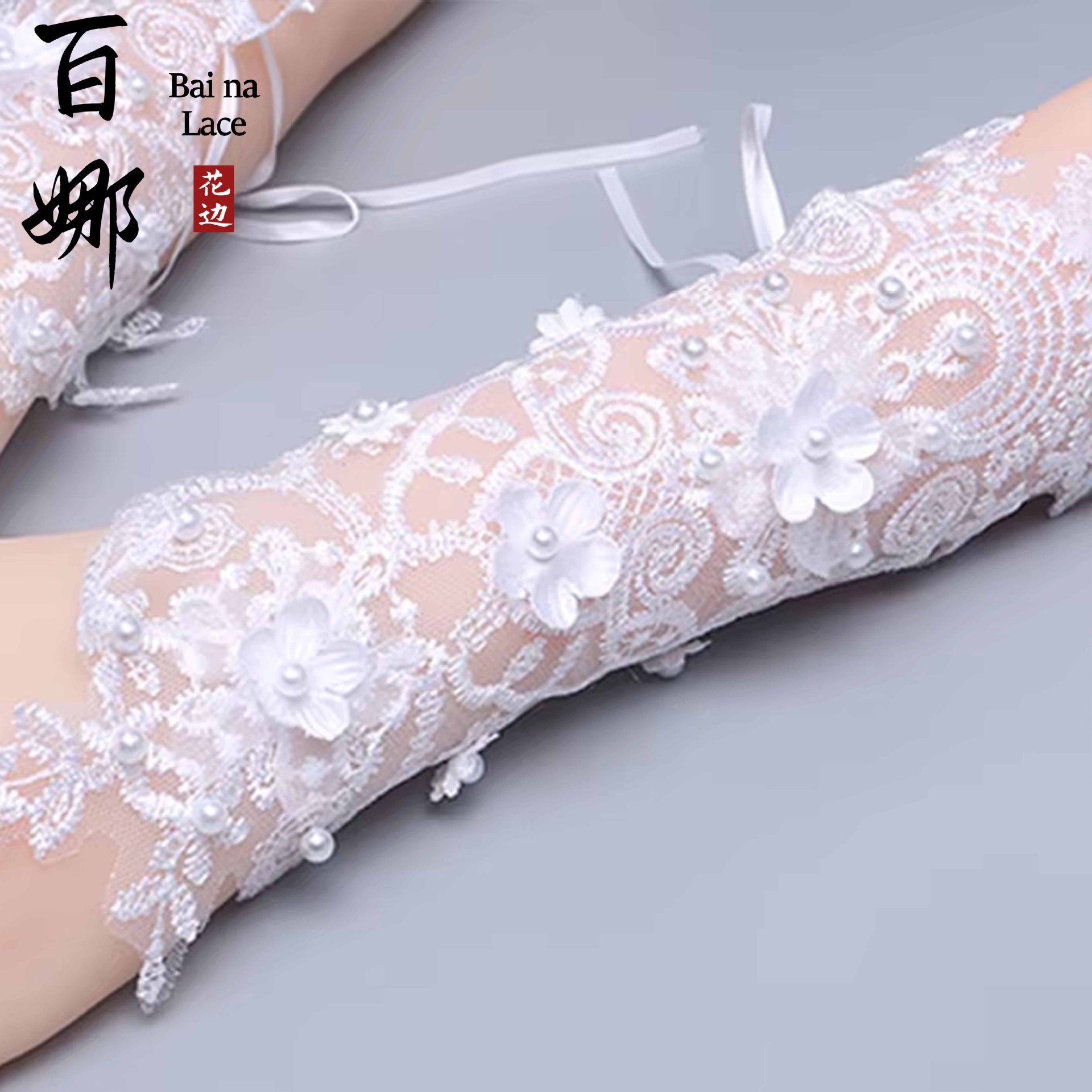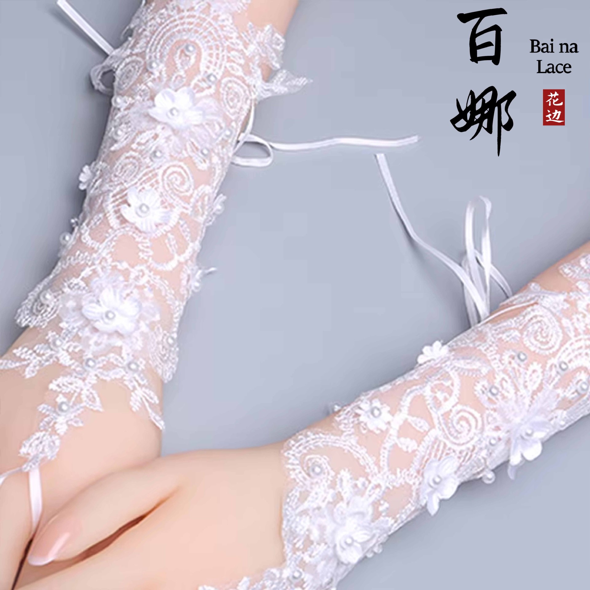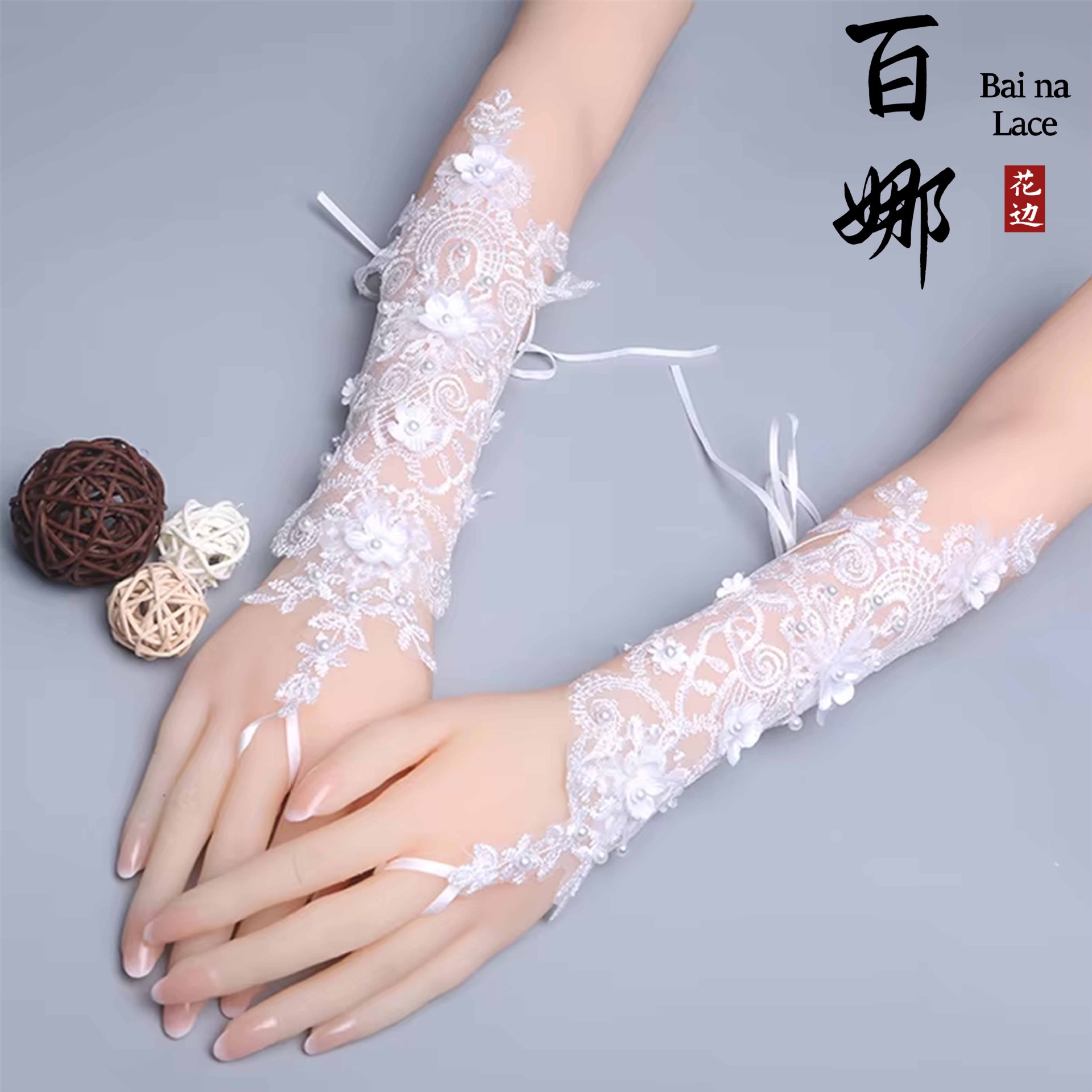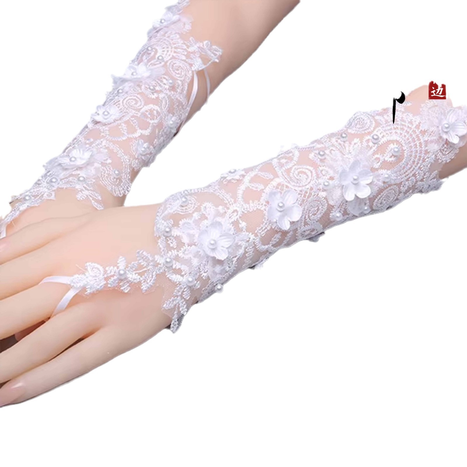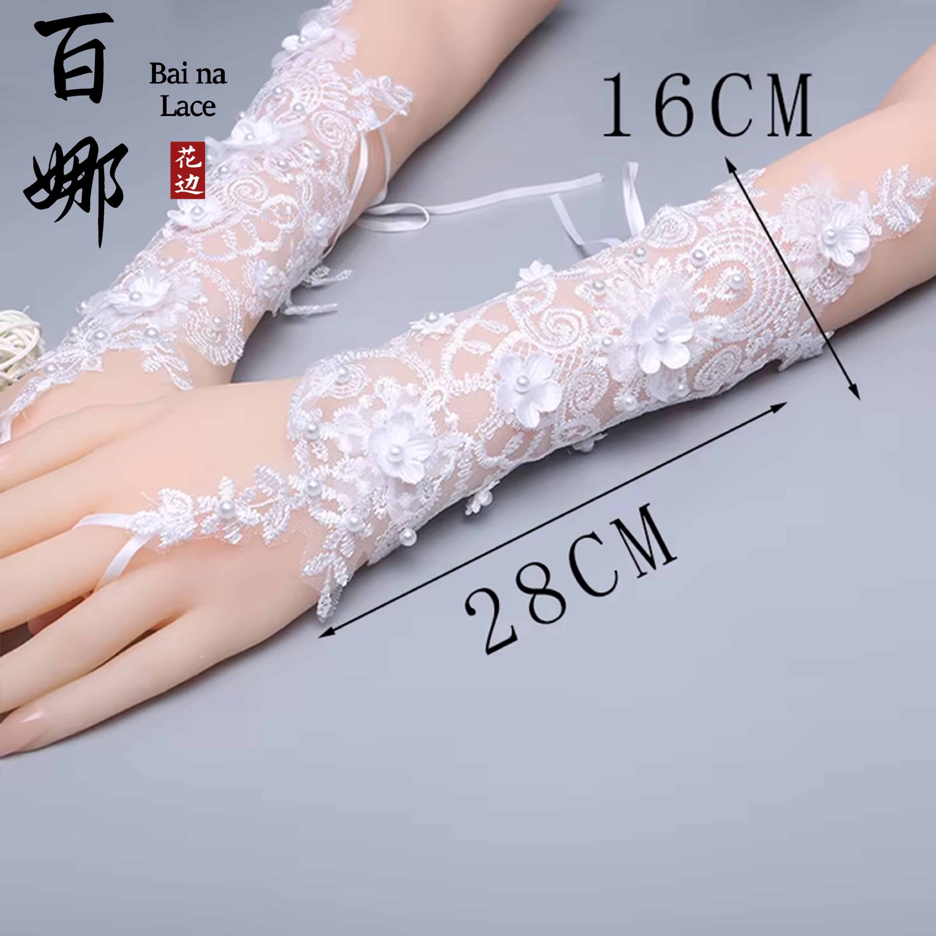 Свадебные перчатки Длинные кружевные цветочные аксессуары Свадебный свадебный крюк относится к белому кружевное платье Свадебные перчатки