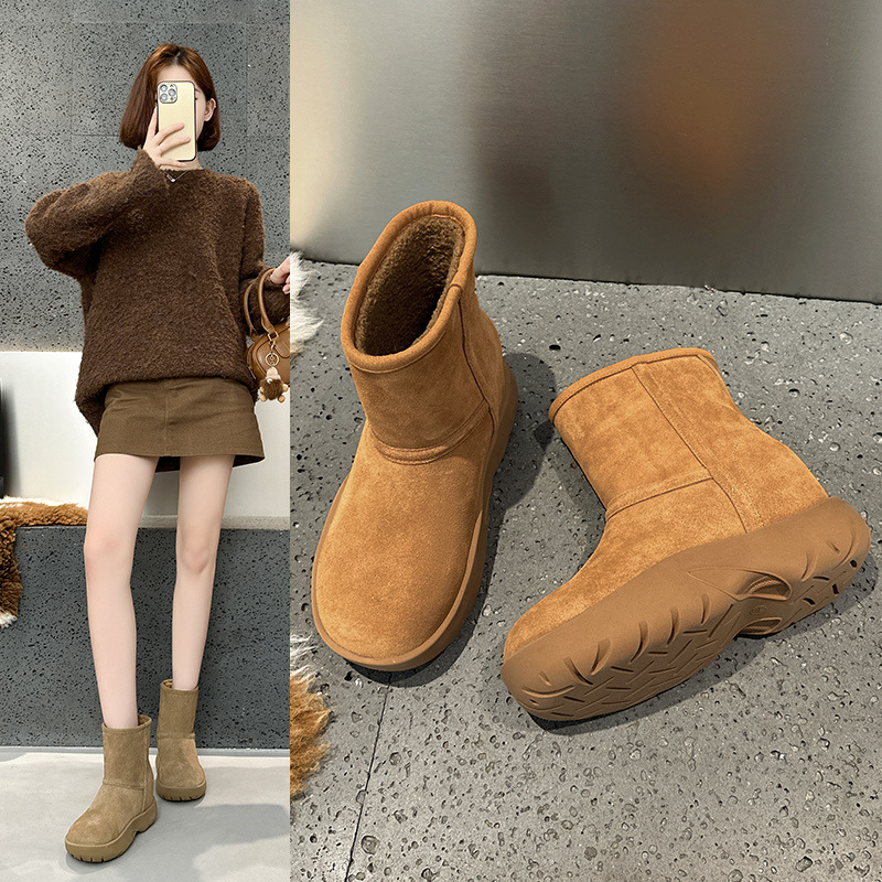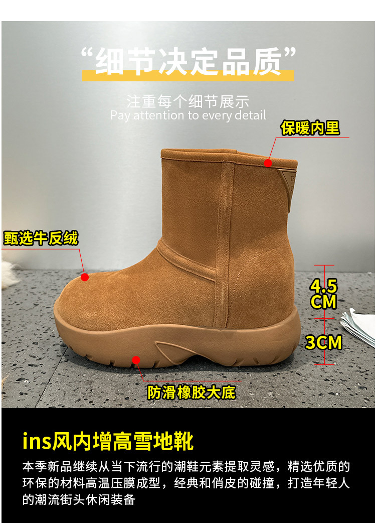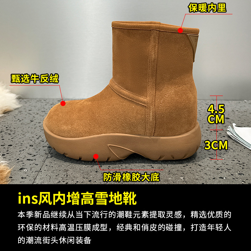 Женские зимние сапоги для снега с внутренним увеличением роста, новая утолщенная и водонепроницаемая конструкция, подходят для температур до -40 градусов, короткие сапоги на толстой подошве для стильных женщин.
