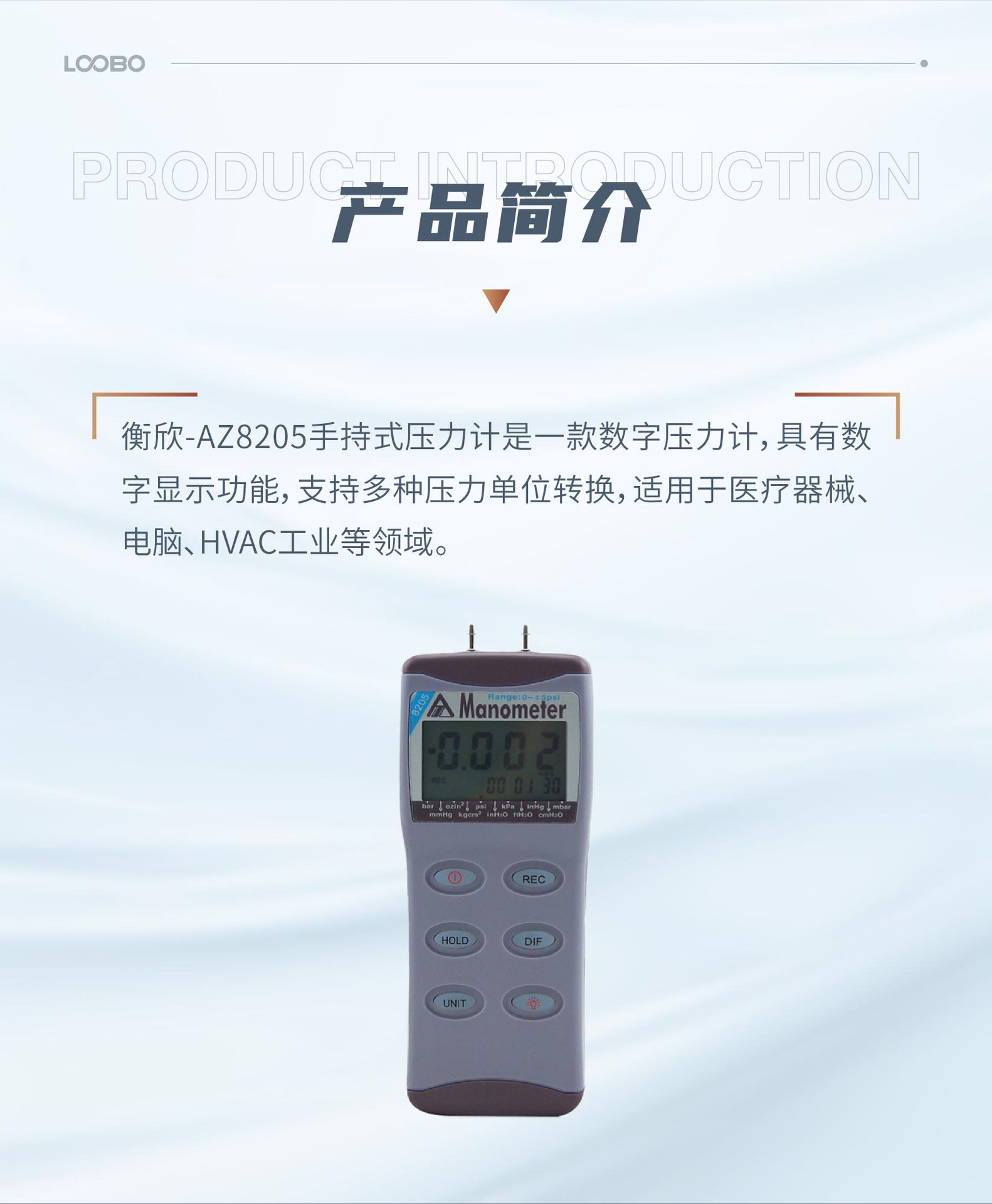 Тайвань Hengxin Интеллектуальный цифровой манометр AZ8205 Электронный манометр с дифференциальным давлением Ручной манометр