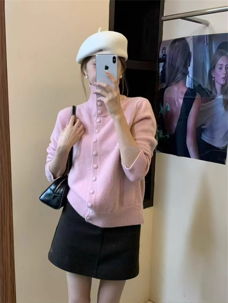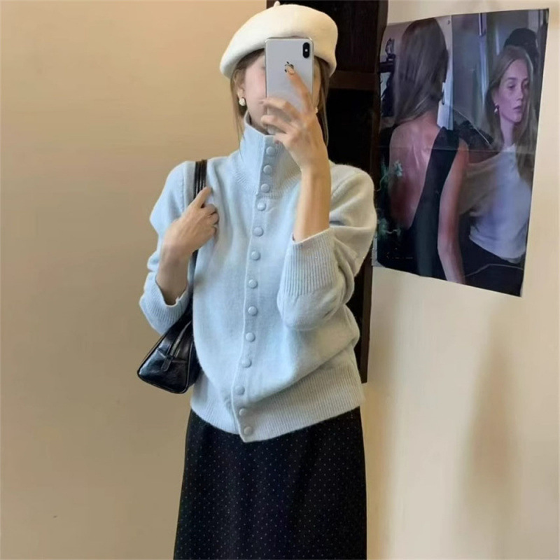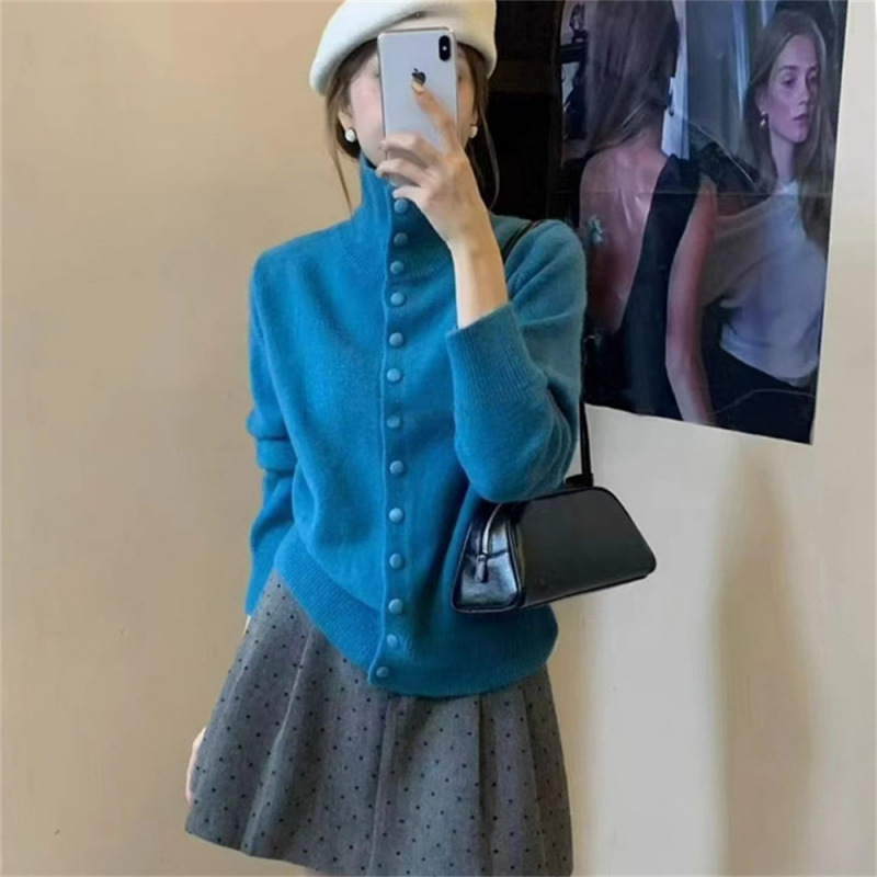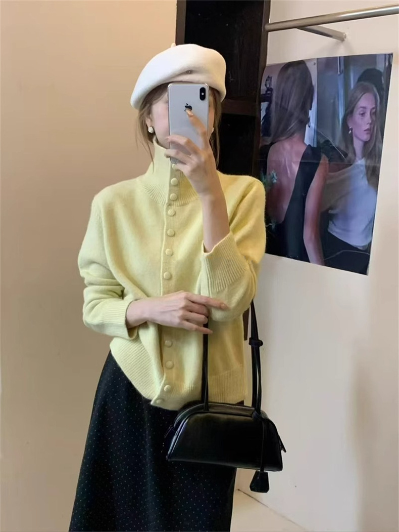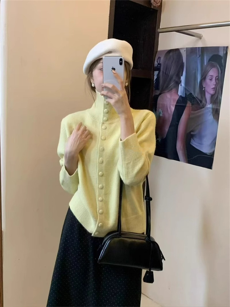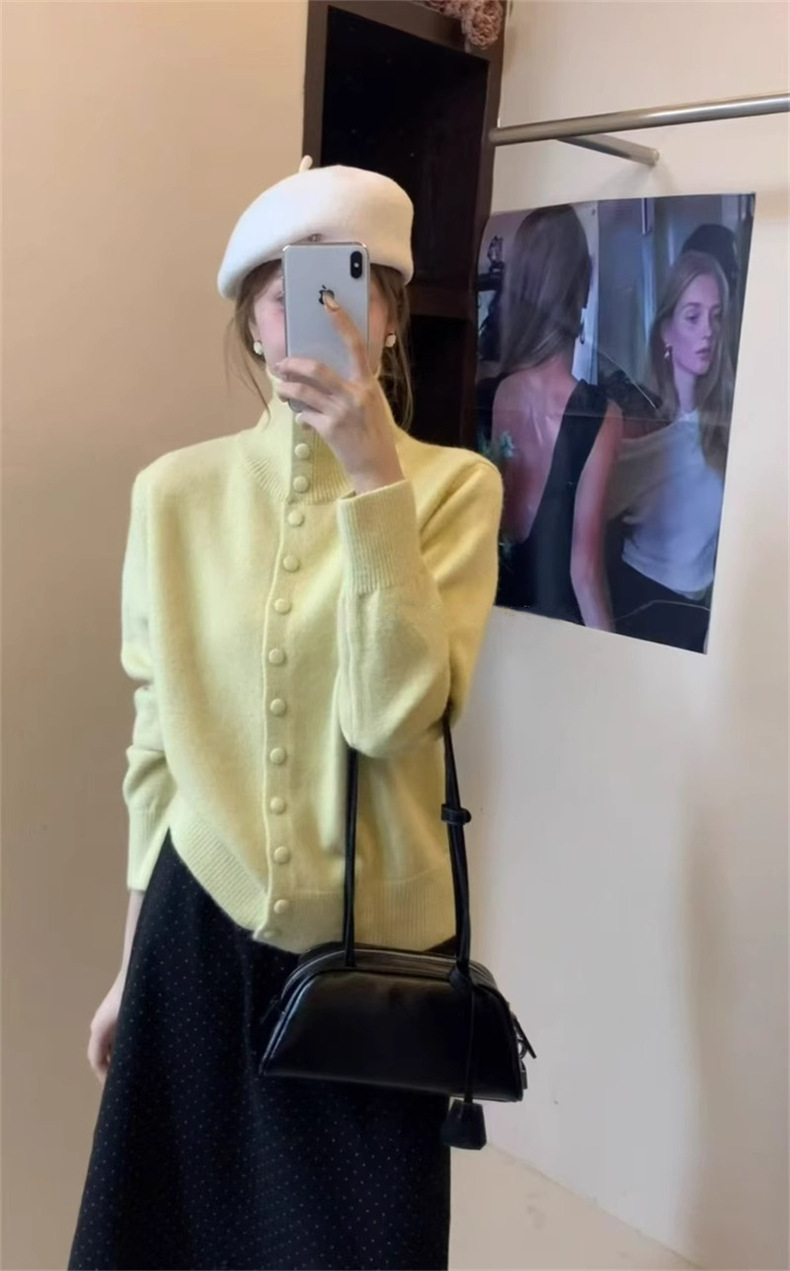 KANING нежный мягкий свитер с высоким воротником для женщин, новинка осени и зимы 2025 года, корейский стиль, однобортный вязаный кардиган для верхней одежды.