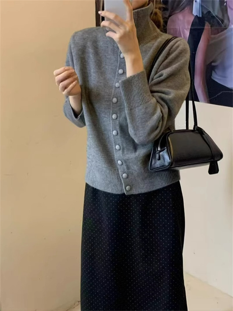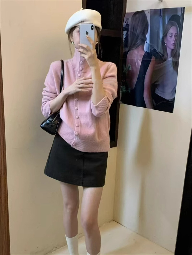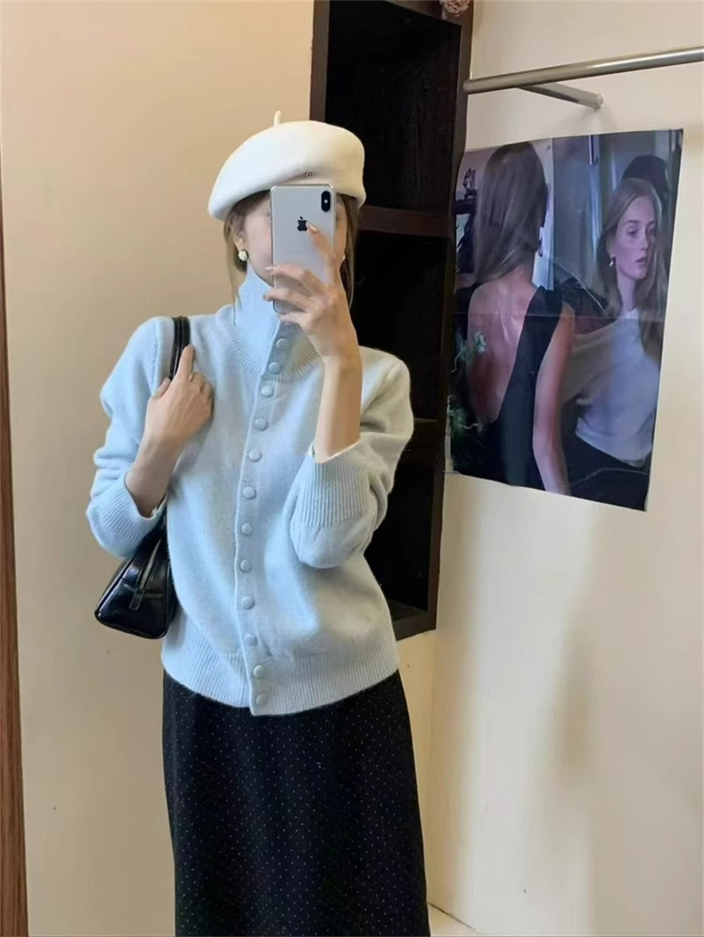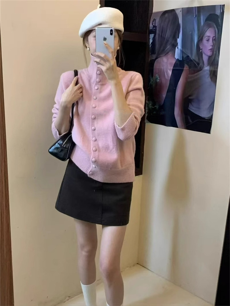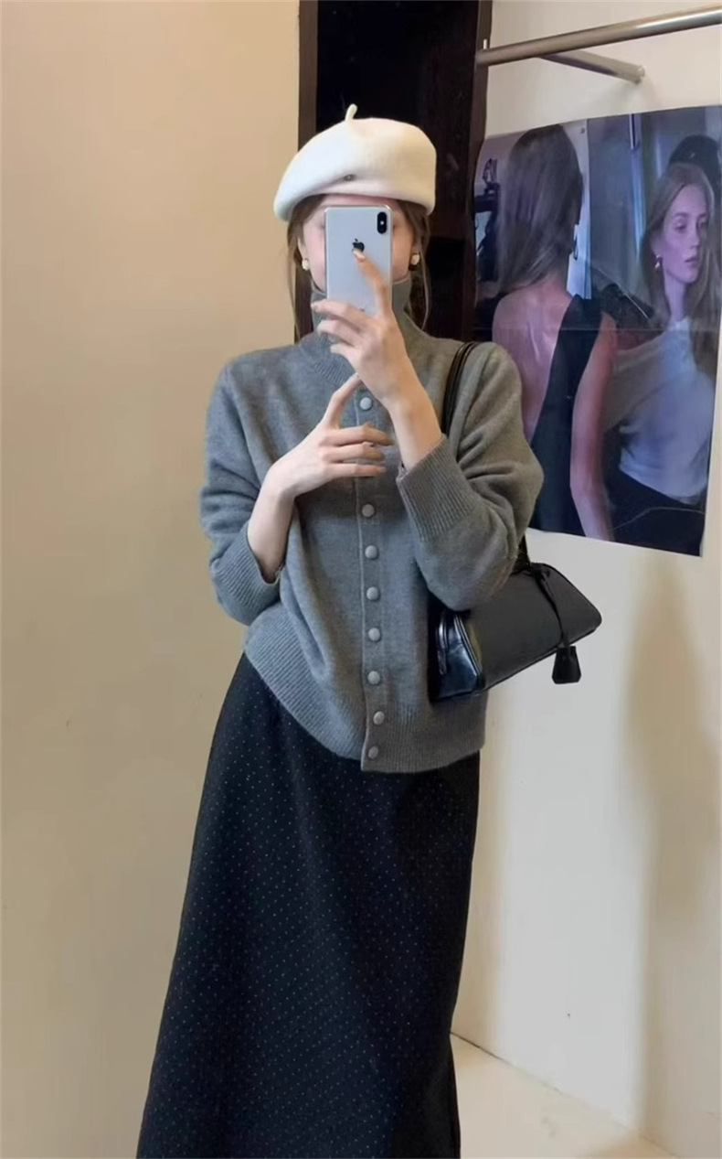 KANING нежный мягкий свитер с высоким воротником для женщин, новинка осени и зимы 2025 года, корейский стиль, однобортный вязаный кардиган для верхней одежды.