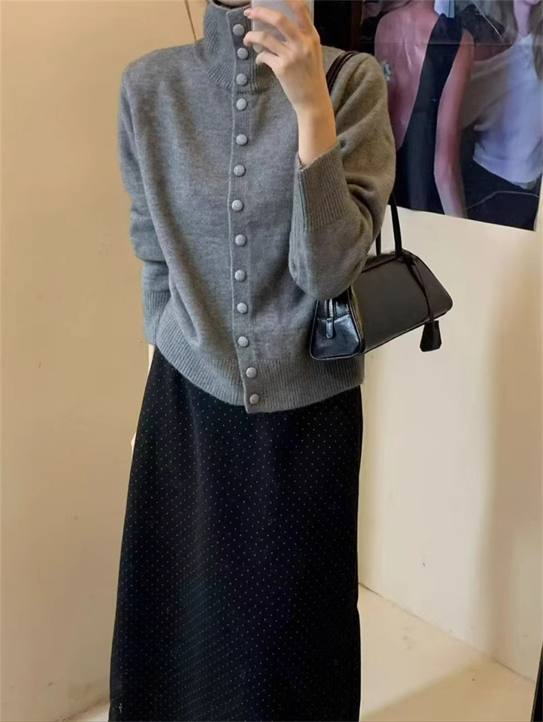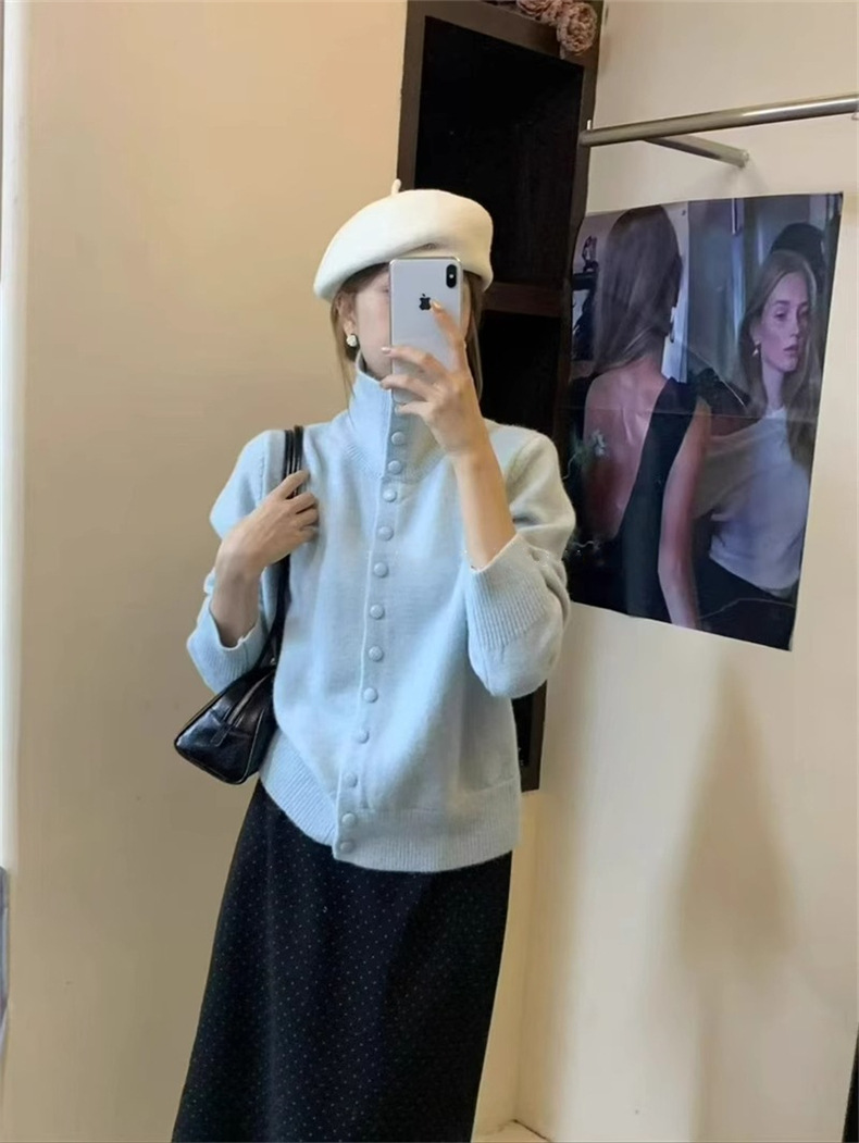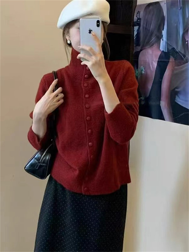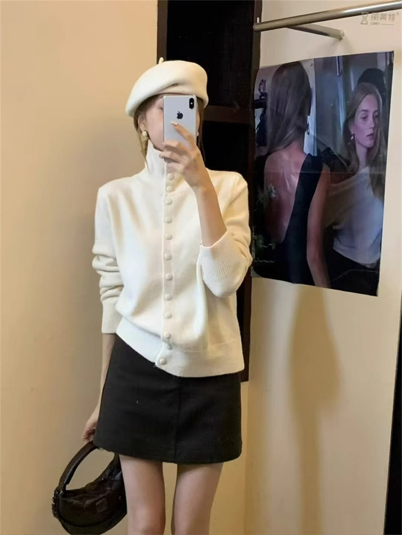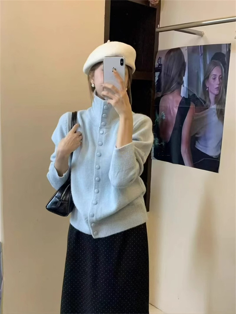KANING нежный мягкий свитер с высоким воротником для женщин, новинка осени и зимы 2025 года, корейский стиль, однобортный вязаный кардиган для верхней одежды.