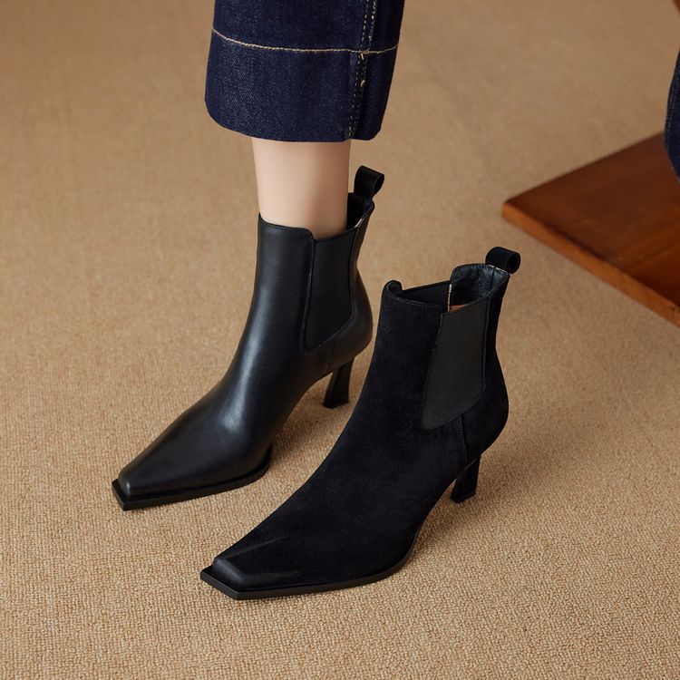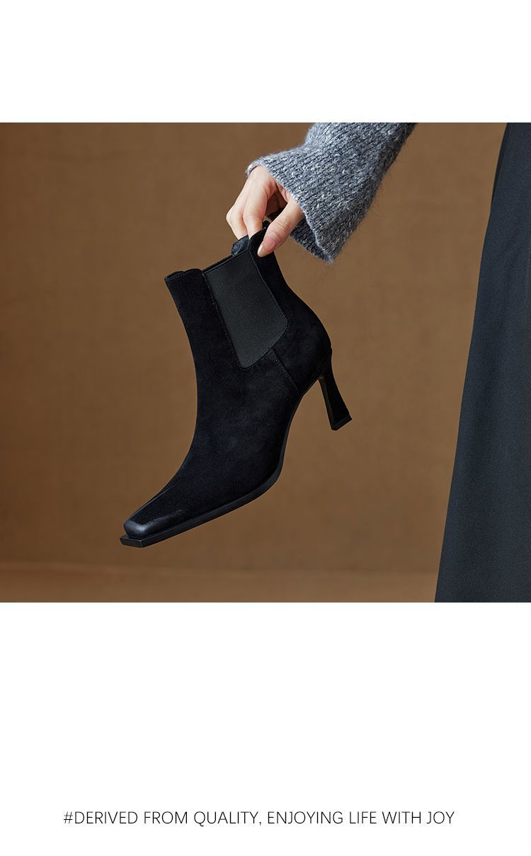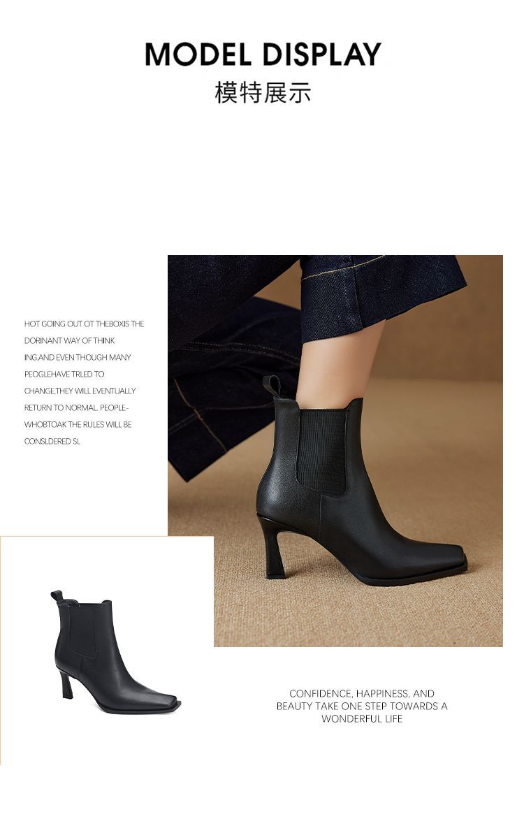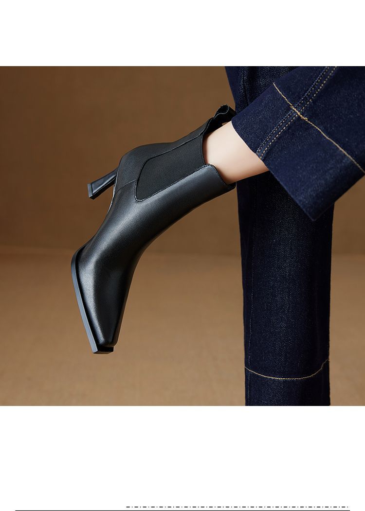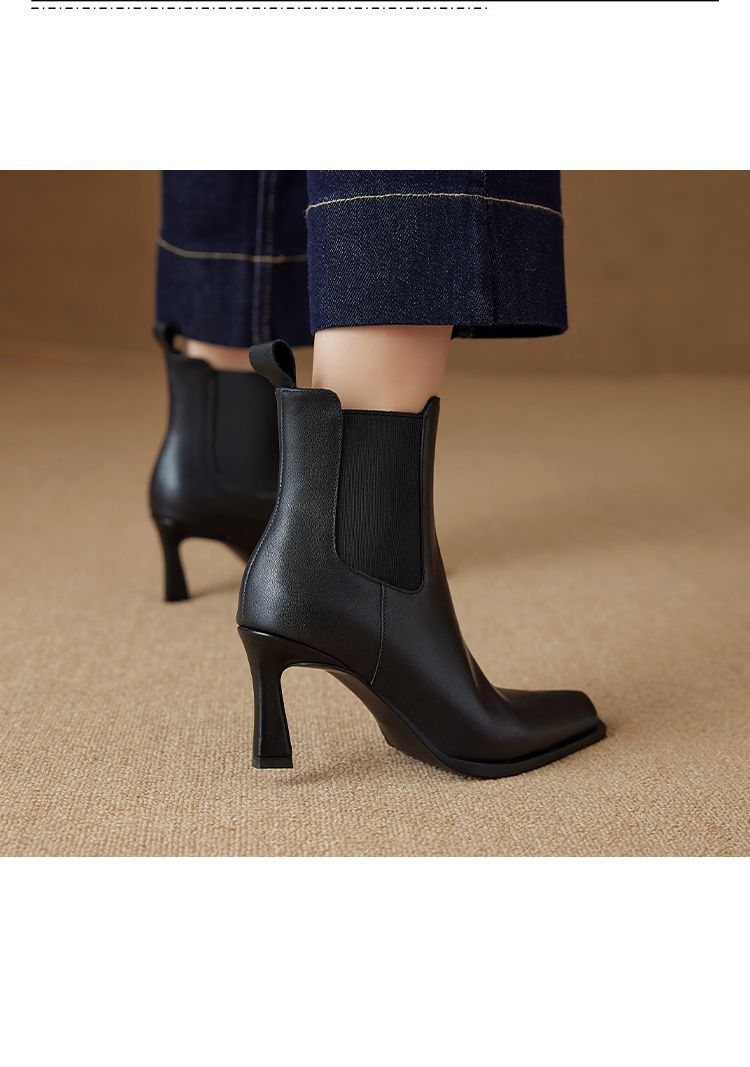 Европейские и американские кожаные короткие сапоги женские 2024 новые зимние толстые каблуки на высоком каблуке табачные сапоги с мягкой подошвкой тонкие модные сапоги