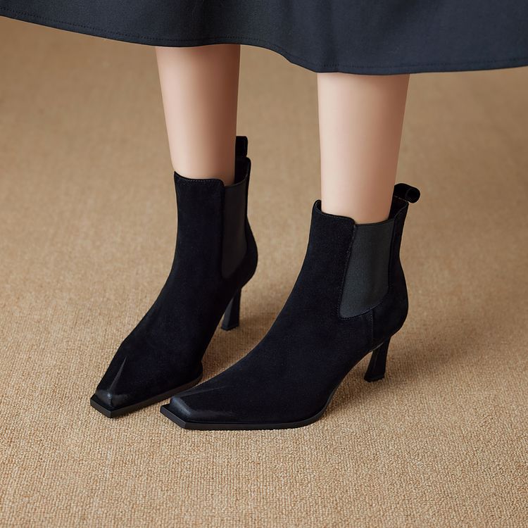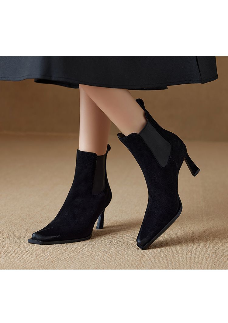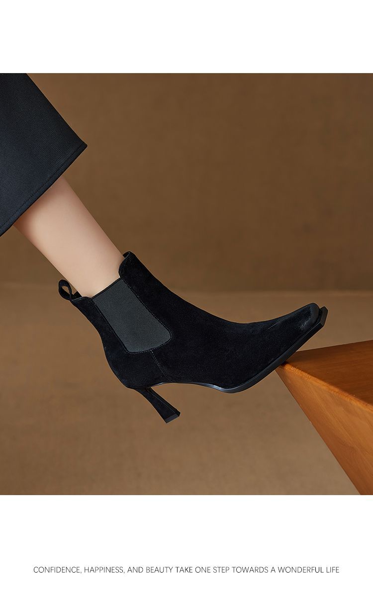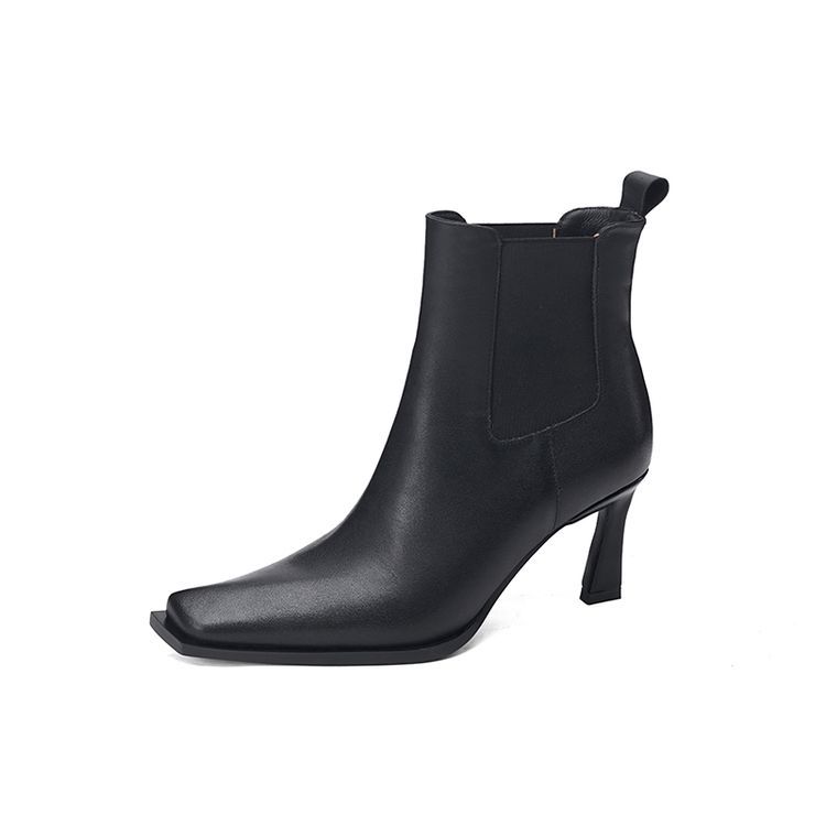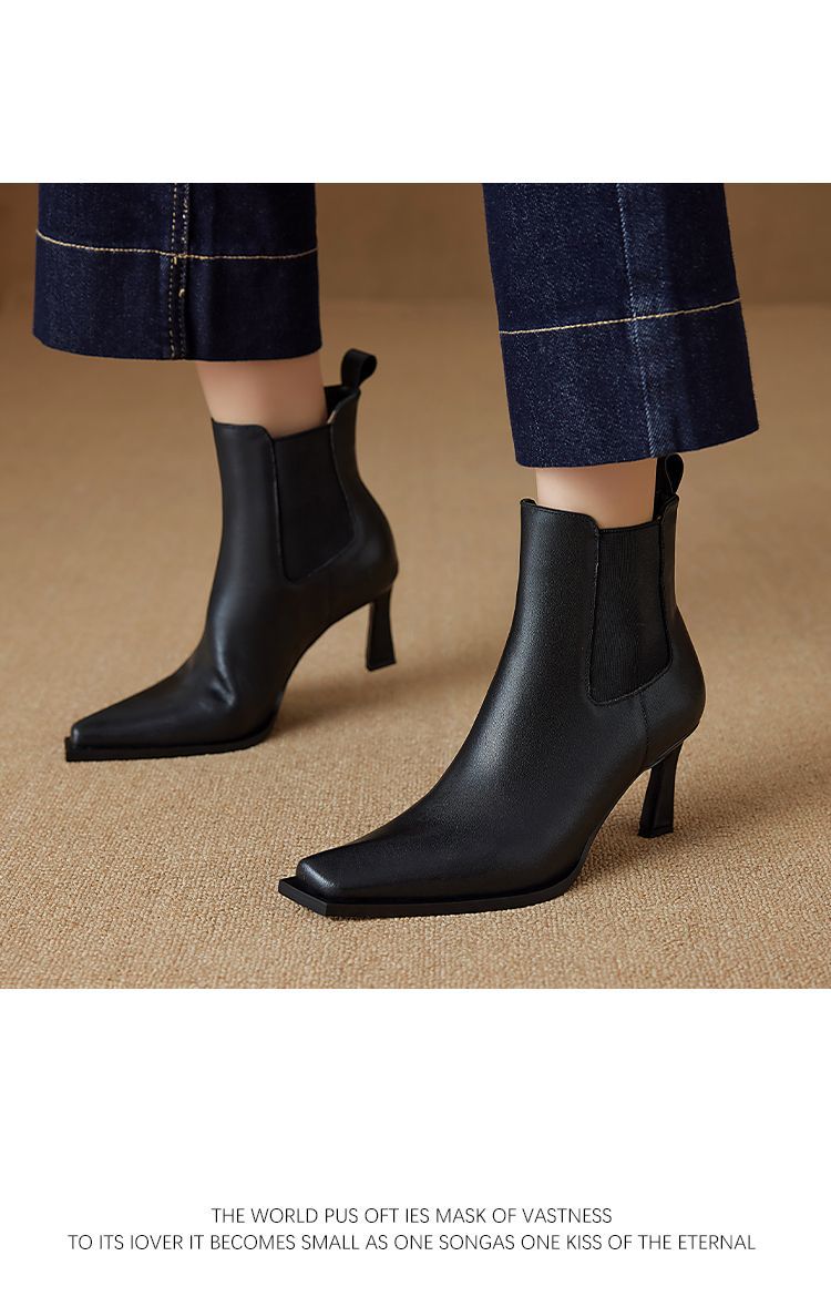 Европейские и американские кожаные короткие сапоги женские 2024 новые зимние толстые каблуки на высоком каблуке табачные сапоги с мягкой подошвкой тонкие модные сапоги