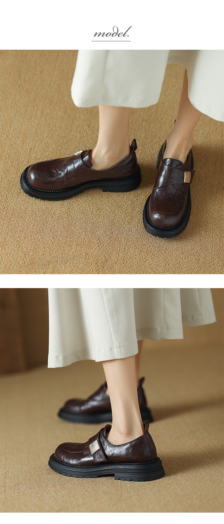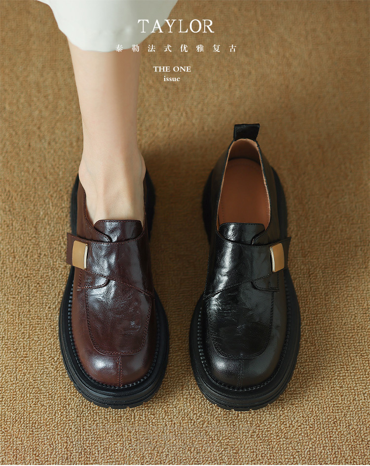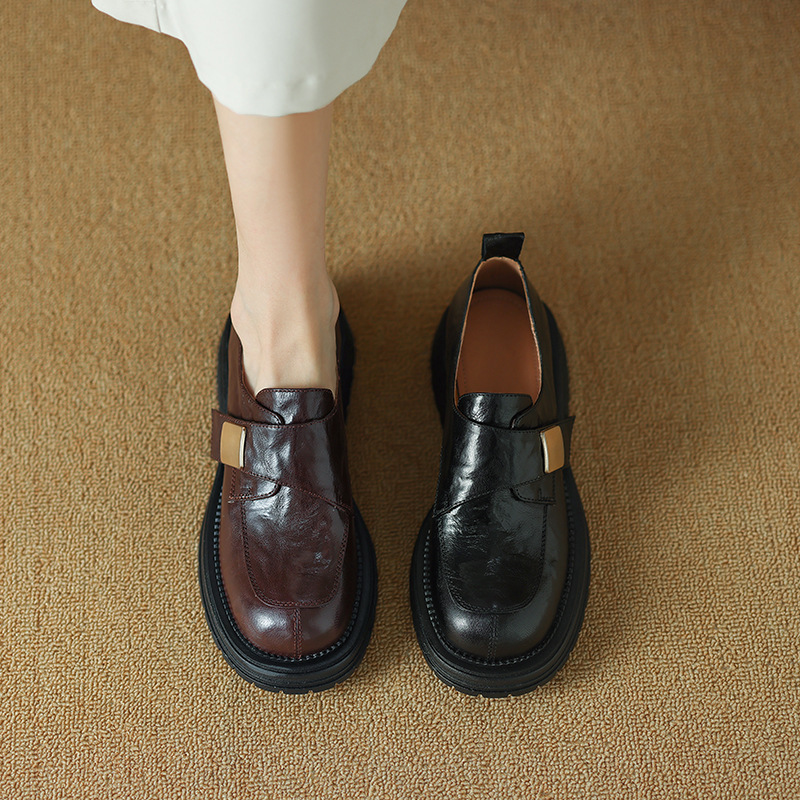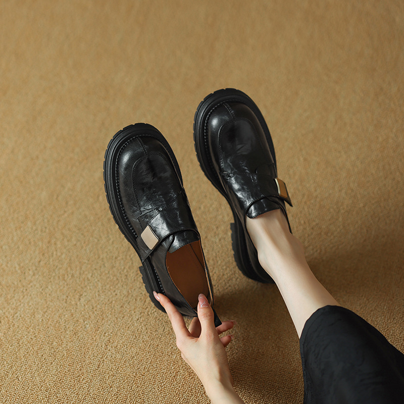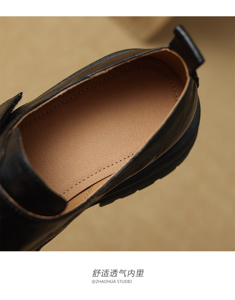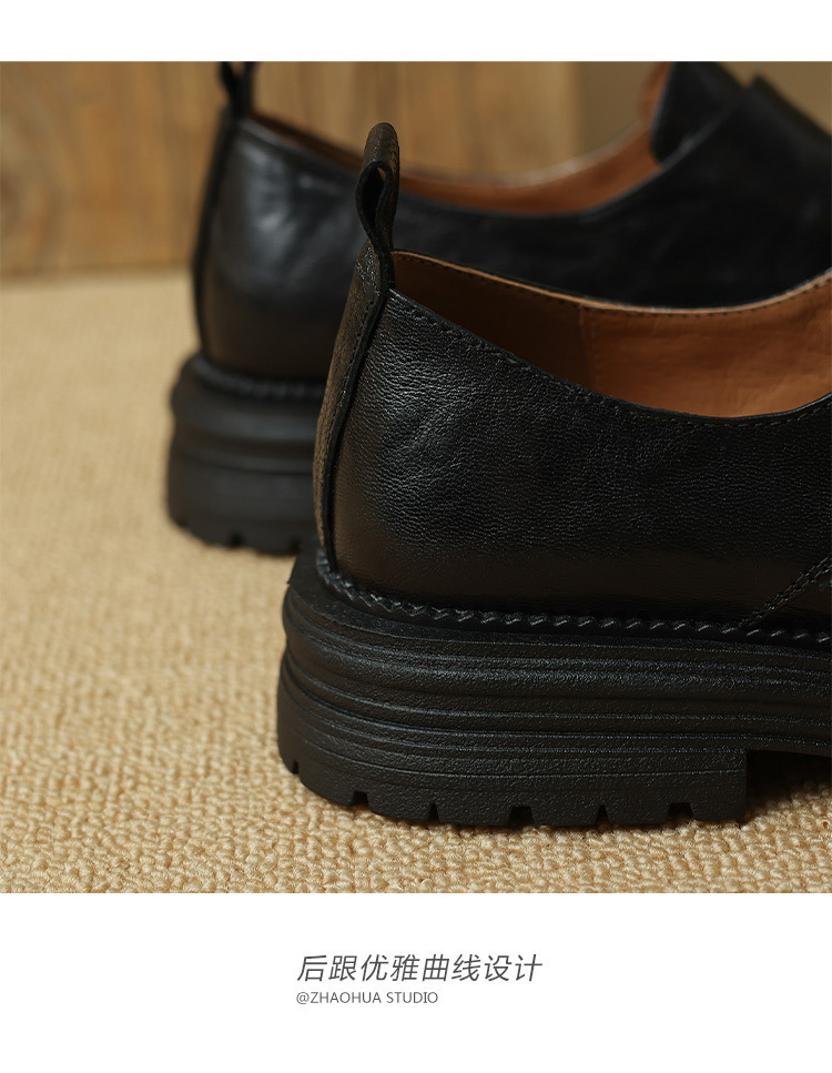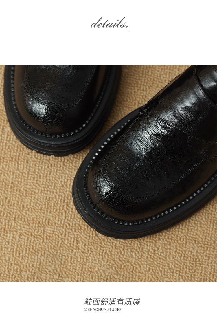 Женские лоферы из овчины, ретро-стиль, британский дизайн, круглый носок, толстая подошва, ручная обработка, модель 2024 года.