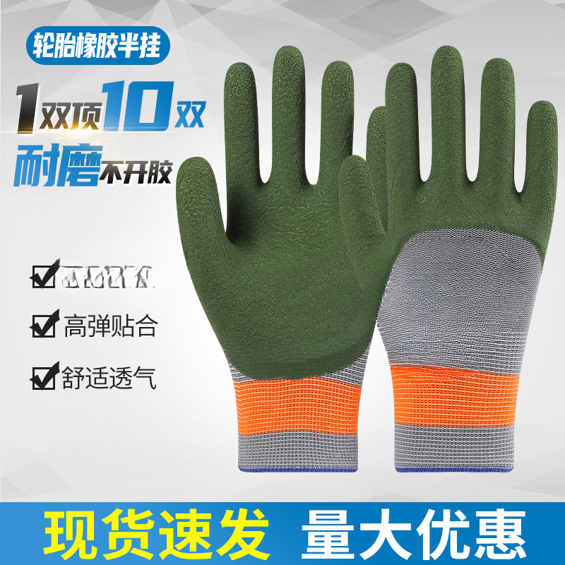 Перчатки, защита труда, износостойкие рабочие шины резиновые вспененные резиновые строительные площадки, работающий противоскользящие и дышащий пропитанный латекс защита