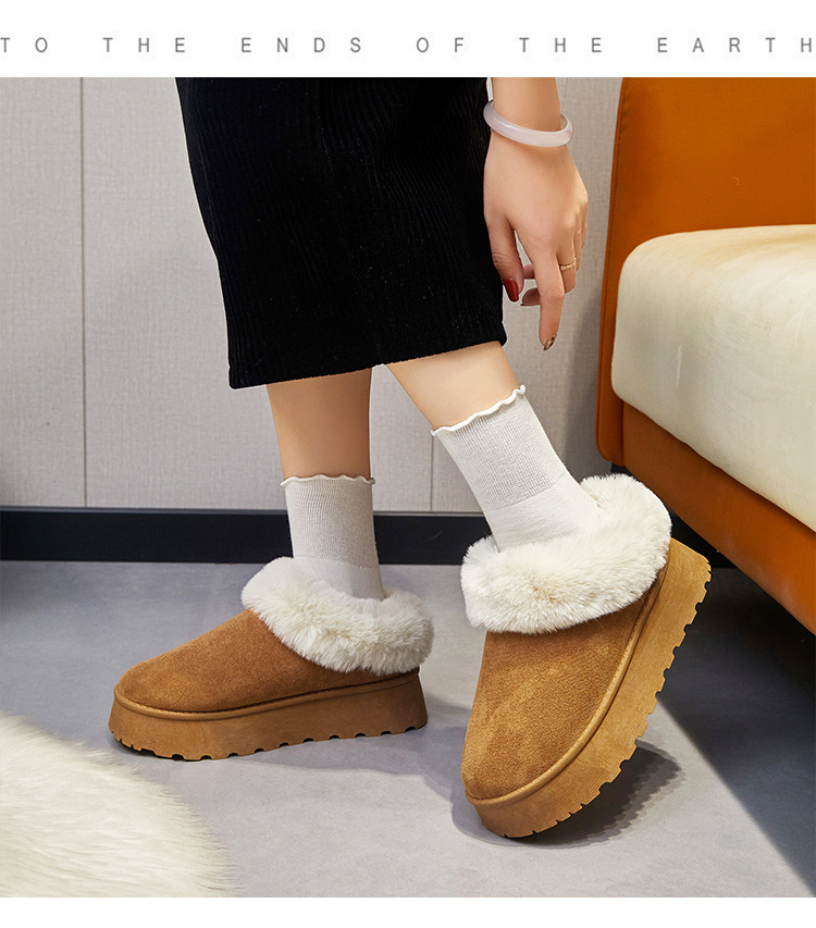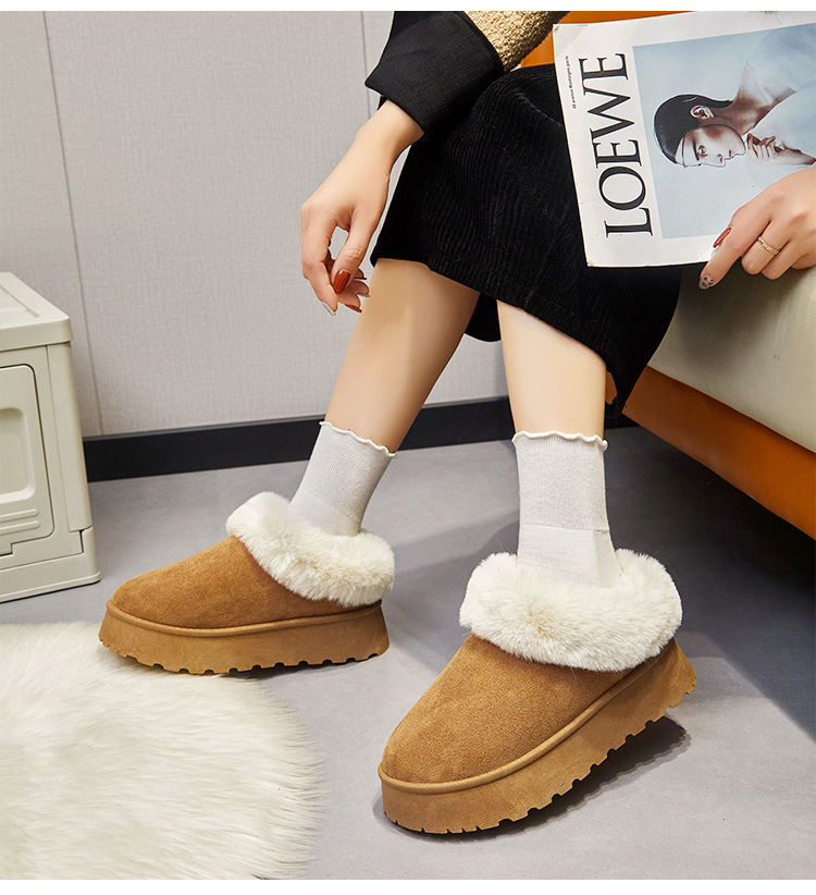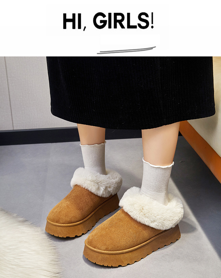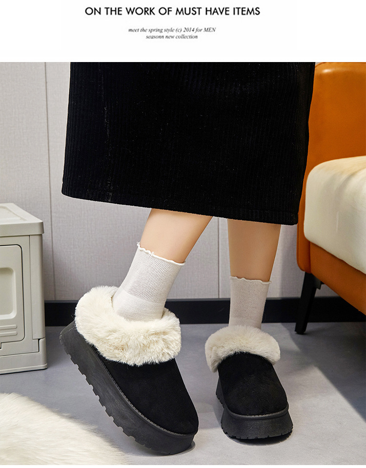 Зимние меховые сапоги 2025 года на толстой подошве, с плюшевой подкладкой, утепленные, европейские размеры, женская обувь, дропшиппинг Temu.