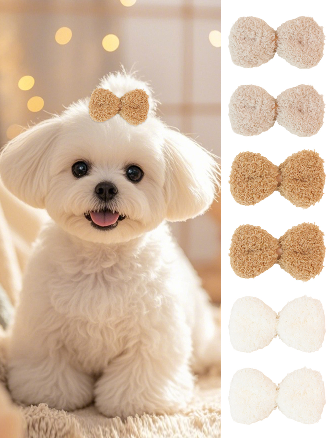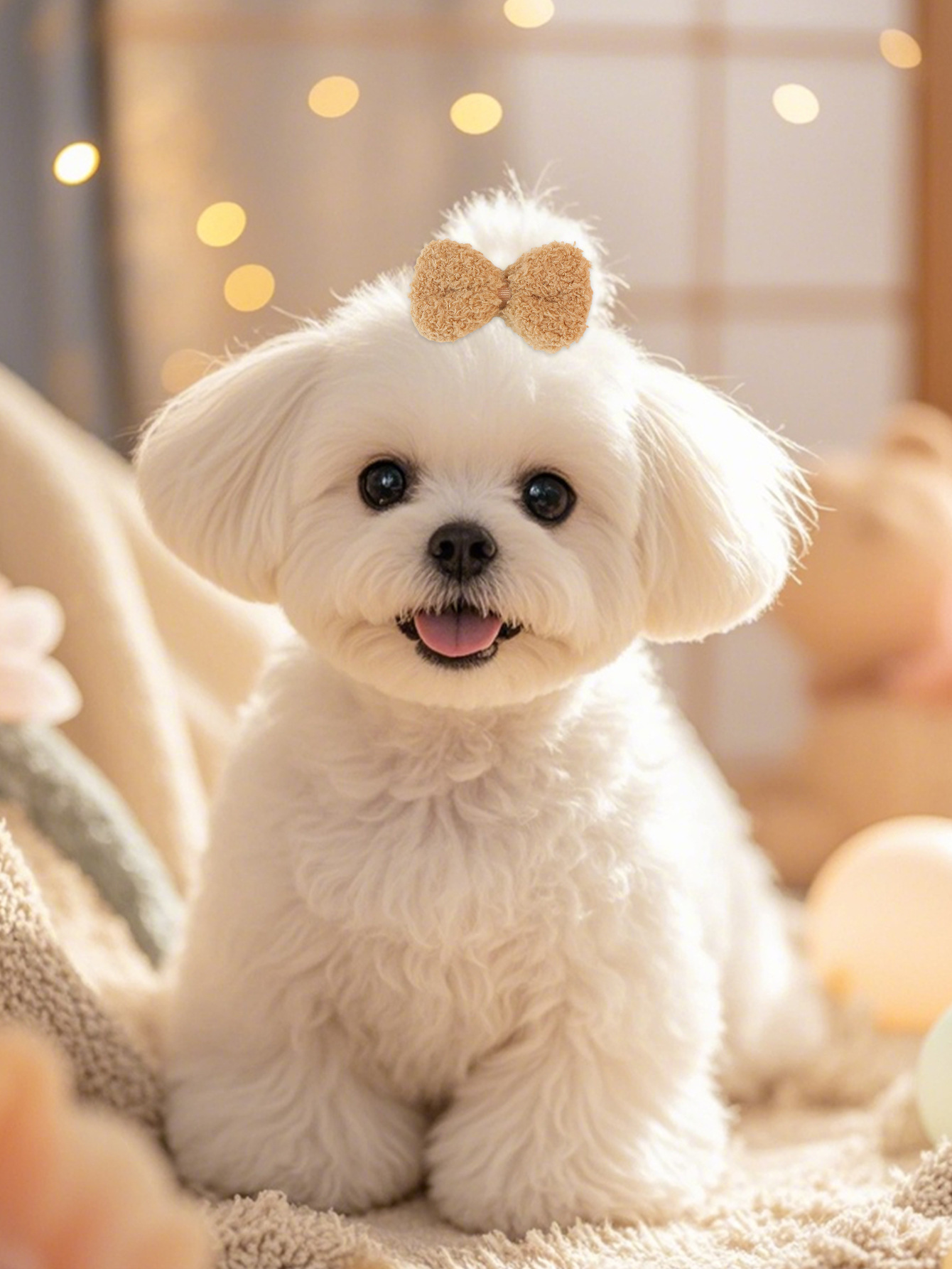 【名称】泰迪宠物蝴蝶结bb夹约克夏毛毛新款发夹马尔济斯狗狗秋冬咖色头饰