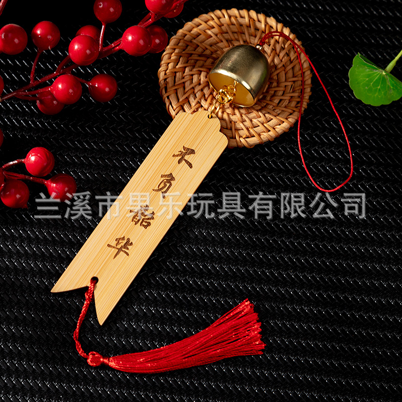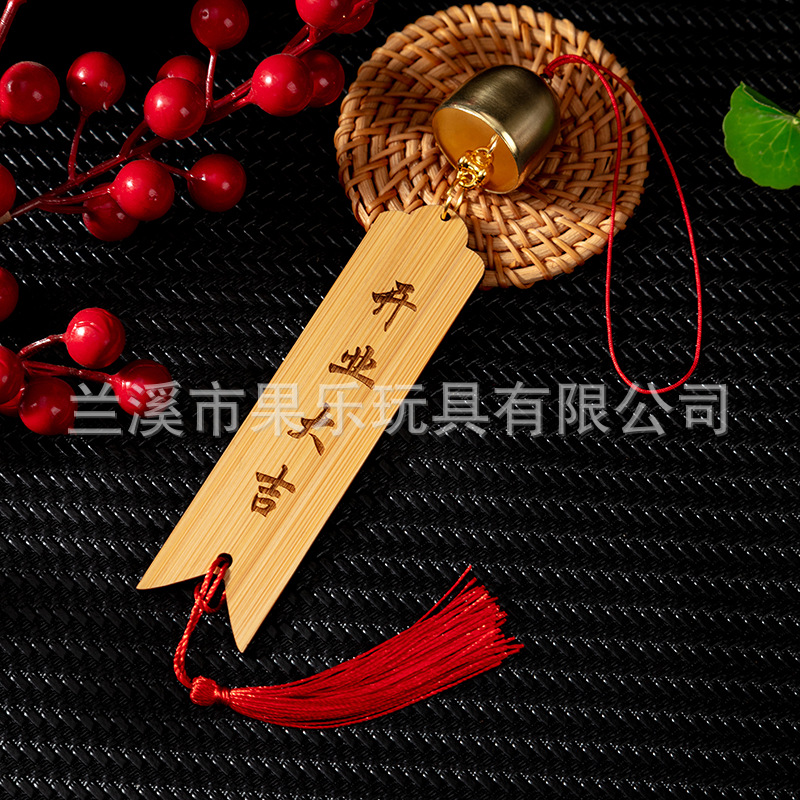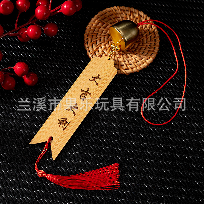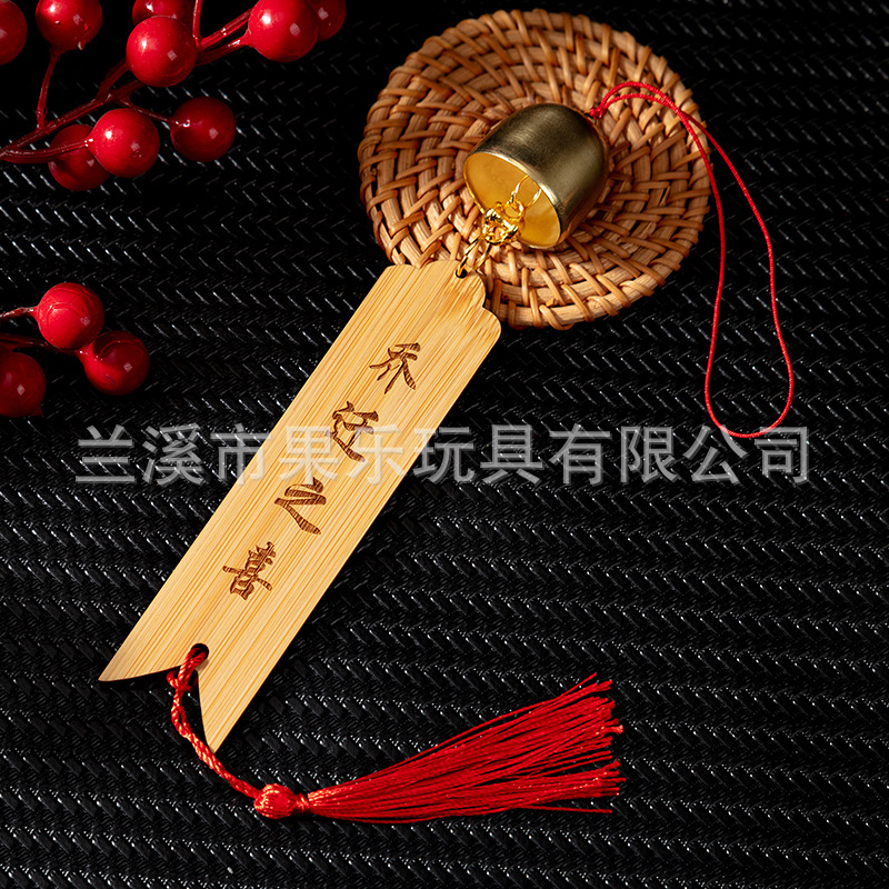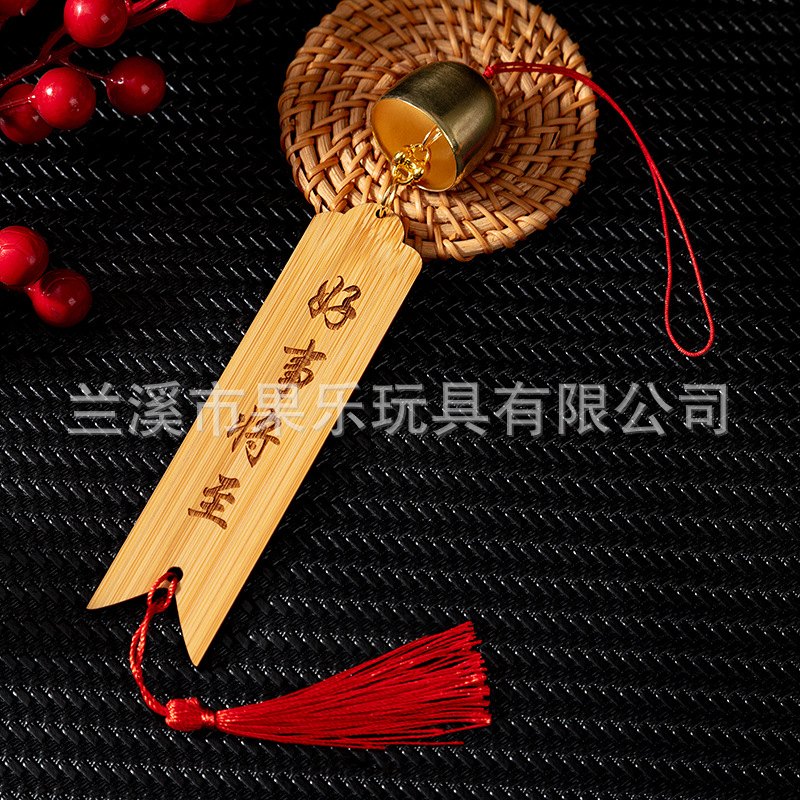 产品名:竹制风铃装饰挂件 产品规格:12cm(挂绳+流苏总长约37cm)