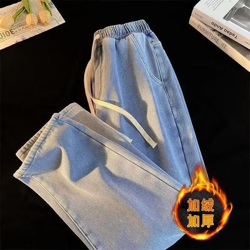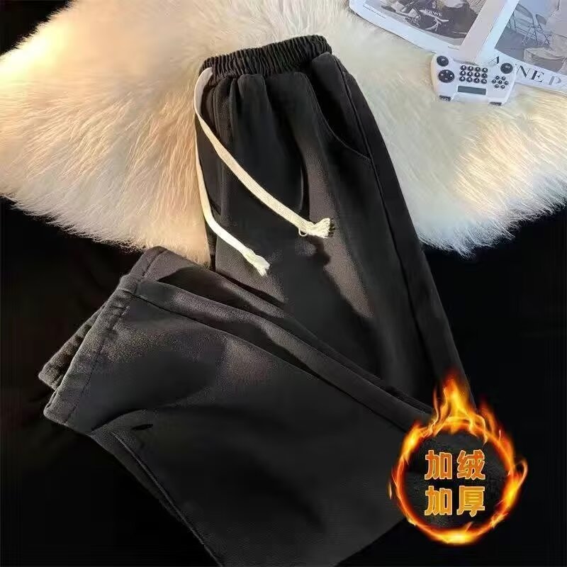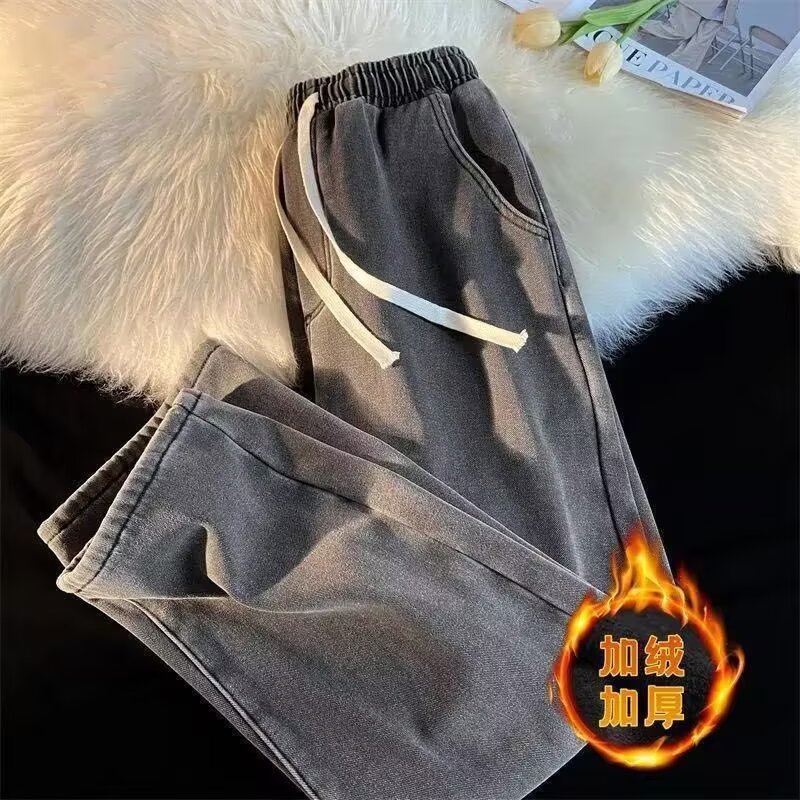 Плюшевые толстые джинсы мужской сезон эласткая талия, прямые ноги, маленькие свободные осенние и зимние студенты теплые брюки