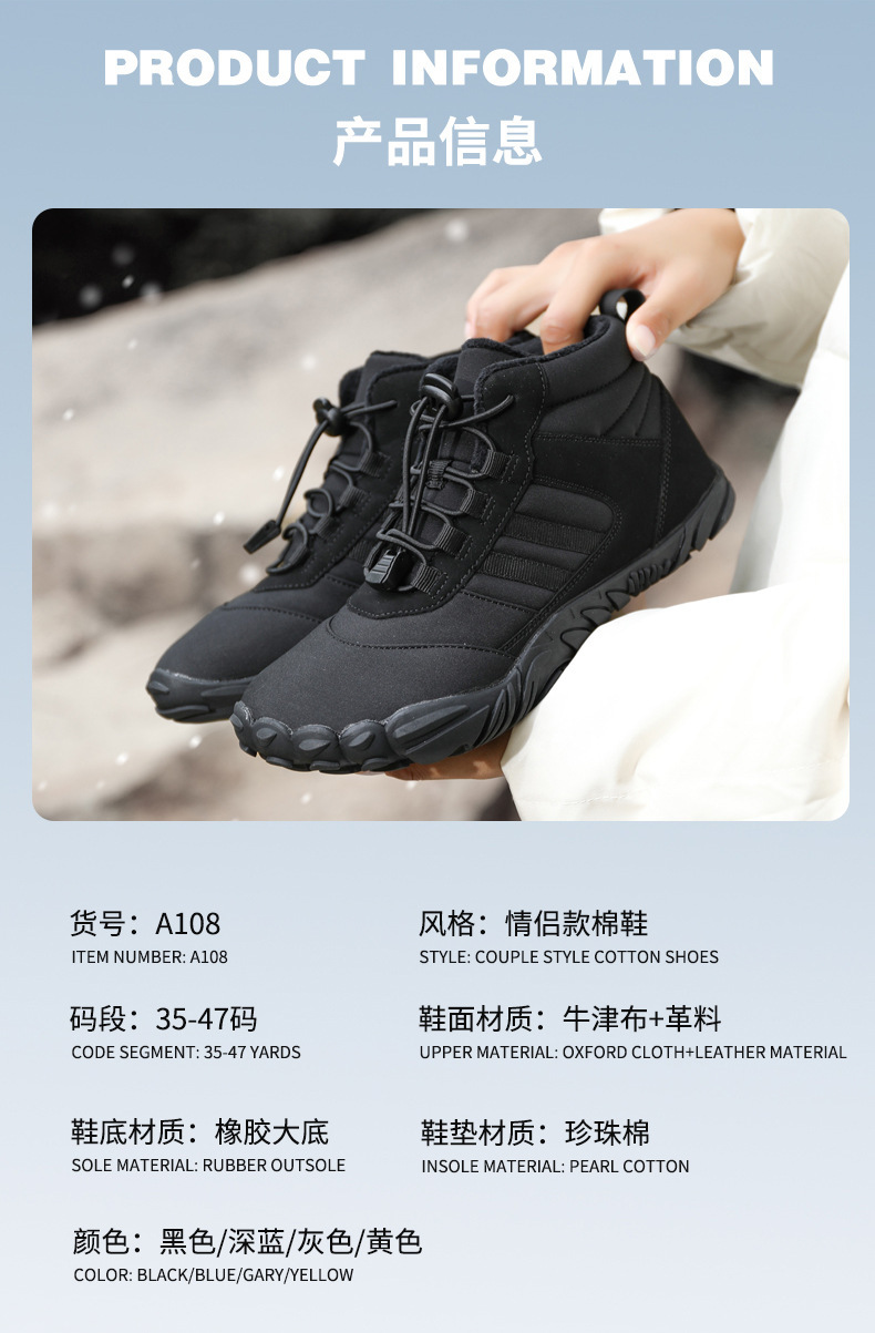 Наружная хлопчатобумажная обувь с пятью пальцами нескользящая и износостойкая пара походных туфель теплая высокая, шерстяные сапоги для мужчин и женщин