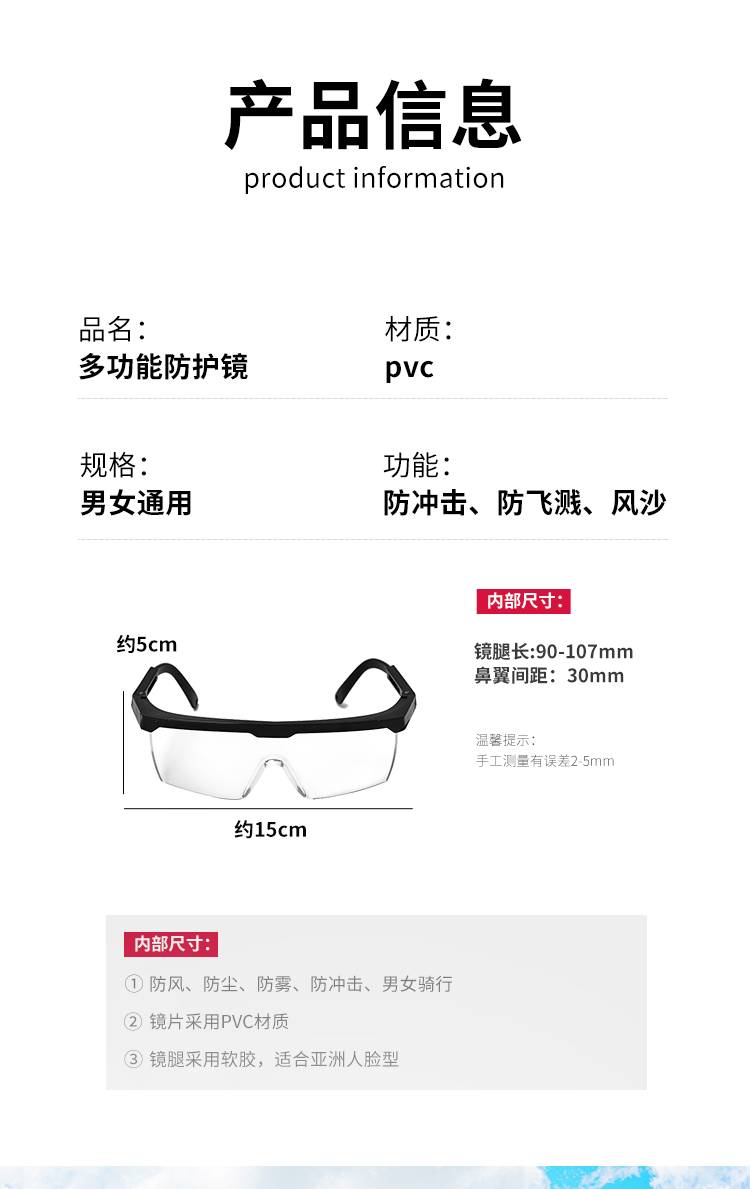 Защитные очки против тумана, пыли, брызг, ветра и песка