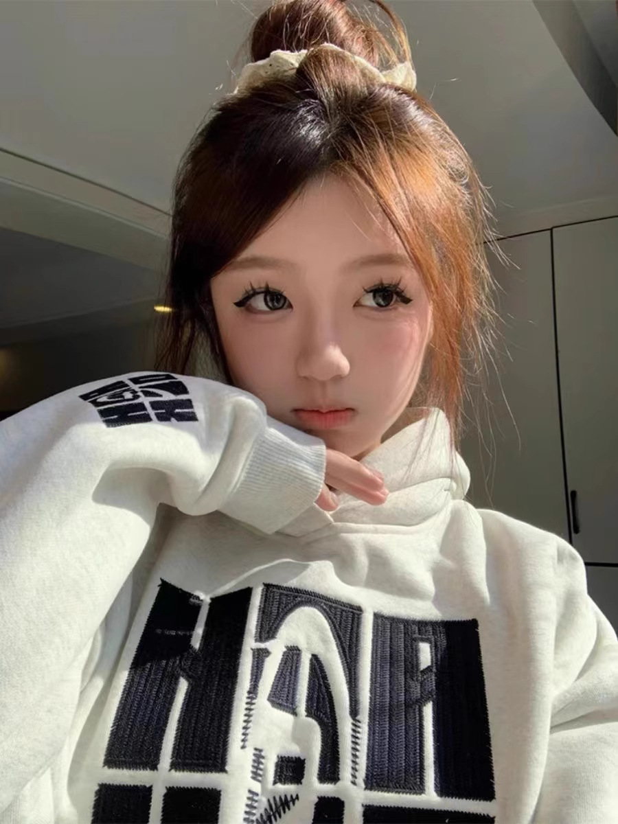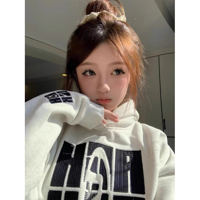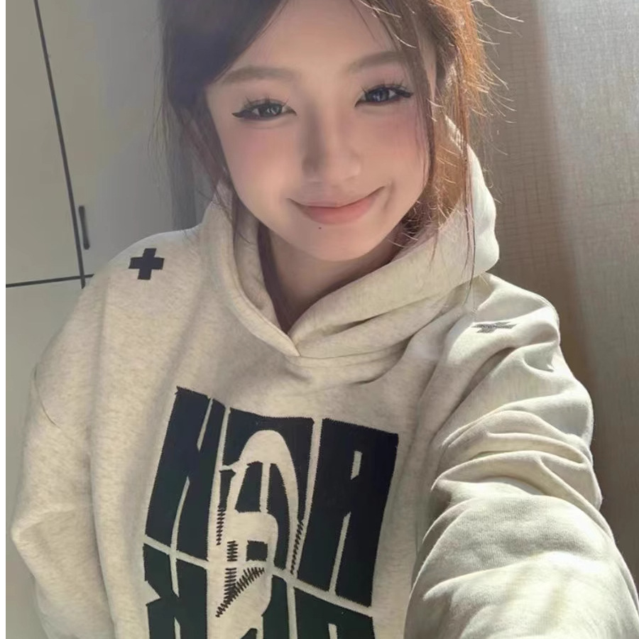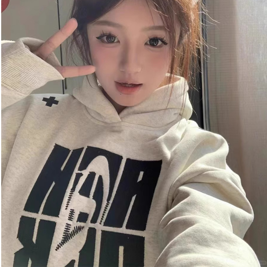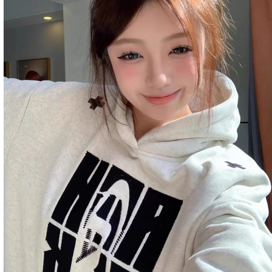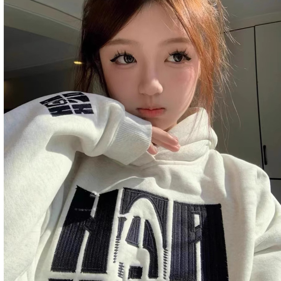 330g хлопчатобумажная вышивка с капюшоном свитер женский 2024 осень и зима новая бархатная толстая свободная ленивая куртка
