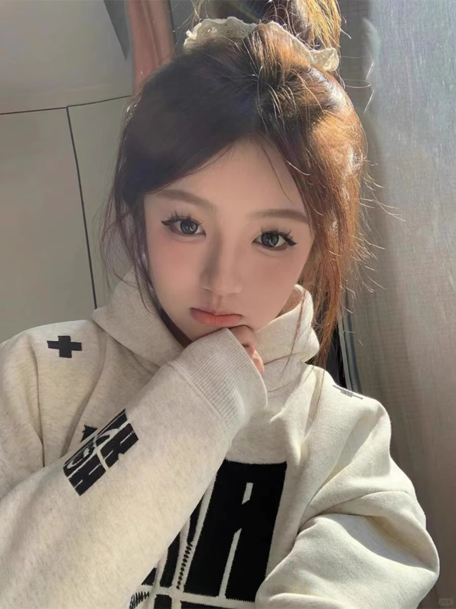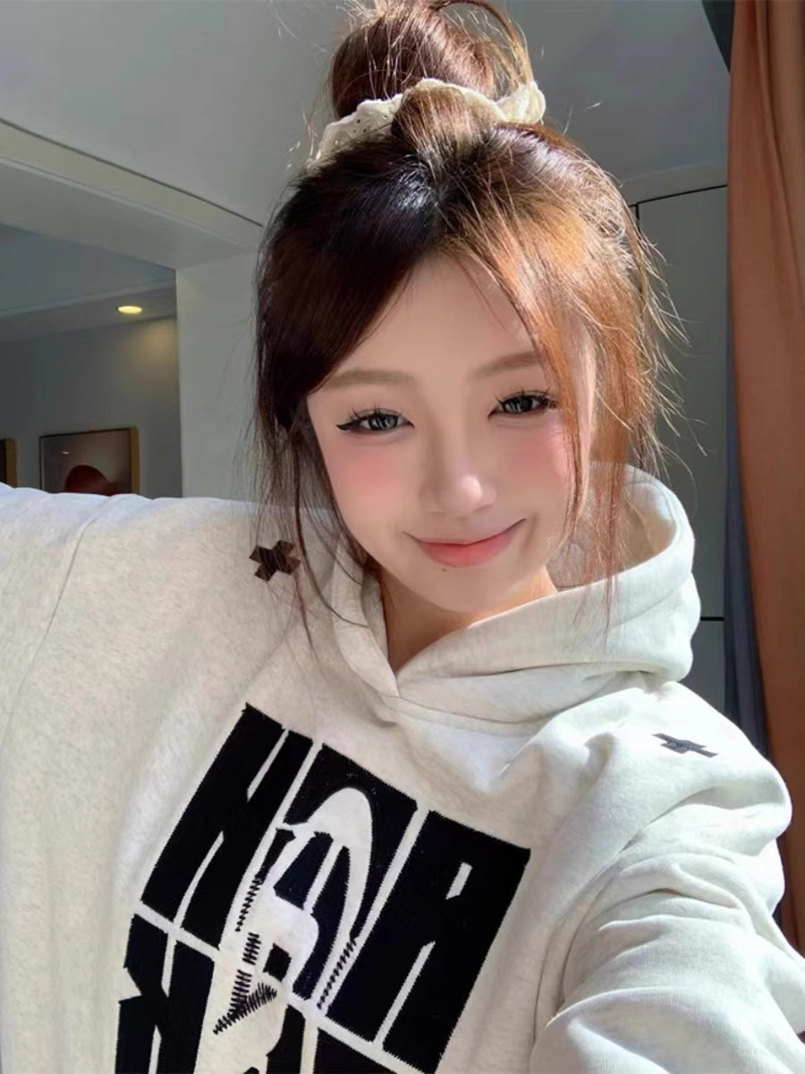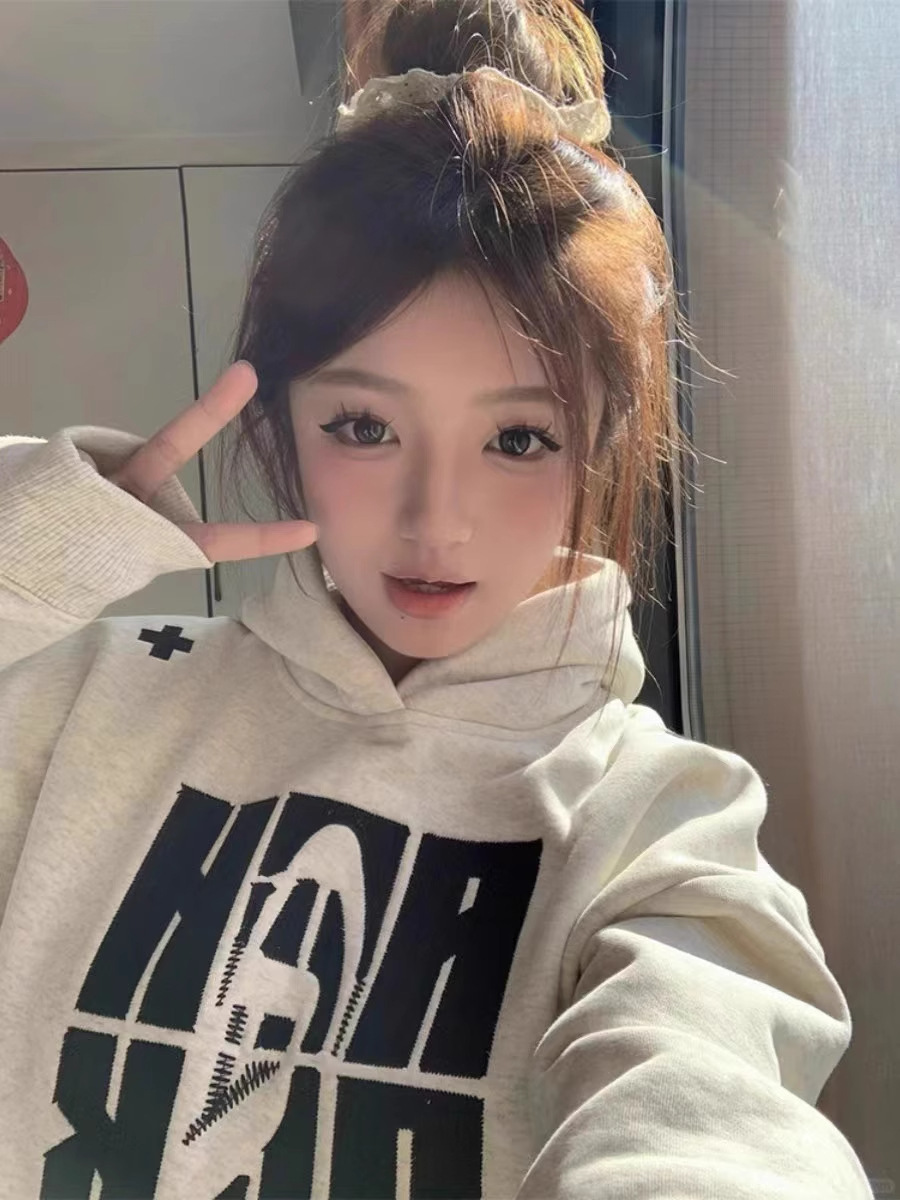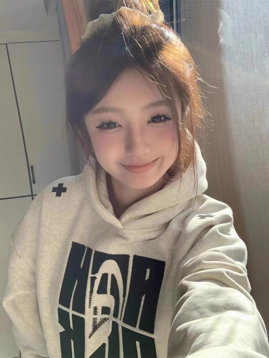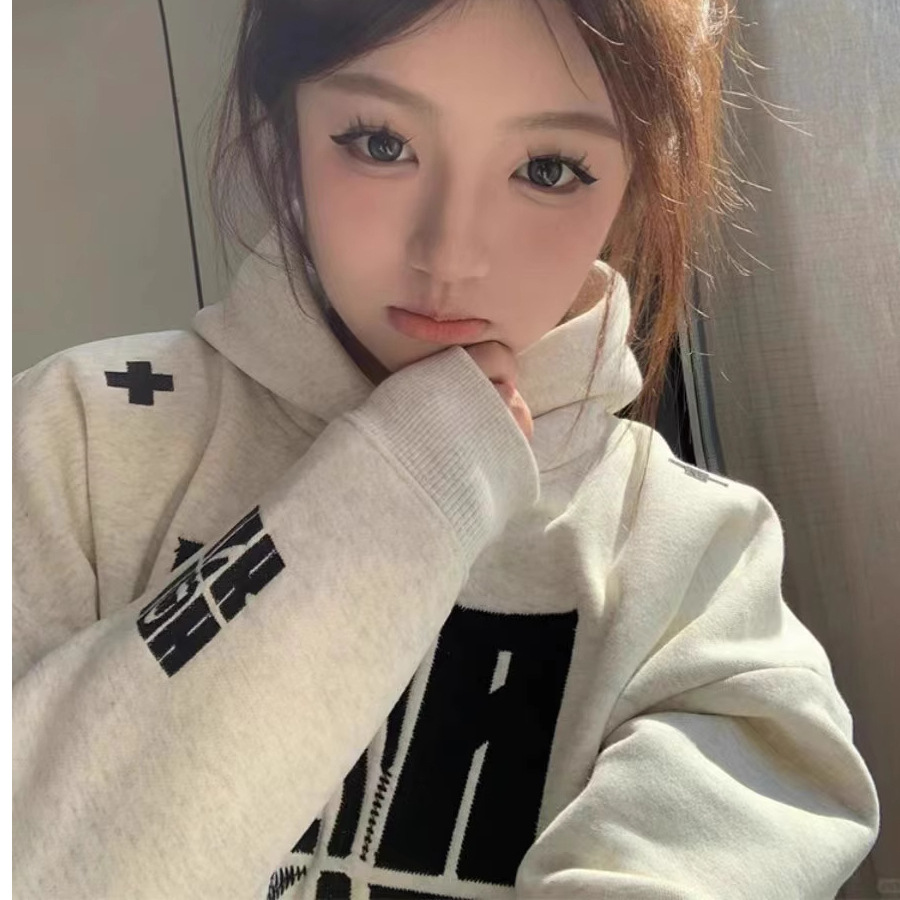 330g хлопчатобумажная вышивка с капюшоном свитер женский 2024 осень и зима новая бархатная толстая свободная ленивая куртка
