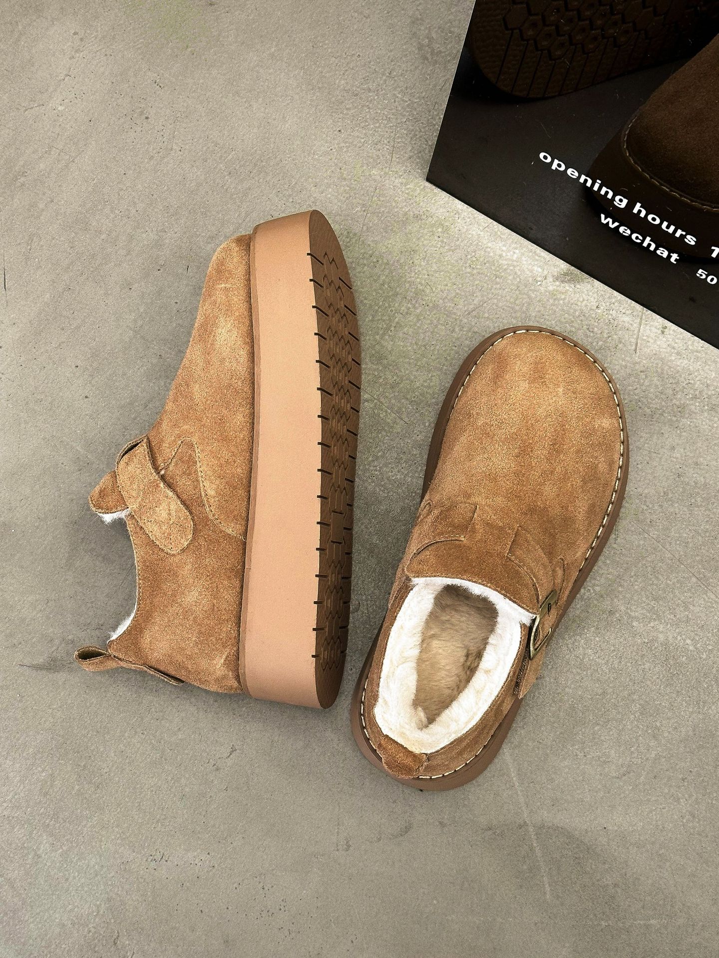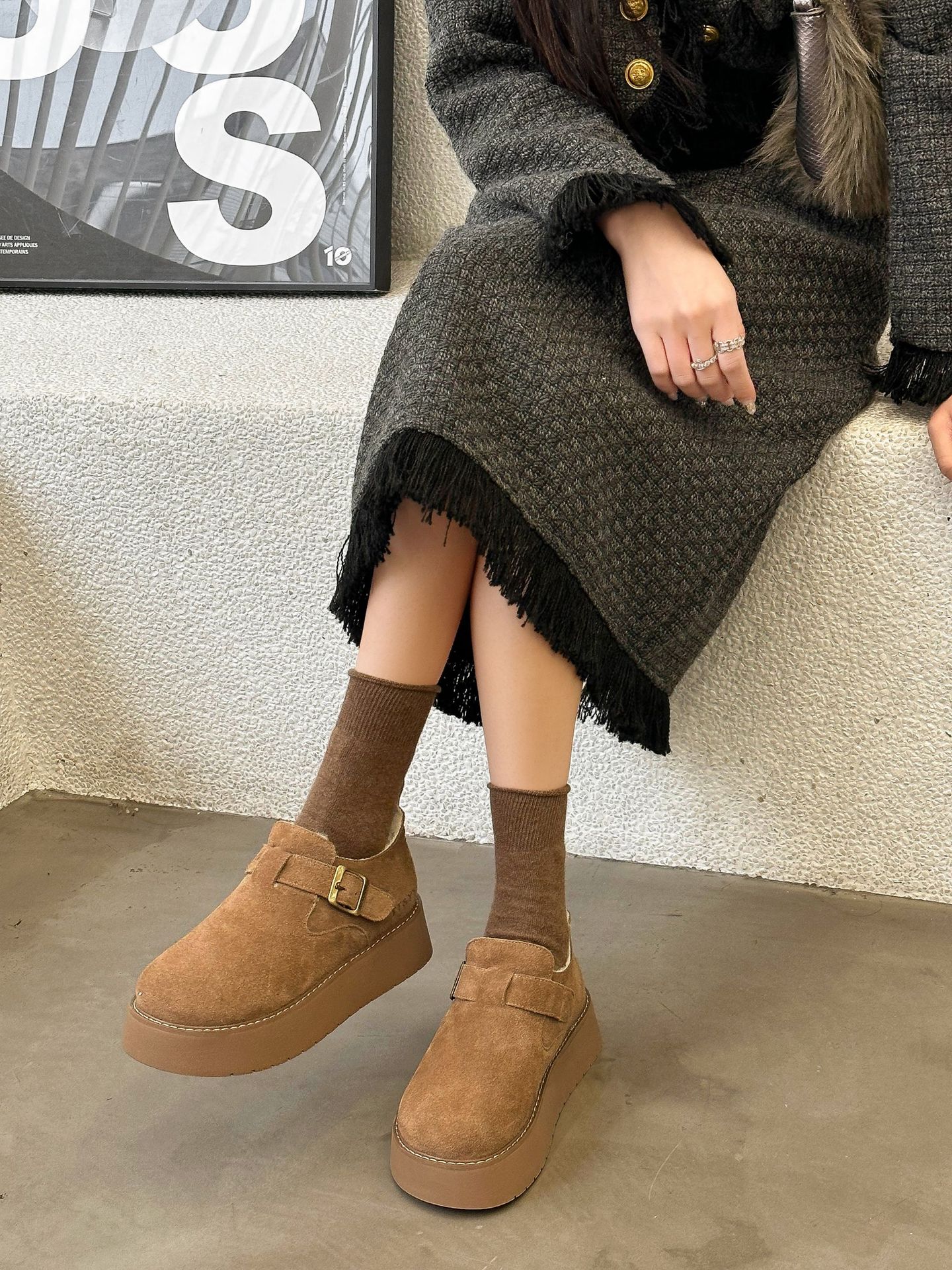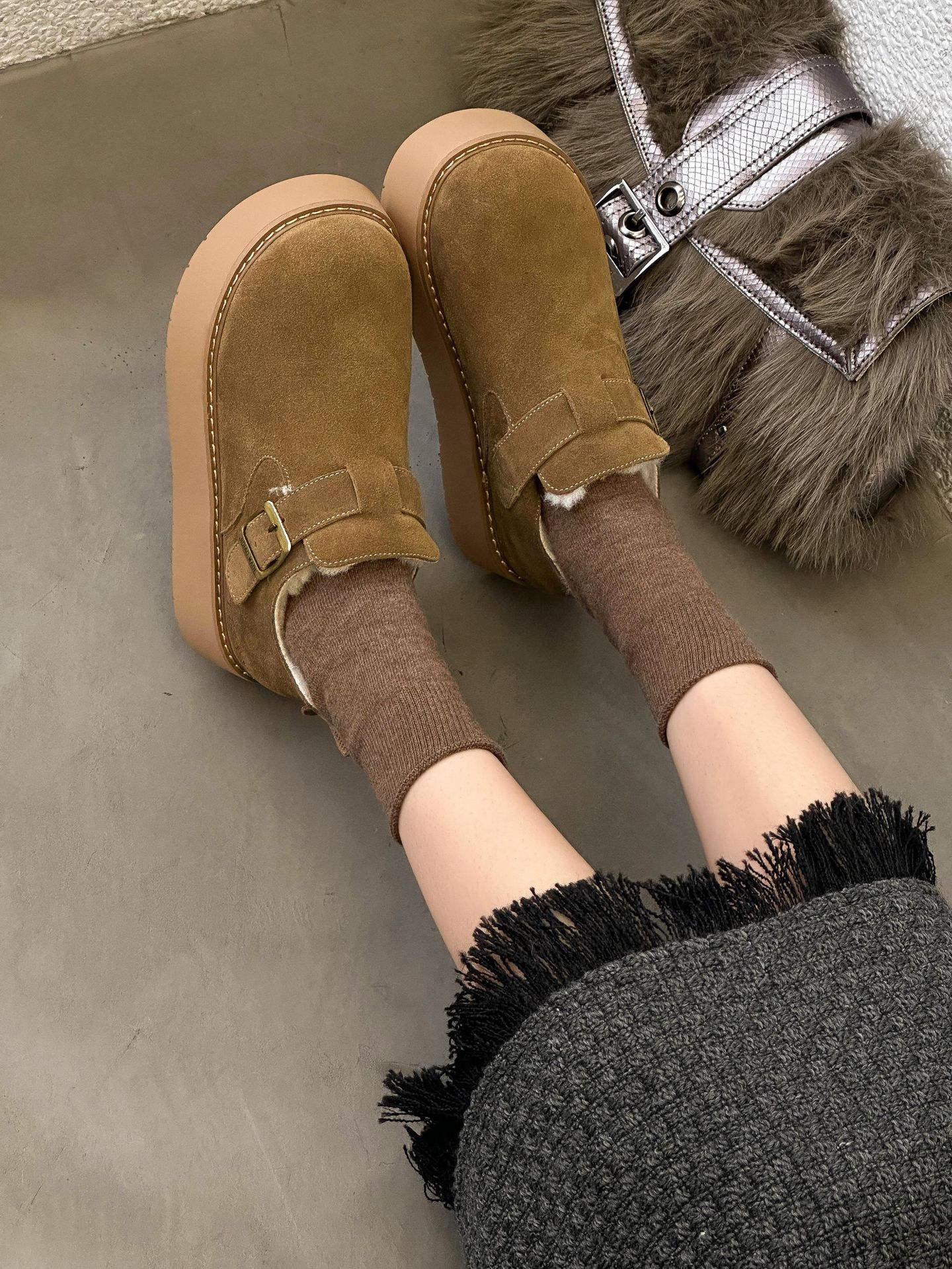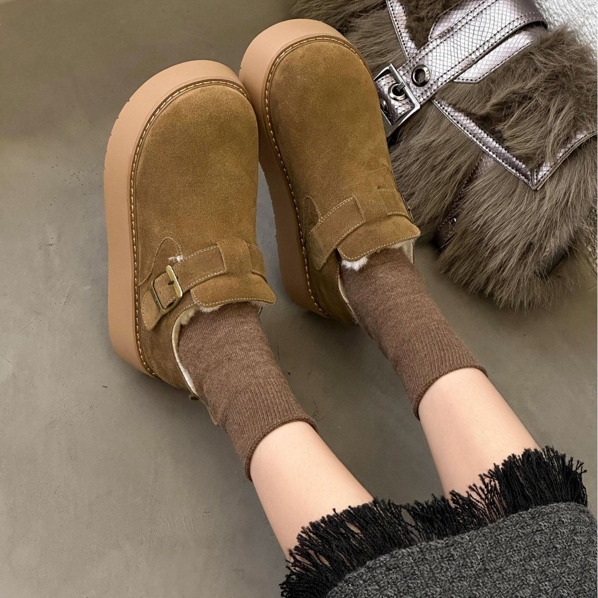 Birkenn обувь женский 2024 осень-зима новые бархатные кексы на толстой подошве ретро дикая матовая кожа