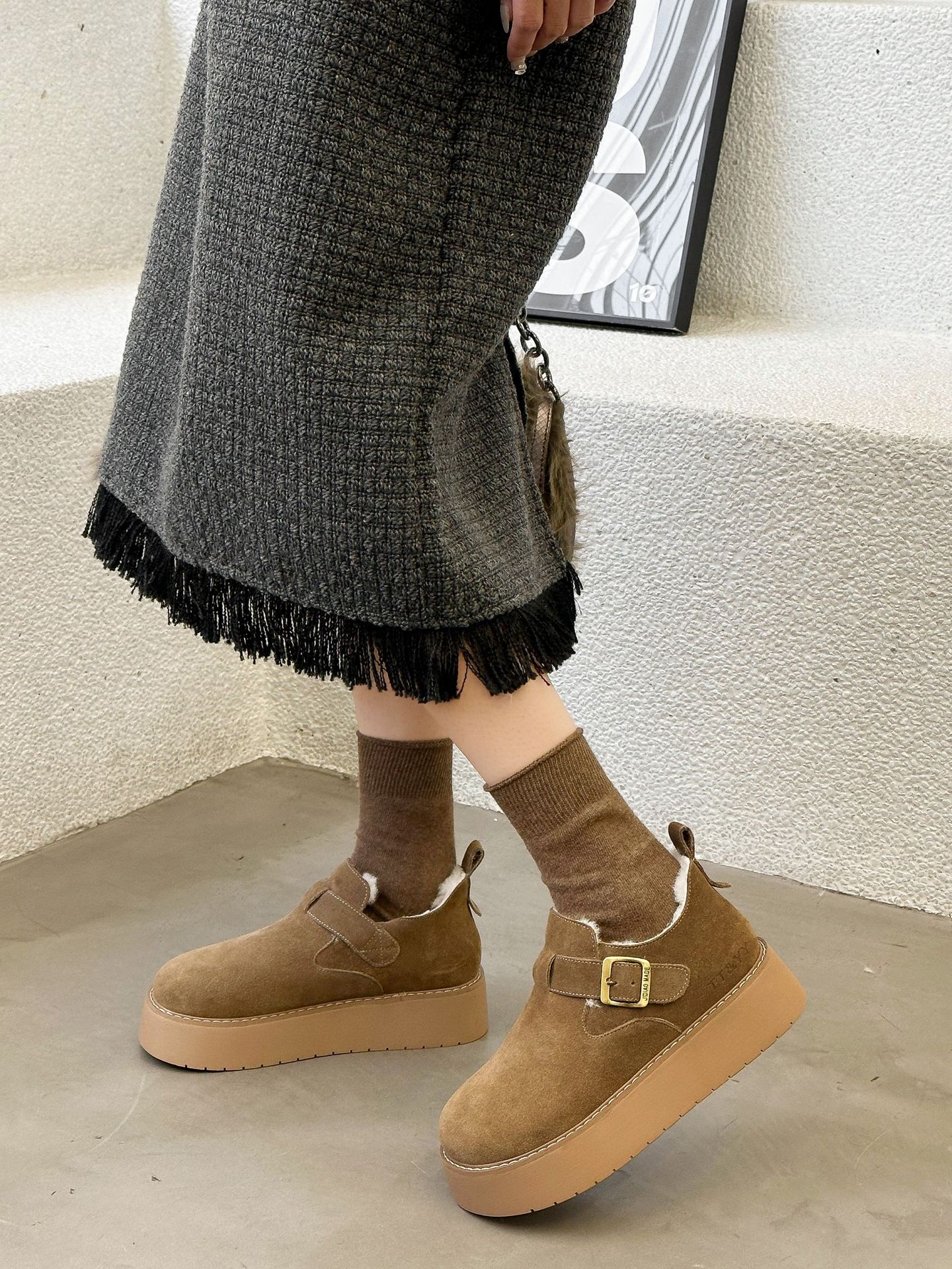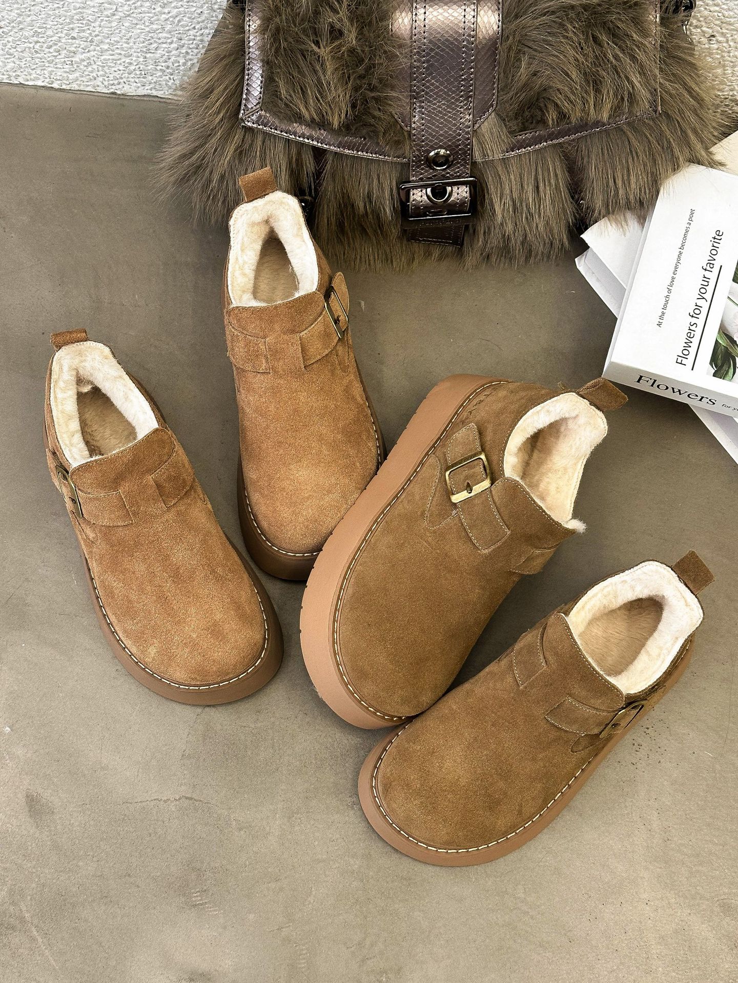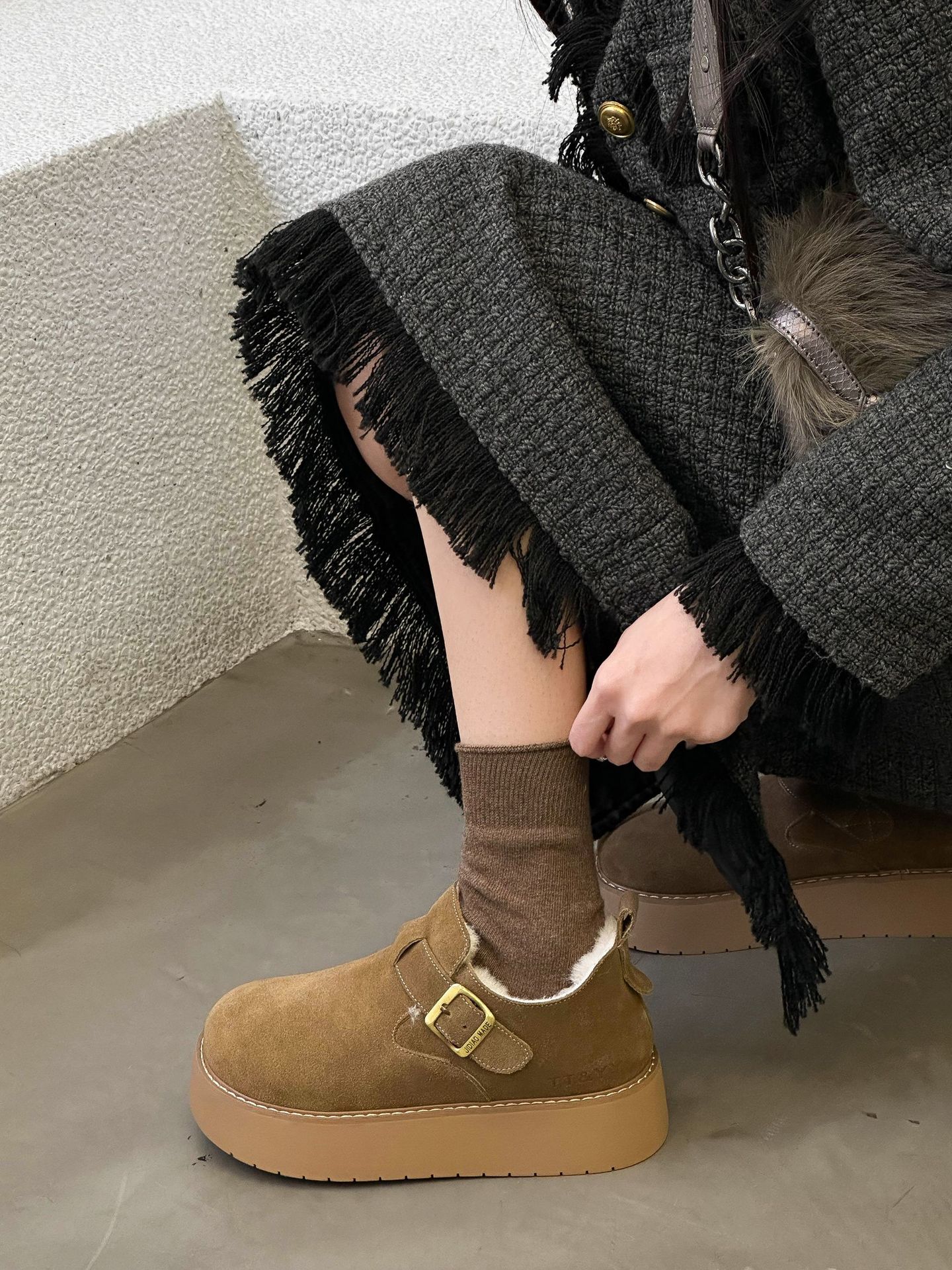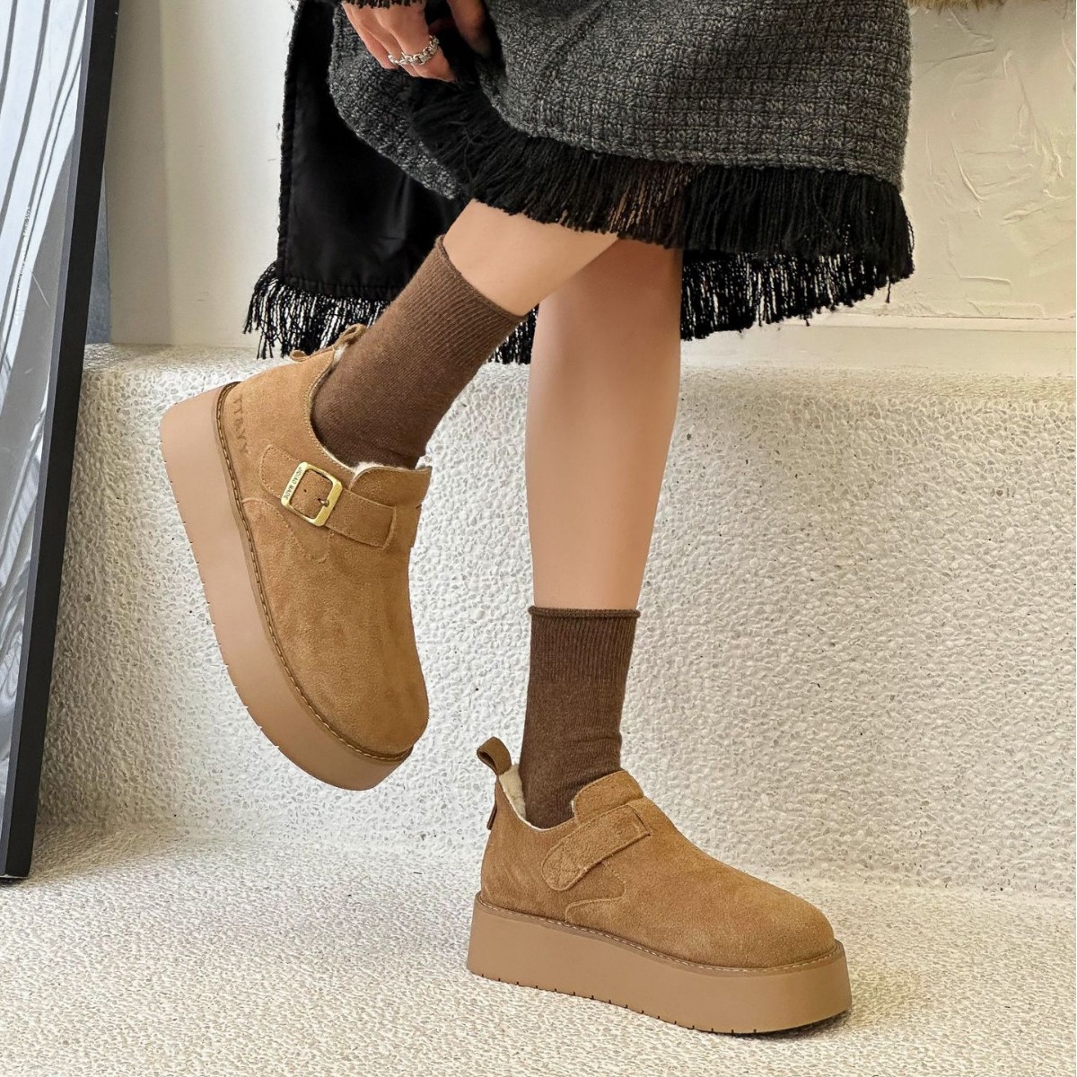 Birkenn обувь женский 2024 осень-зима новые бархатные кексы на толстой подошве ретро дикая матовая кожа