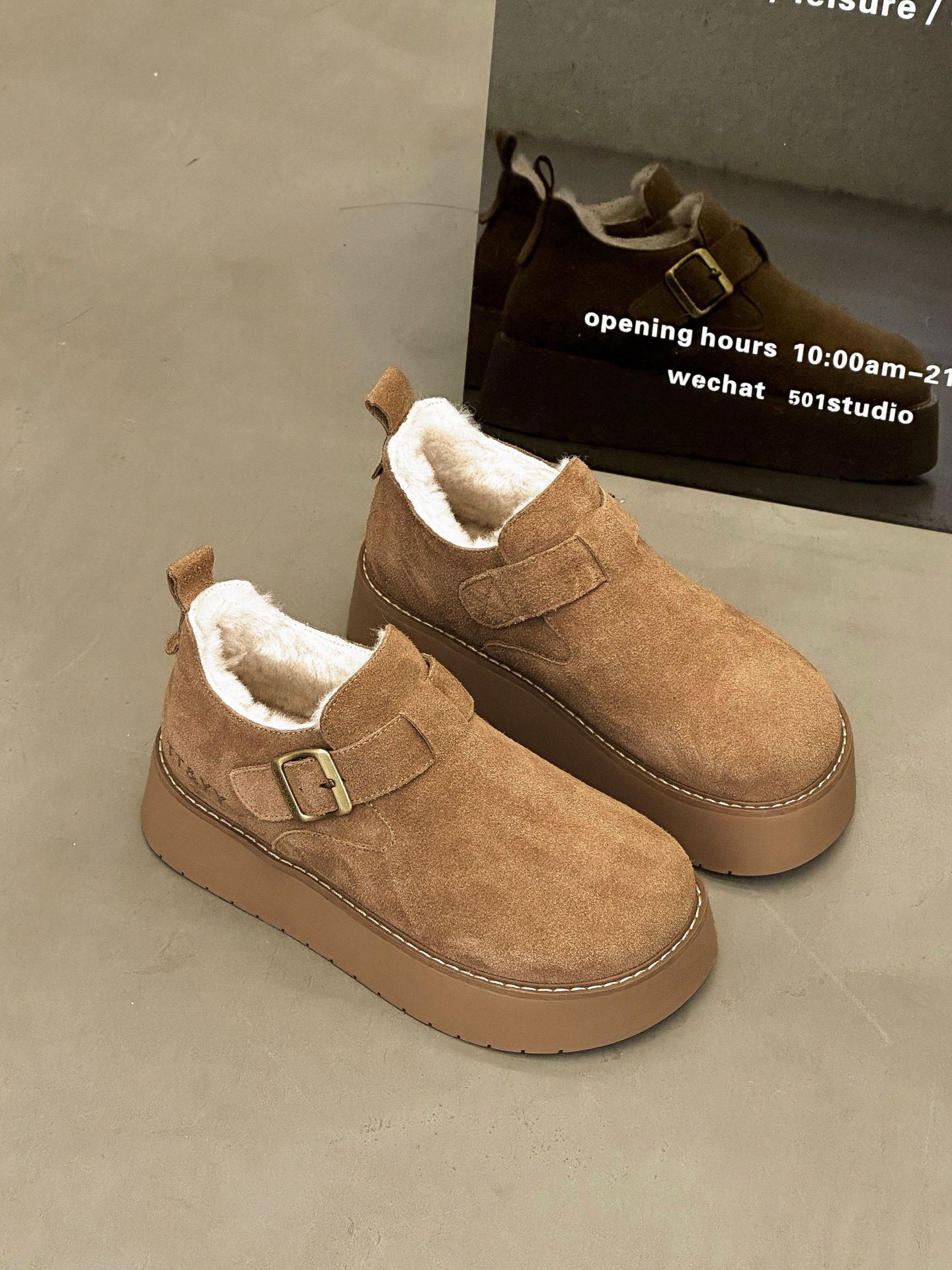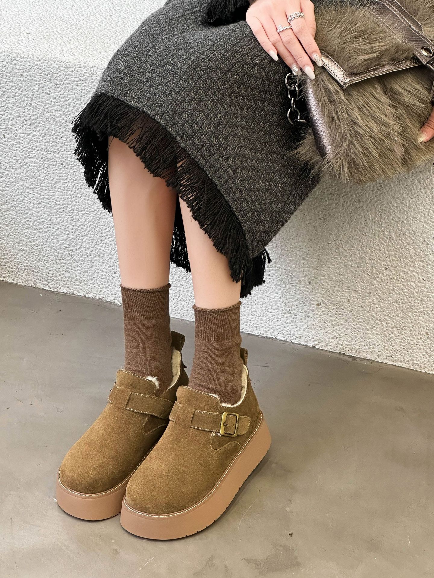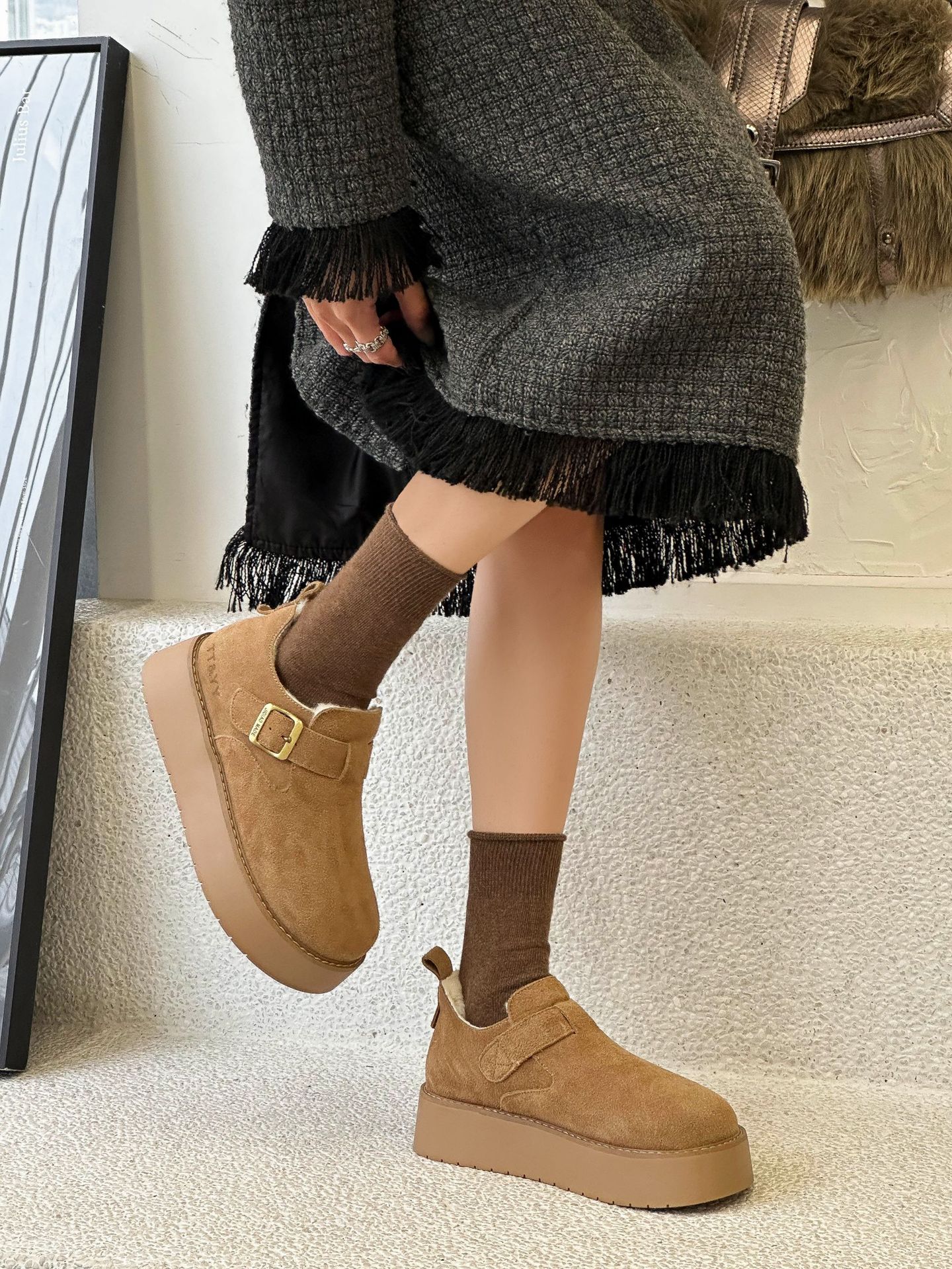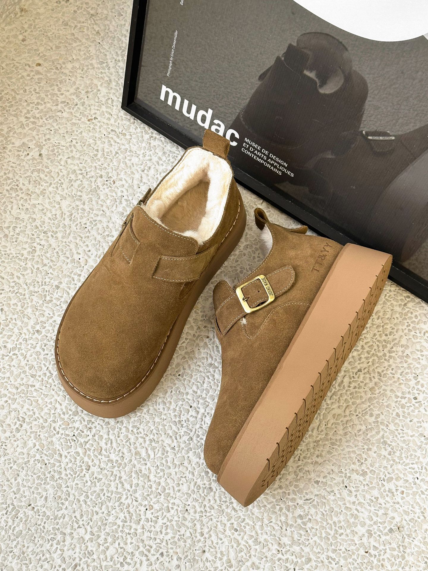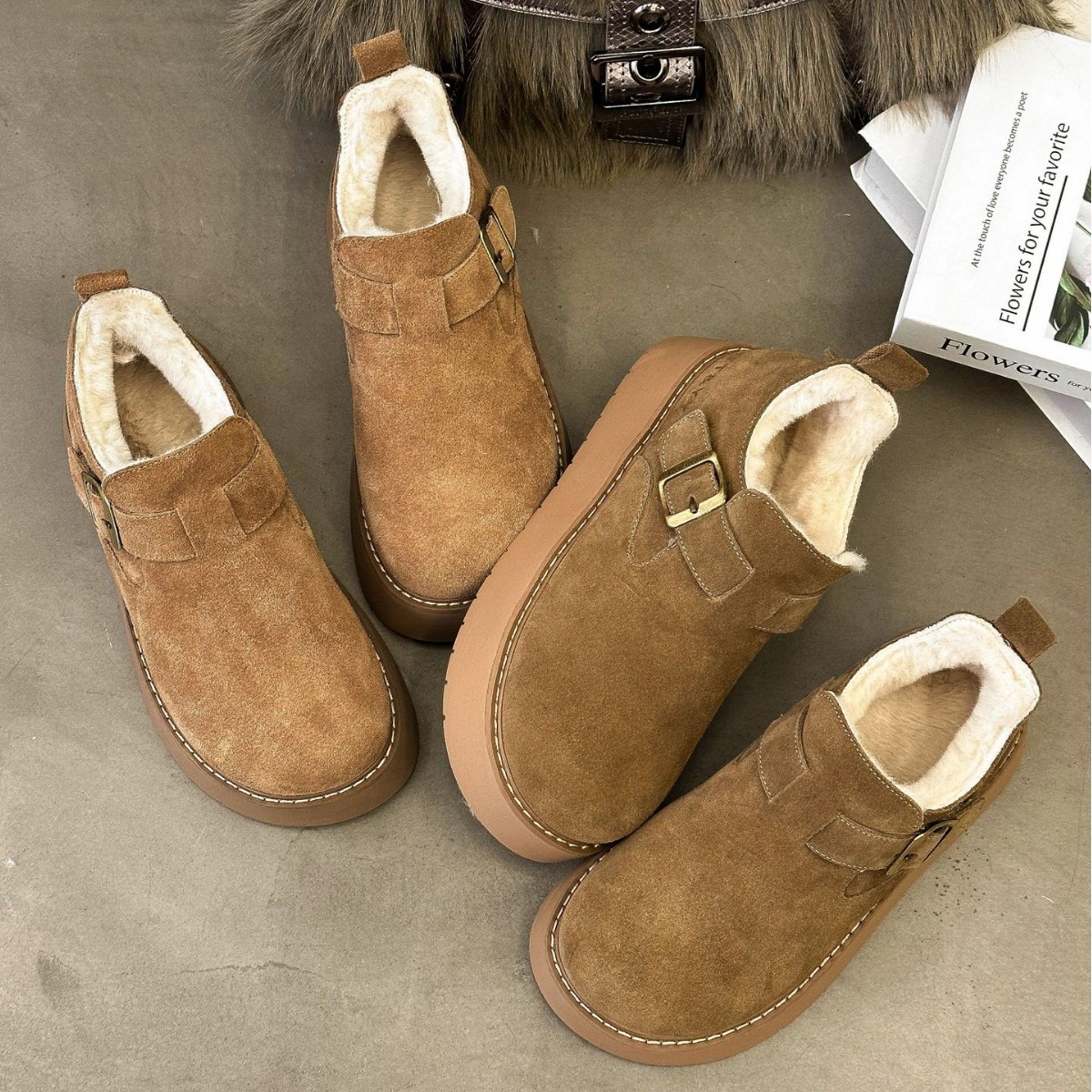Birkenn обувь женский 2024 осень-зима новые бархатные кексы на толстой подошве ретро дикая матовая кожа