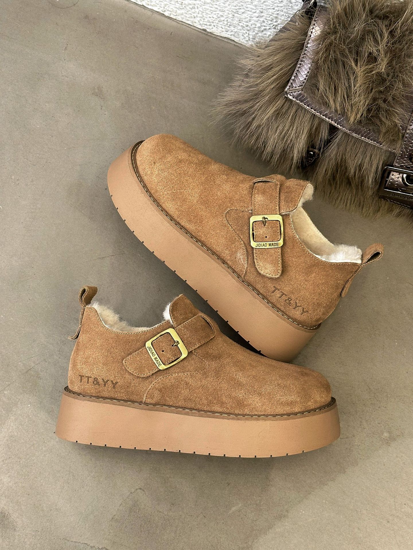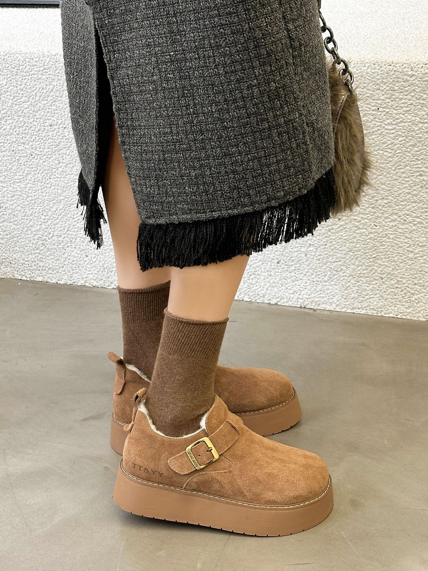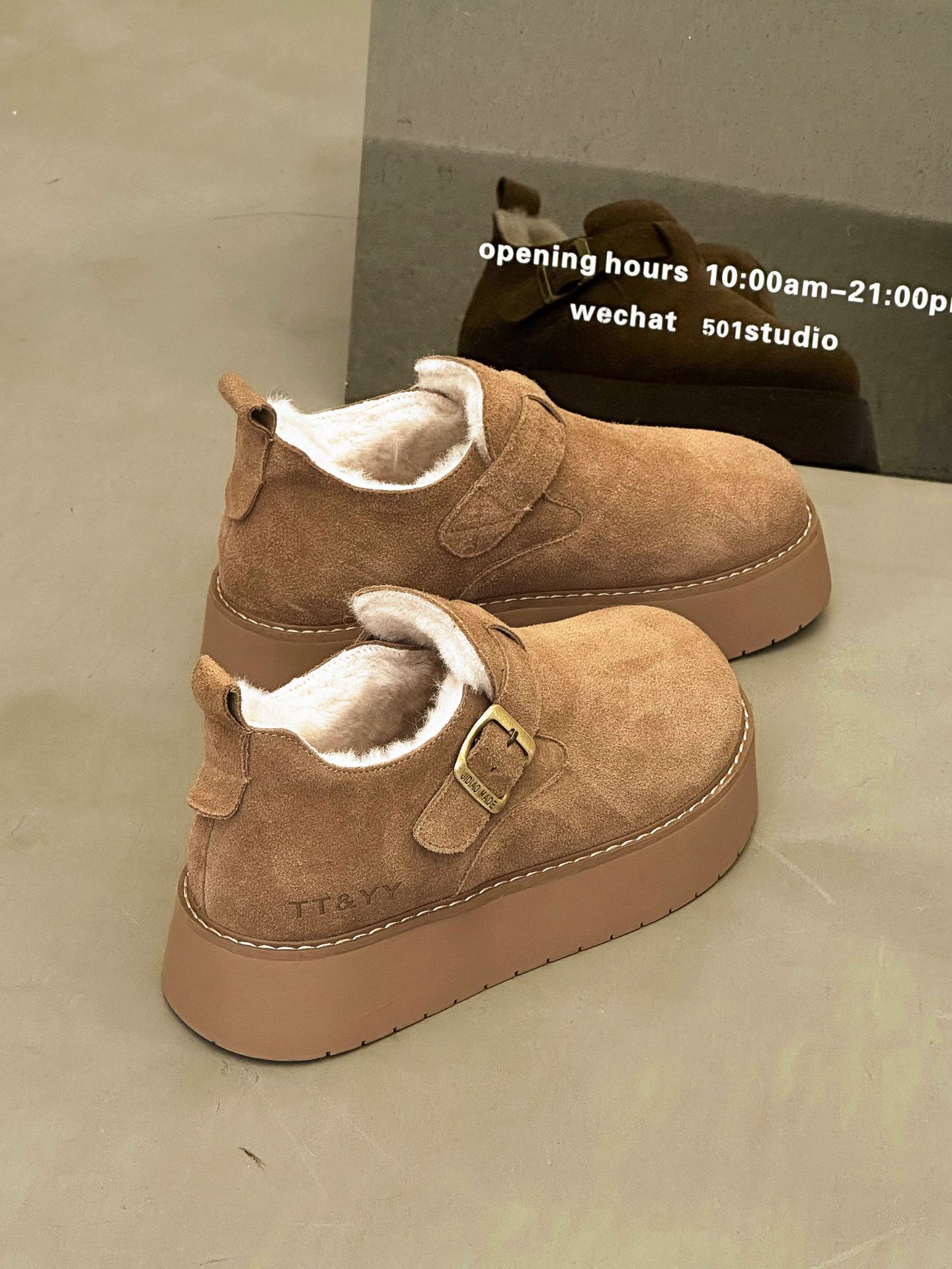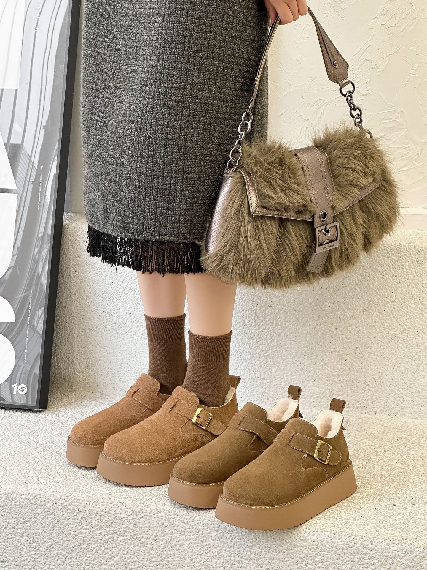 Birkenn обувь женский 2024 осень-зима новые бархатные кексы на толстой подошве ретро дикая матовая кожа