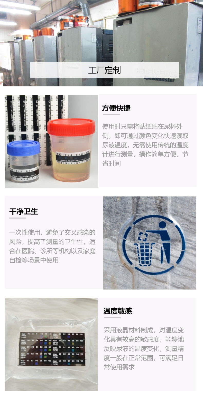 出口90-100华氏度尿杯、采样杯温度计测温贴