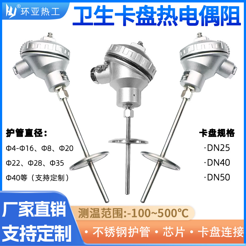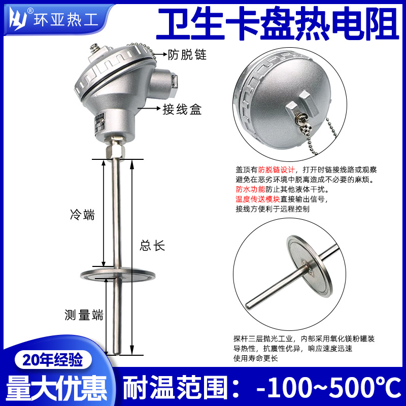 Санитарный патрон 50,5, встроенный датчик температуры, термостойкость, датчик температуры PT100