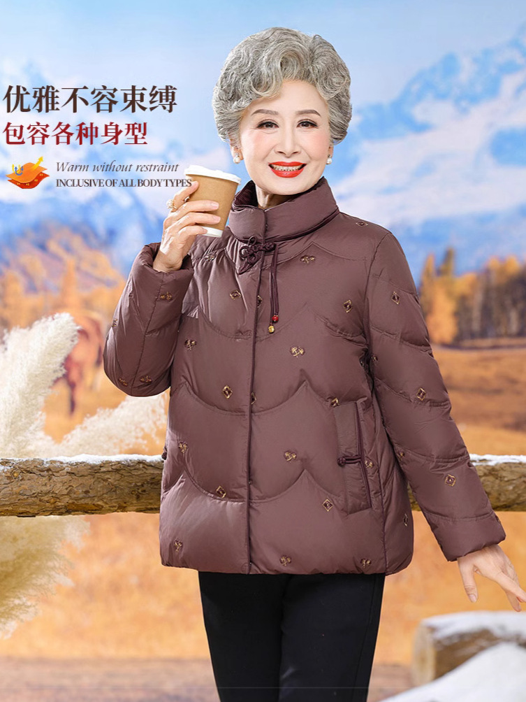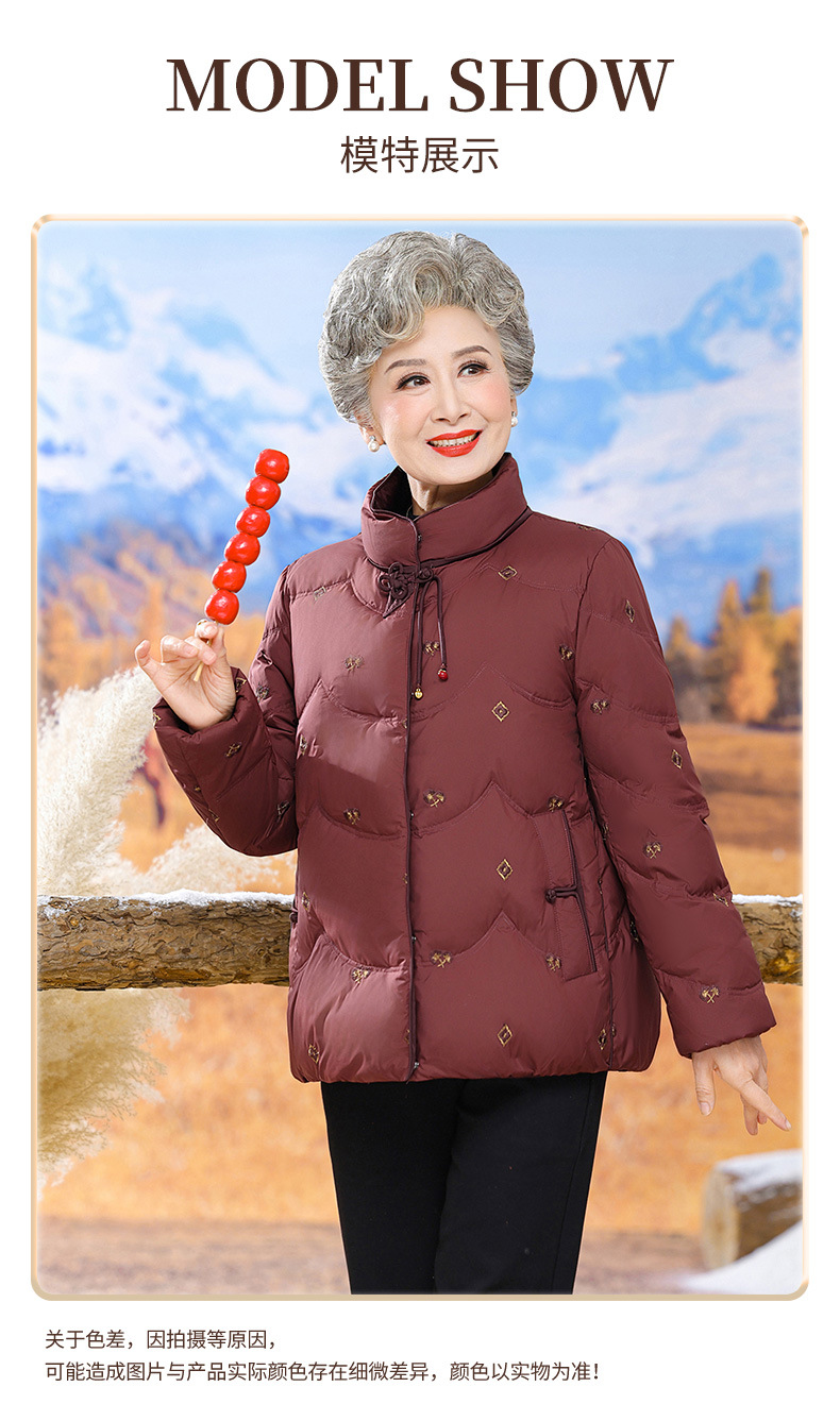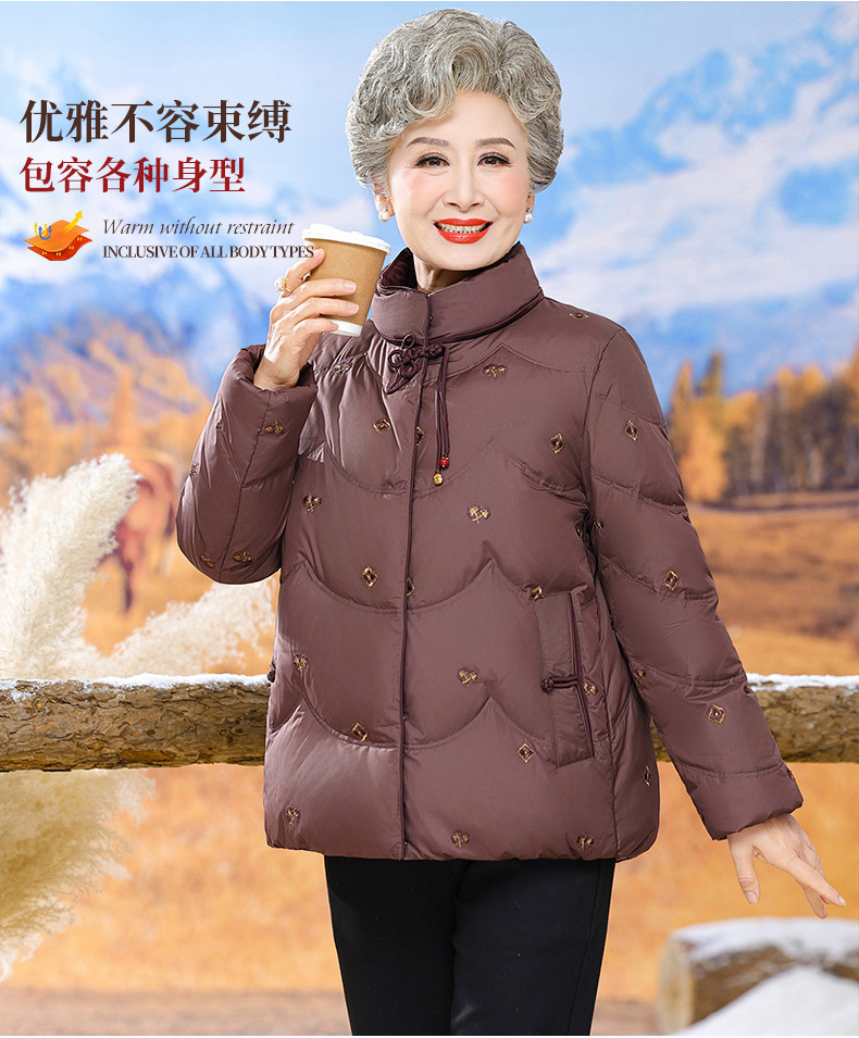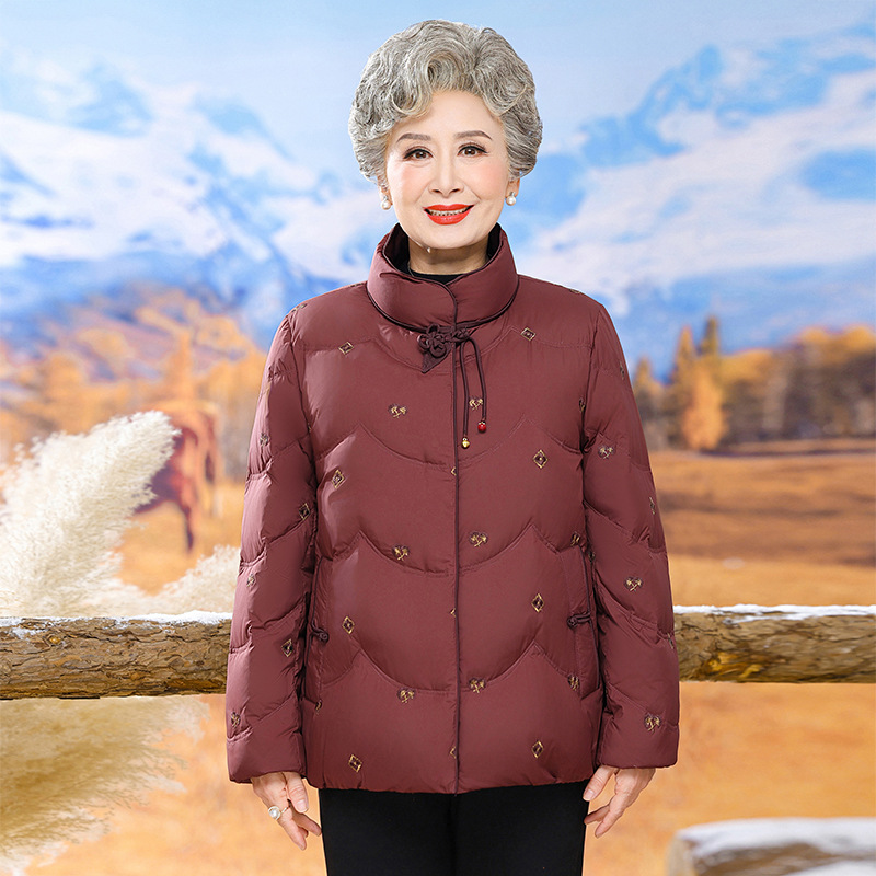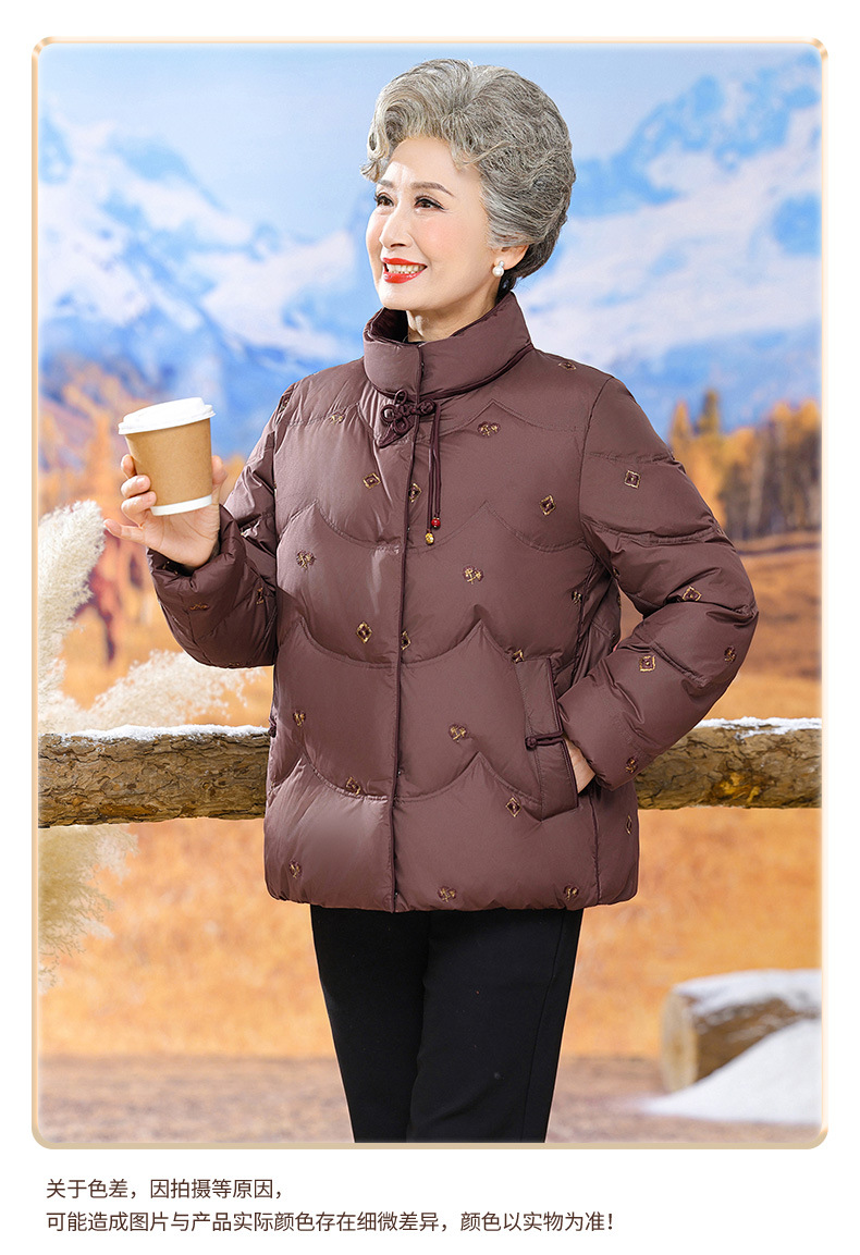 2024 мама пуховик куртка топ зимой пожилая мама пуховик 90 белая утка с вышивкой в китайском стиле