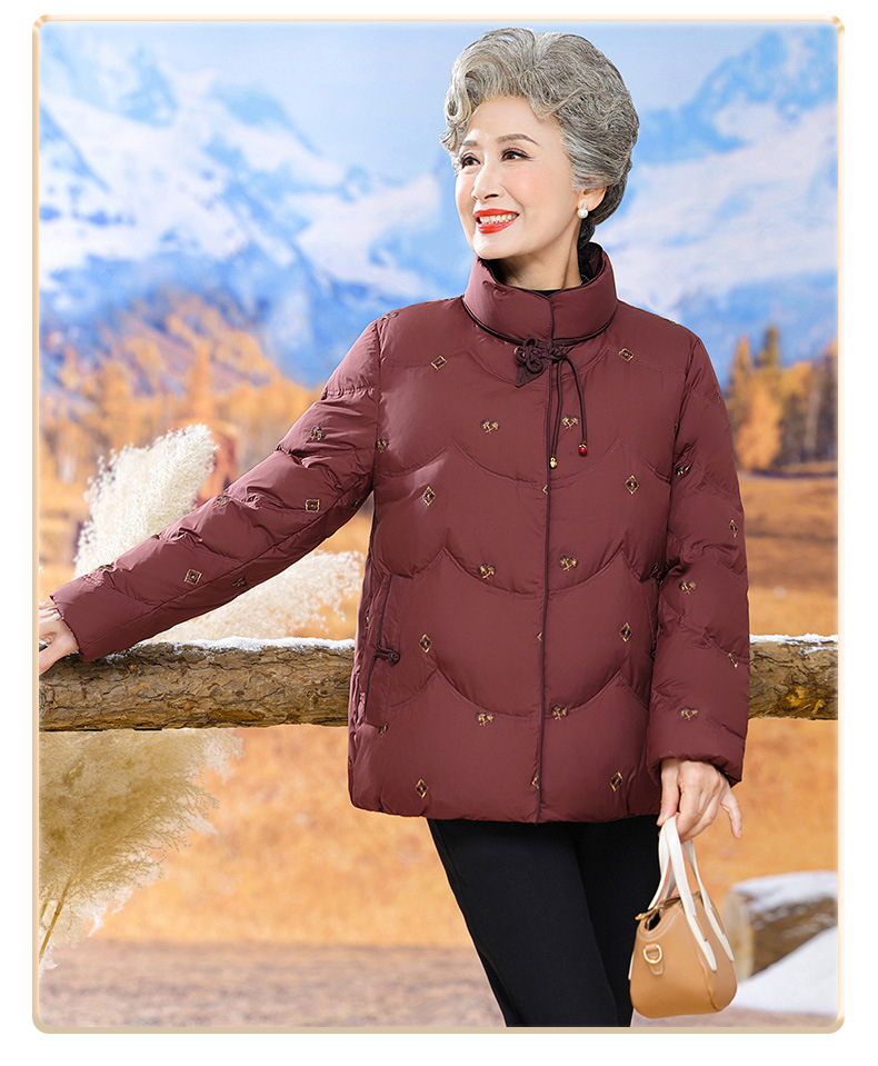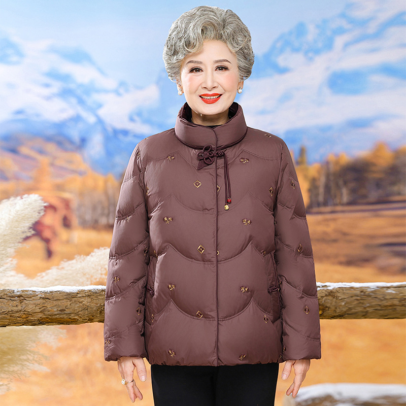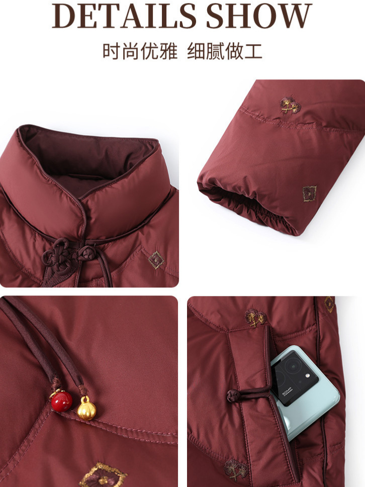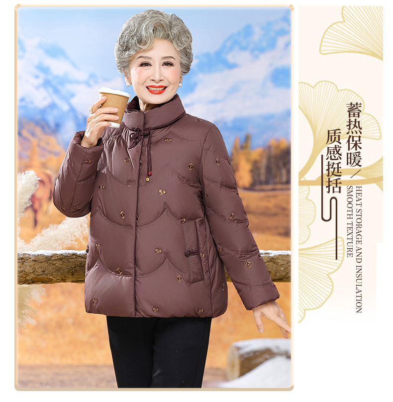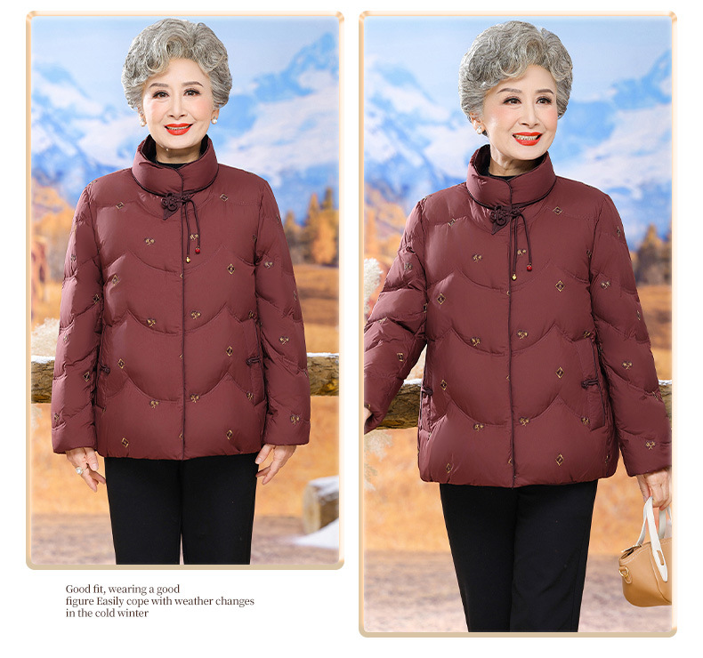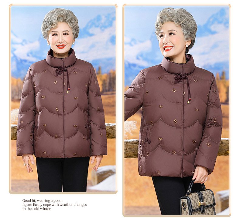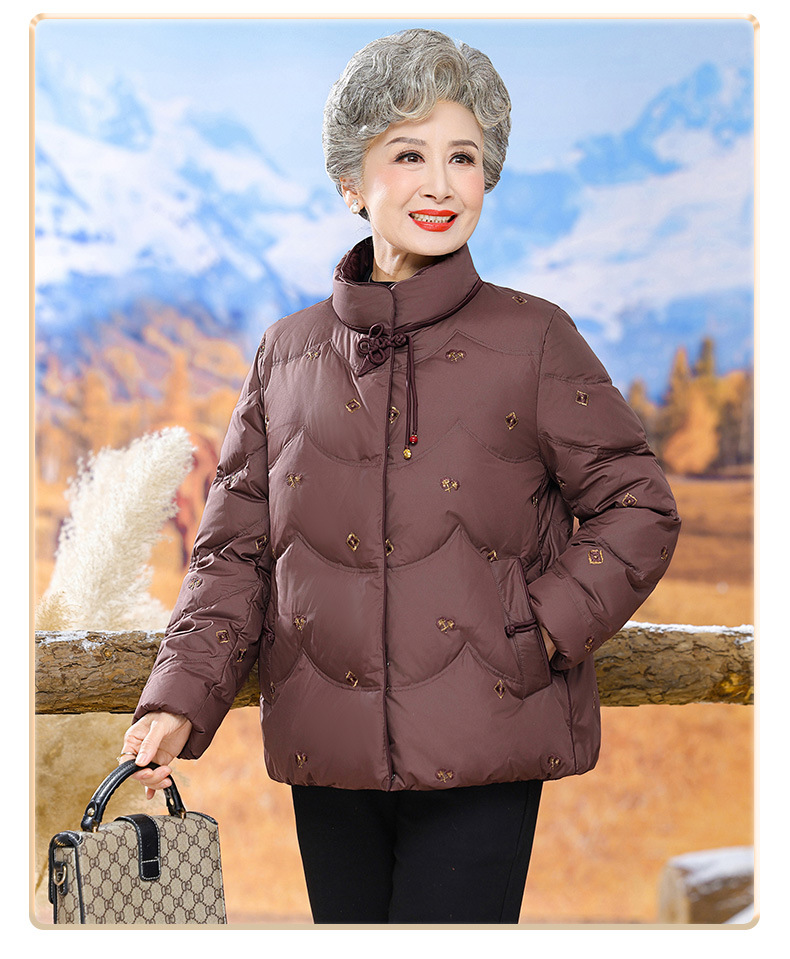2024 мама пуховик куртка топ зимой пожилая мама пуховик 90 белая утка с вышивкой в китайском стиле