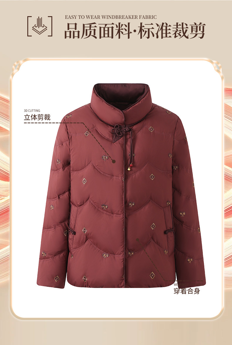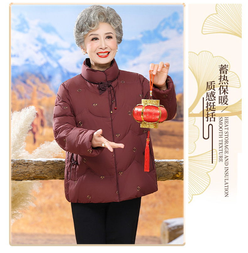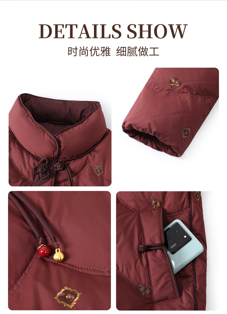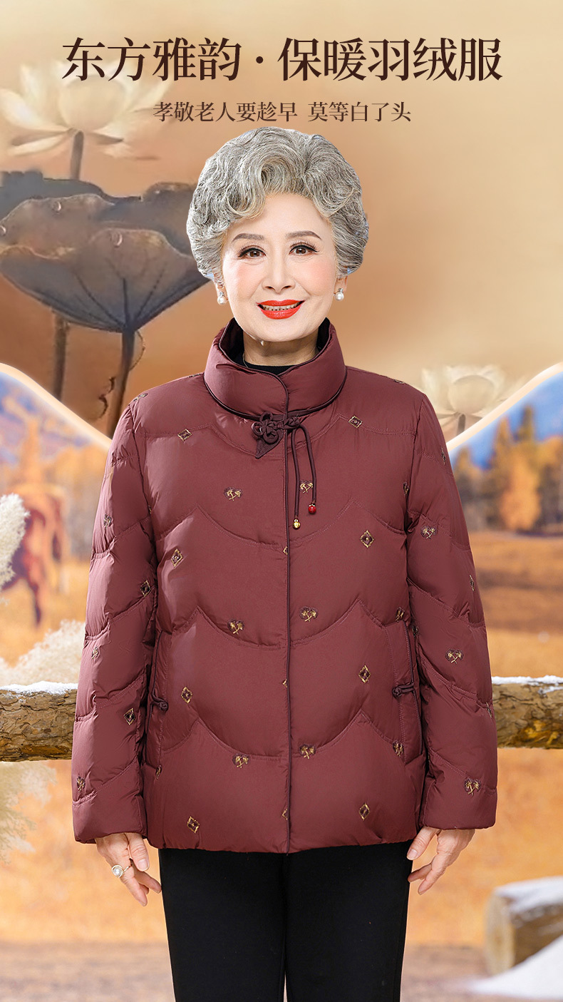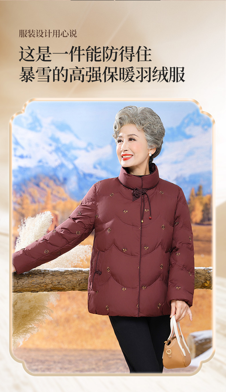 2024 мама пуховик куртка топ зимой пожилая мама пуховик 90 белая утка с вышивкой в китайском стиле