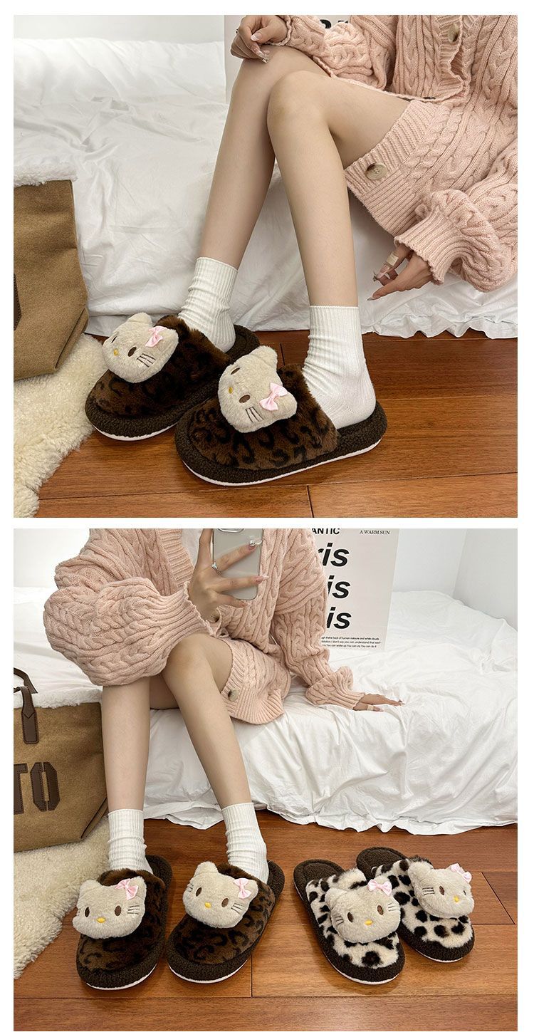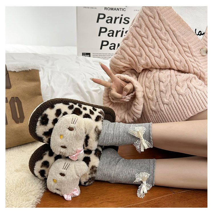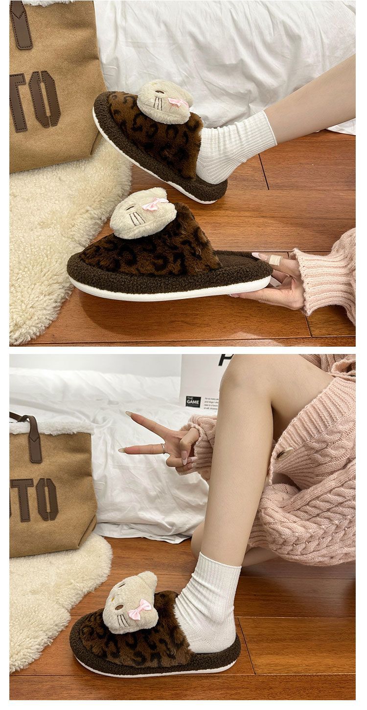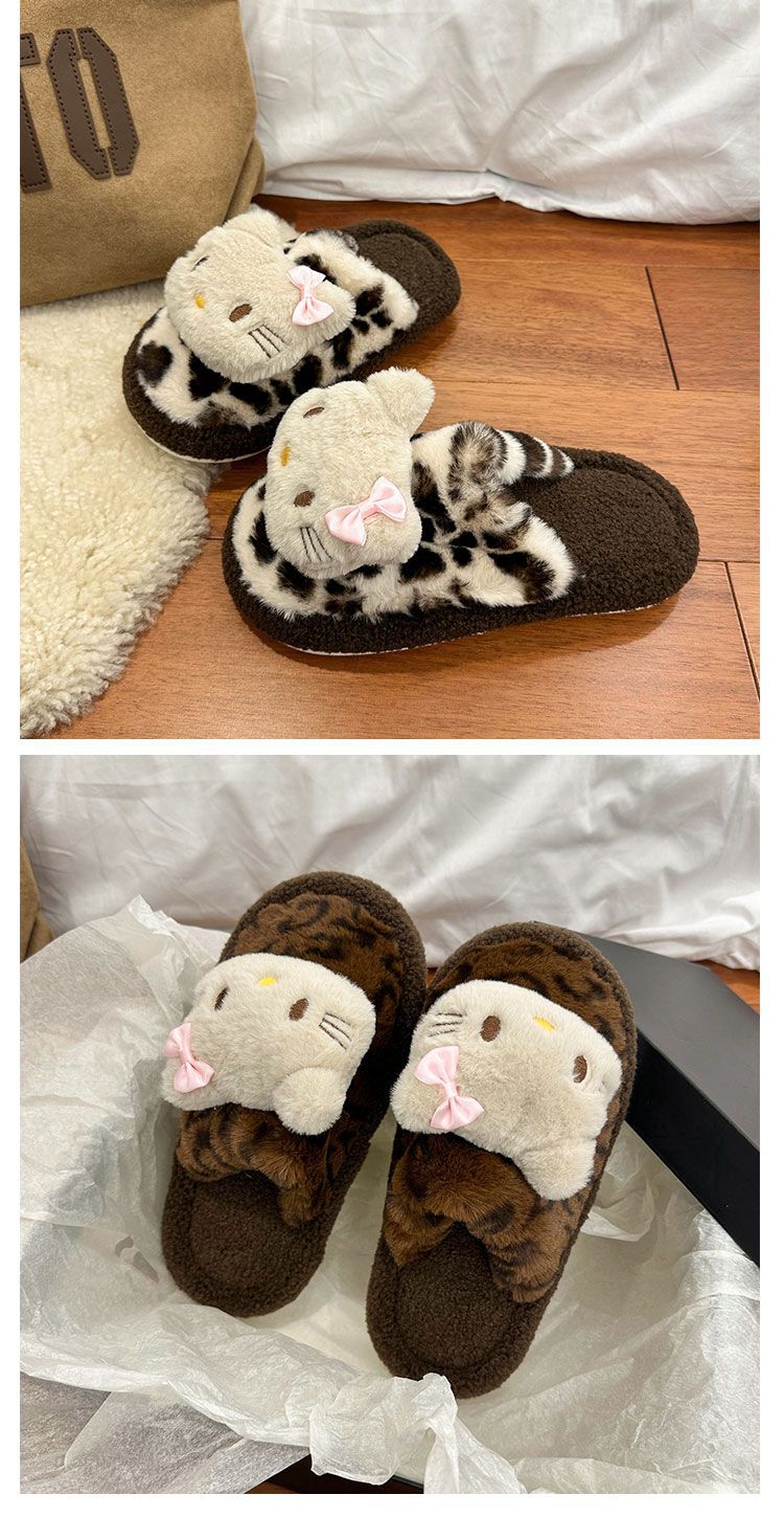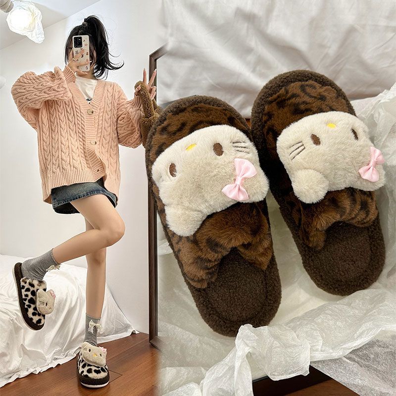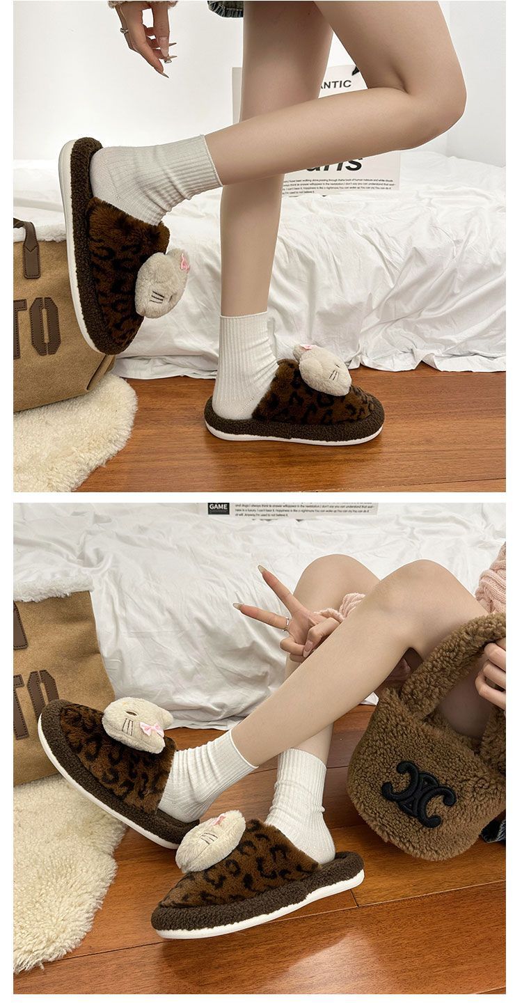 Симпатичная мультяшная кошка хлопчатобумажные тапочки женщина 2024 зима новый внешний вид, чтобы носить толстую подошва дома теплая и бархатная головка