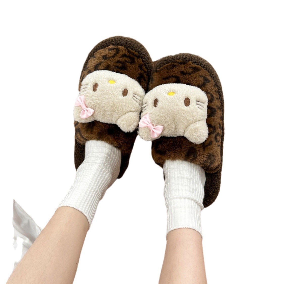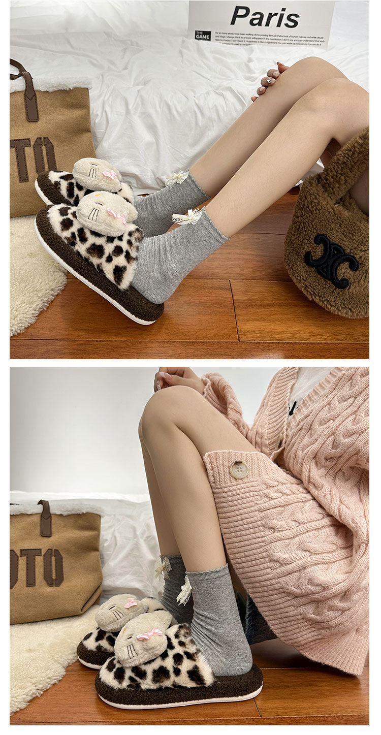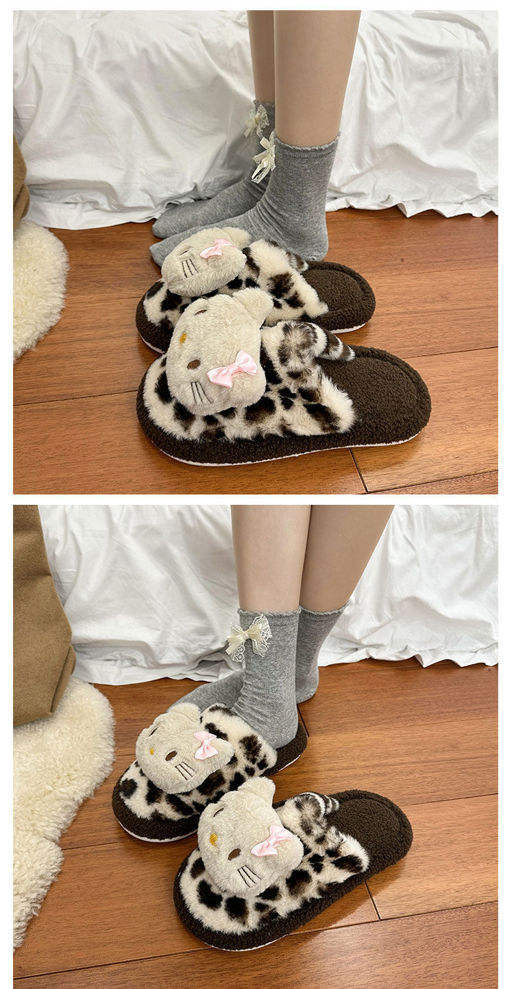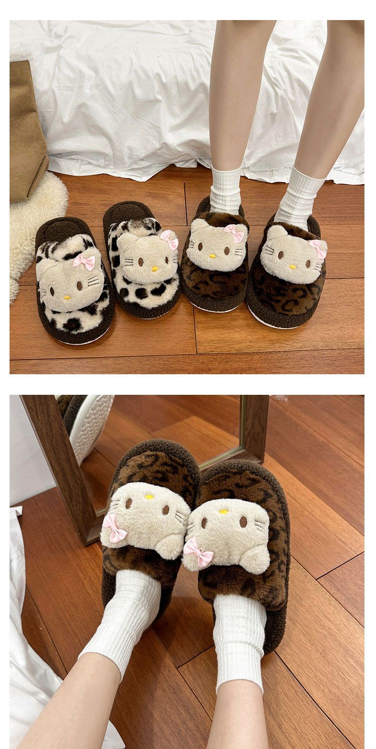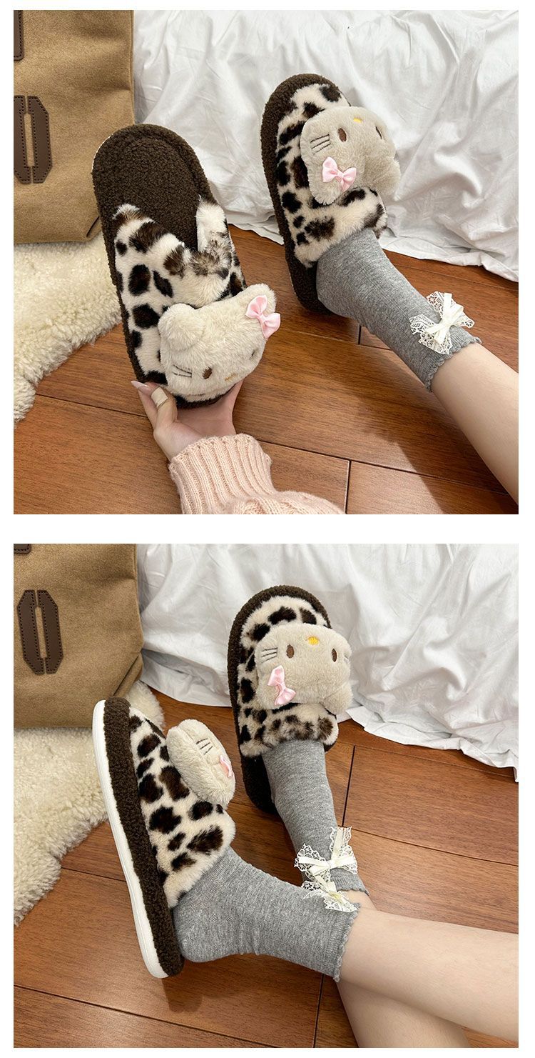 Симпатичная мультяшная кошка хлопчатобумажные тапочки женщина 2024 зима новый внешний вид, чтобы носить толстую подошва дома теплая и бархатная головка