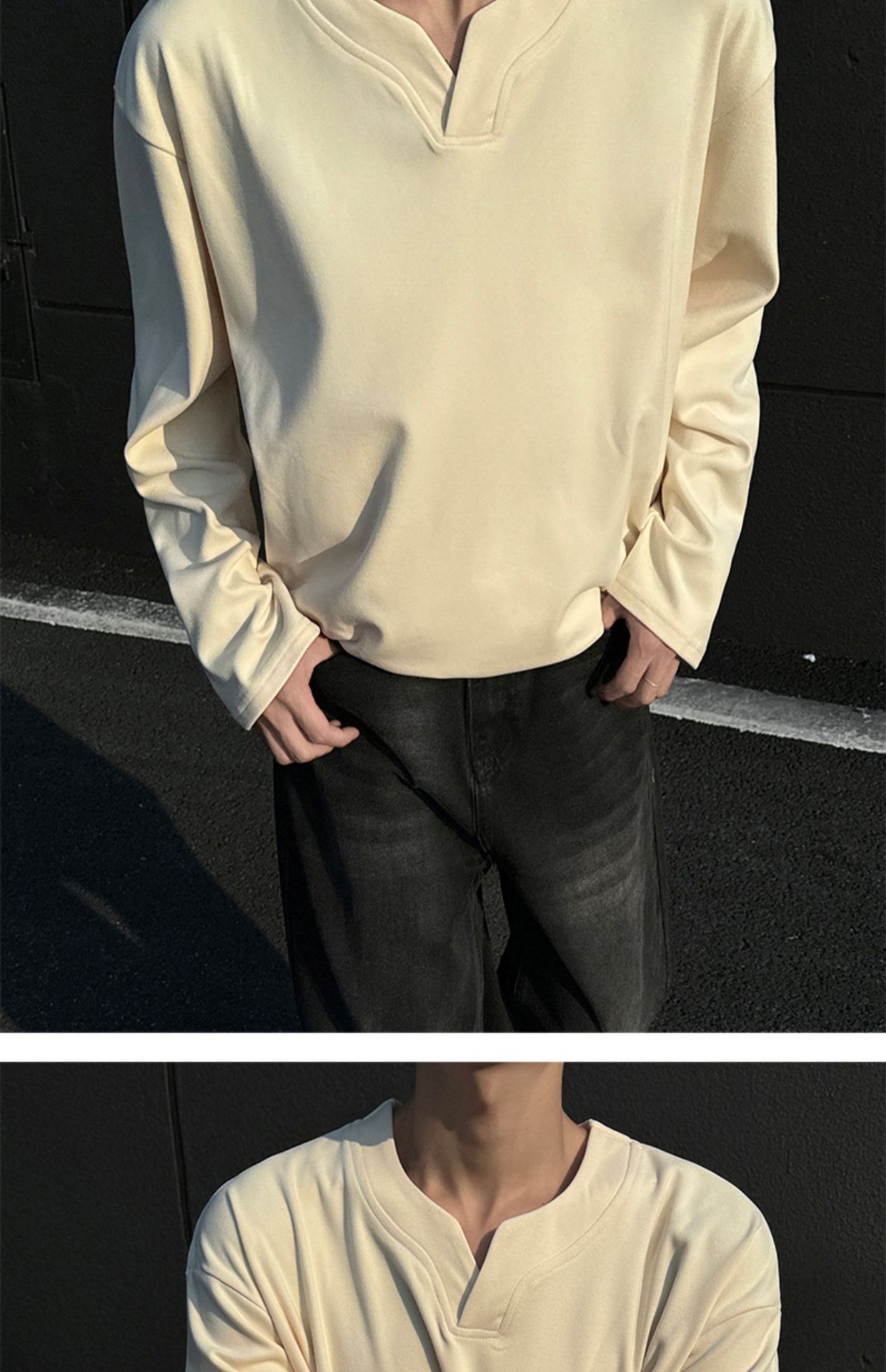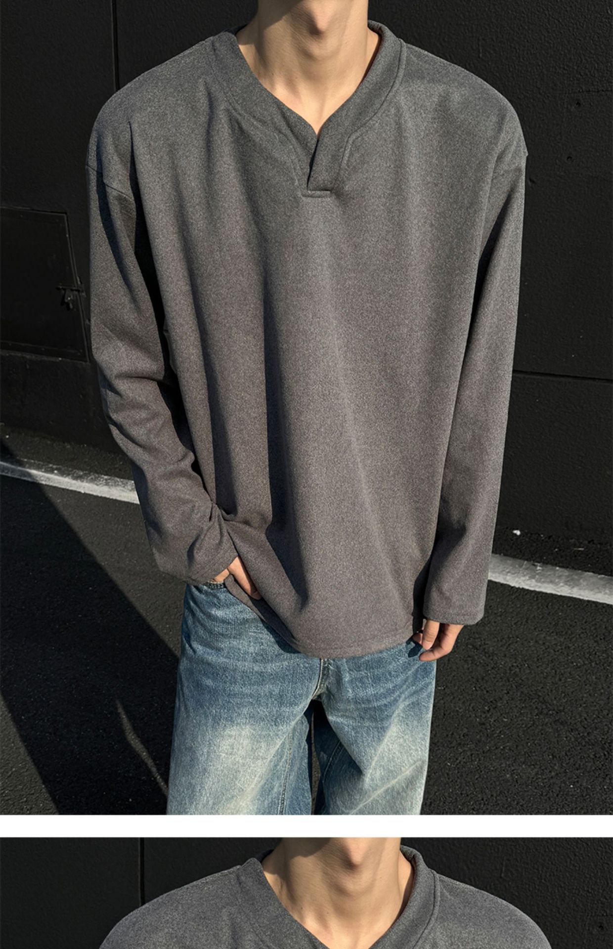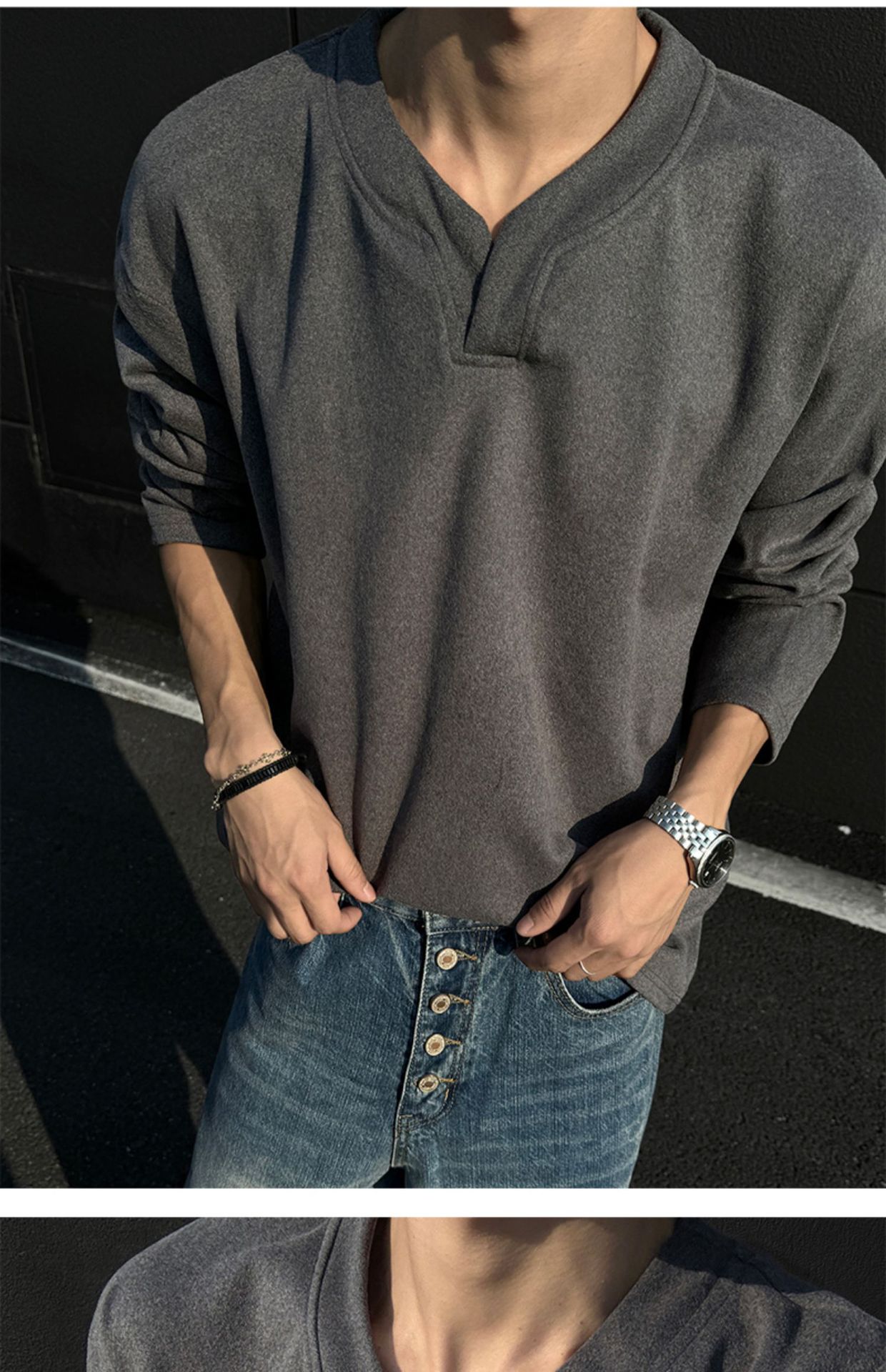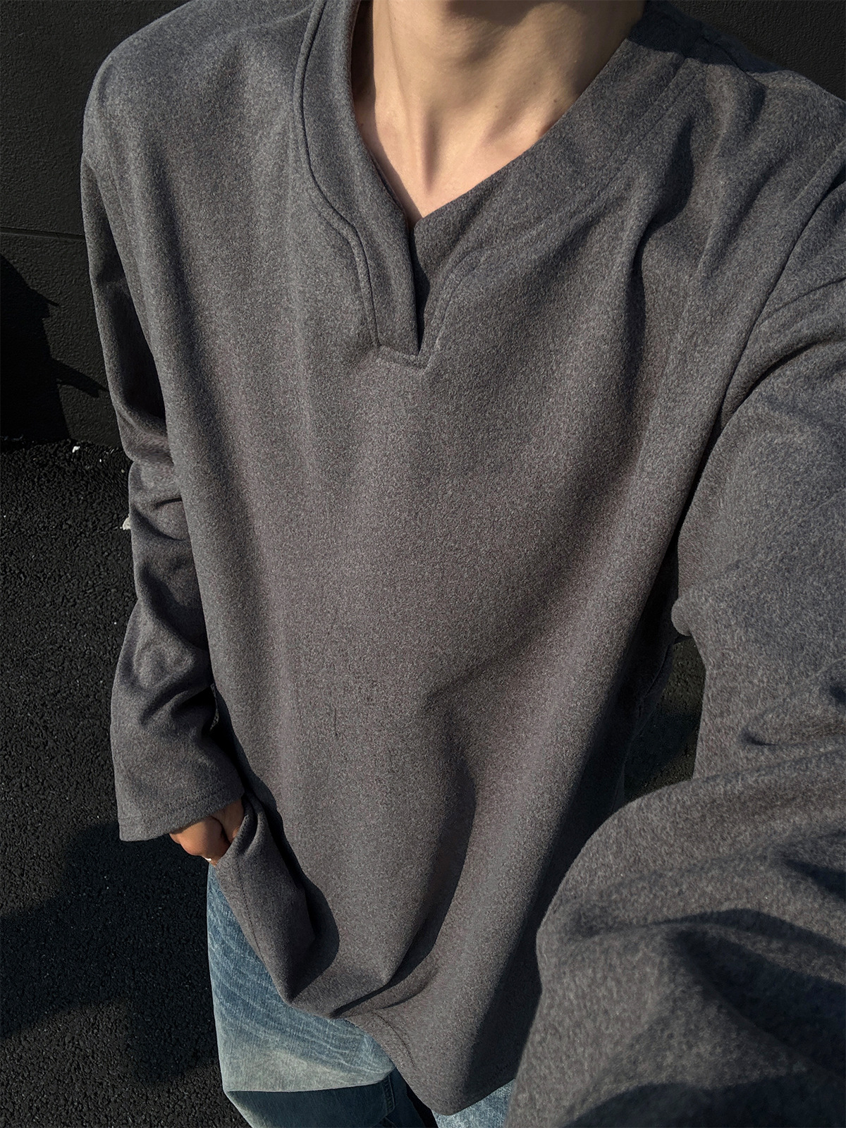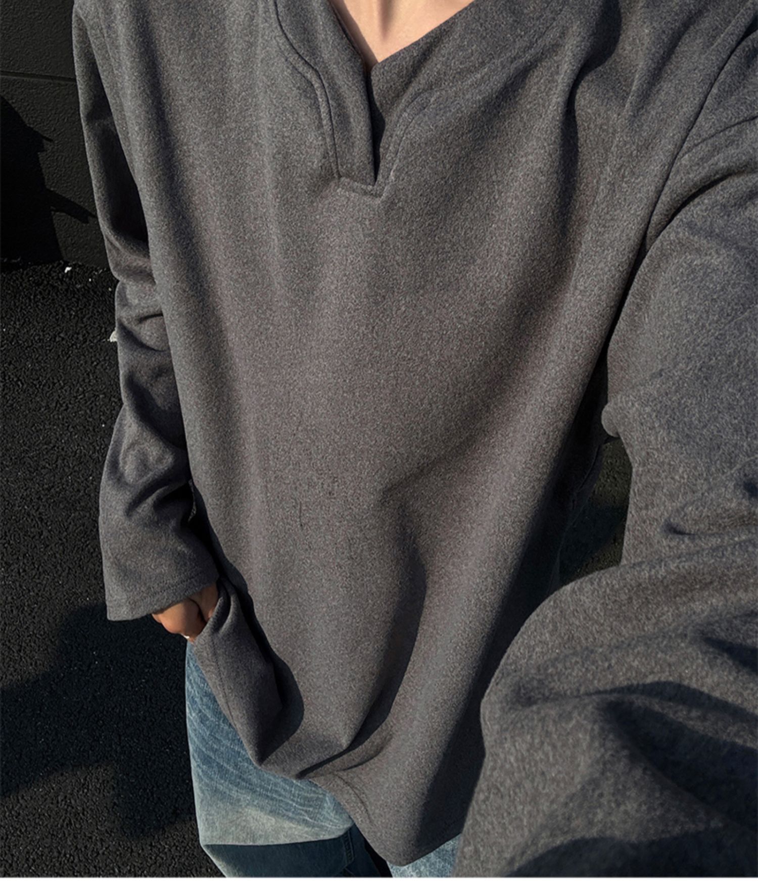 Футболка с длинным рукавом с V-образным вырезом весом 280 г для мужчин осень-зима cleanfit американский прилив с нижней рубашкой свитер