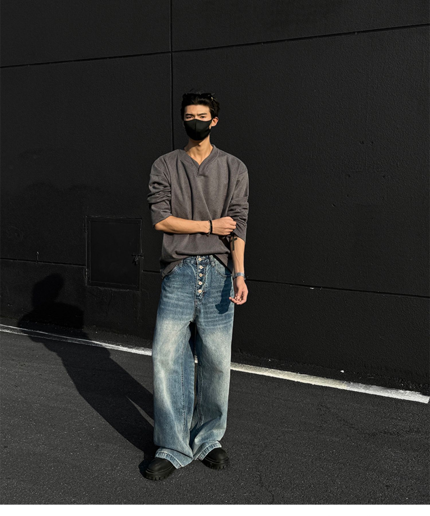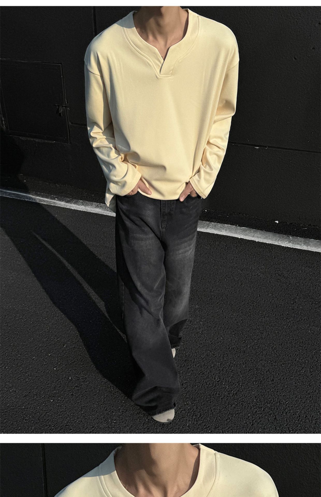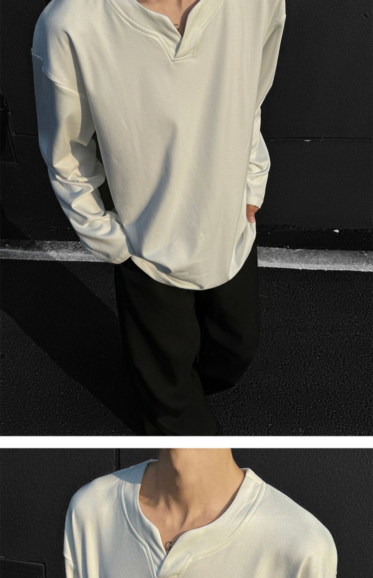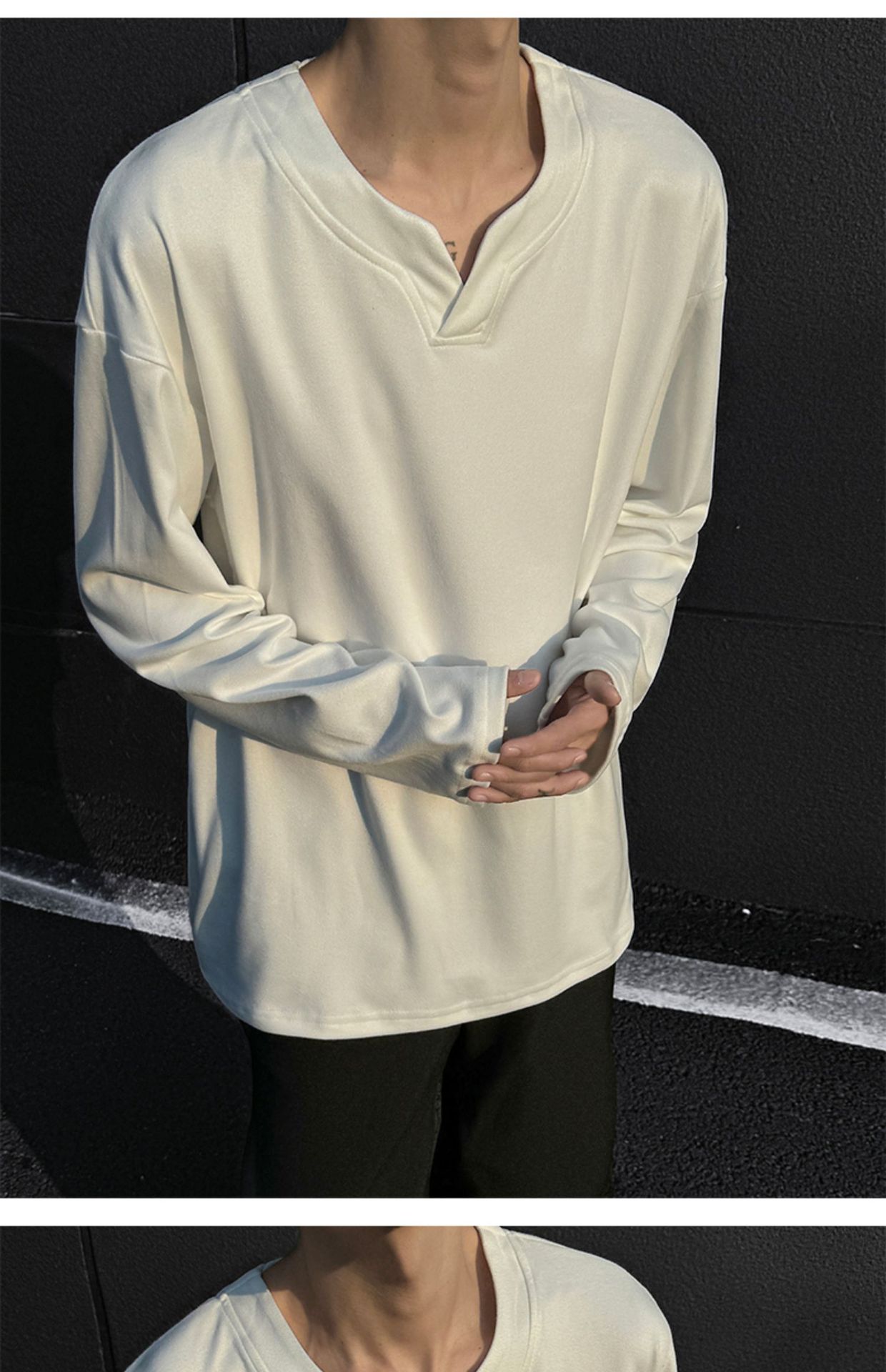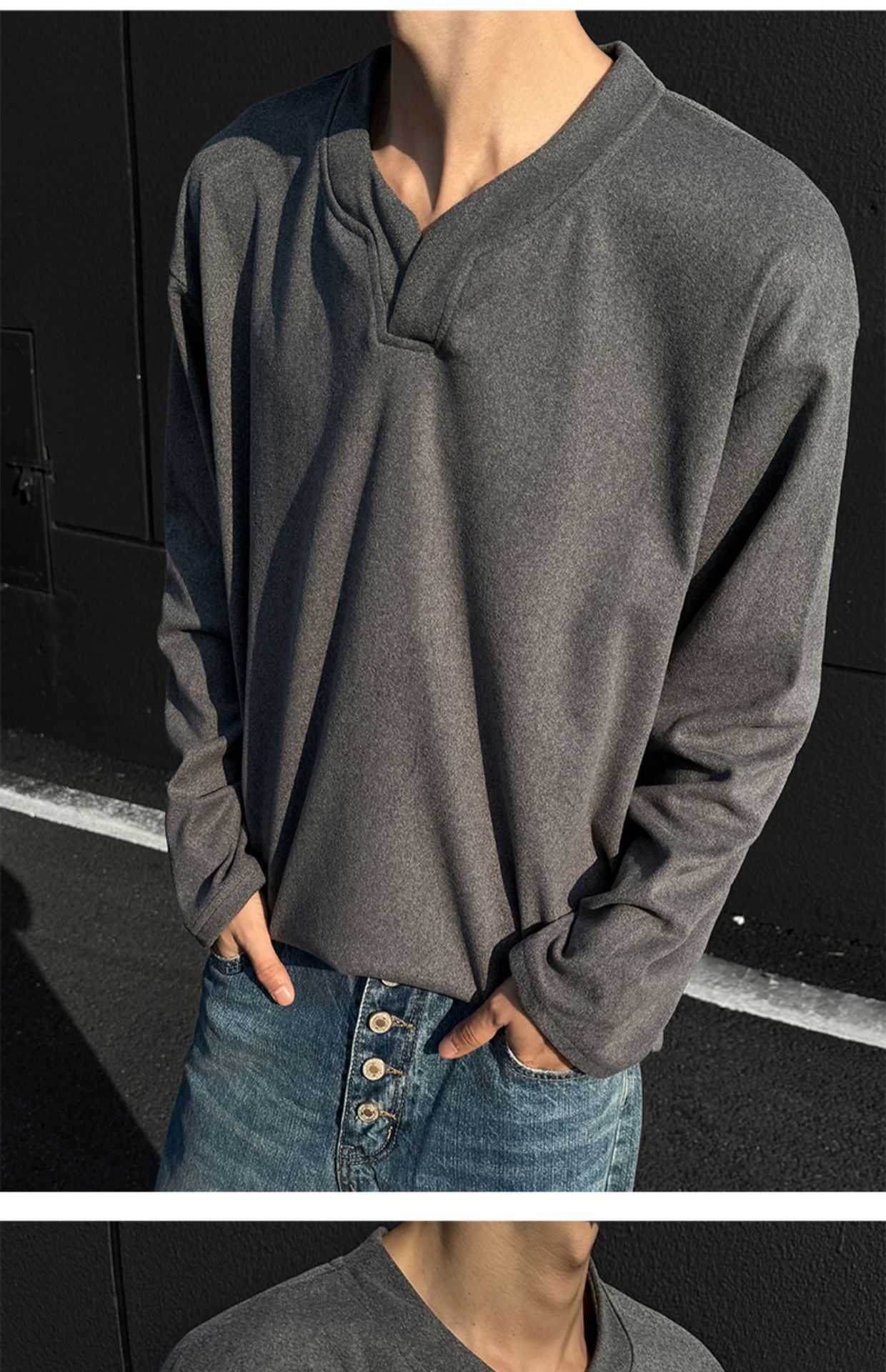 Футболка с длинным рукавом с V-образным вырезом весом 280 г для мужчин осень-зима cleanfit американский прилив с нижней рубашкой свитер