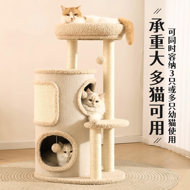 2.关于剑麻柱:部分顾客反映剑麻柱扎手,很多假柱选用化学药品浸泡麻绳或者成本较低的黄麻、牛皮纸绳,手感摸上去不扎手,但是不耐抓不耐挠,猫咪喜欢轻微扎手感的剑麻,符合磨爪习惯且更耐抓、耐用。