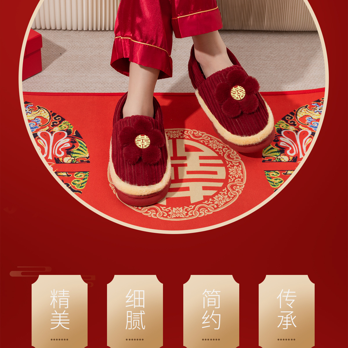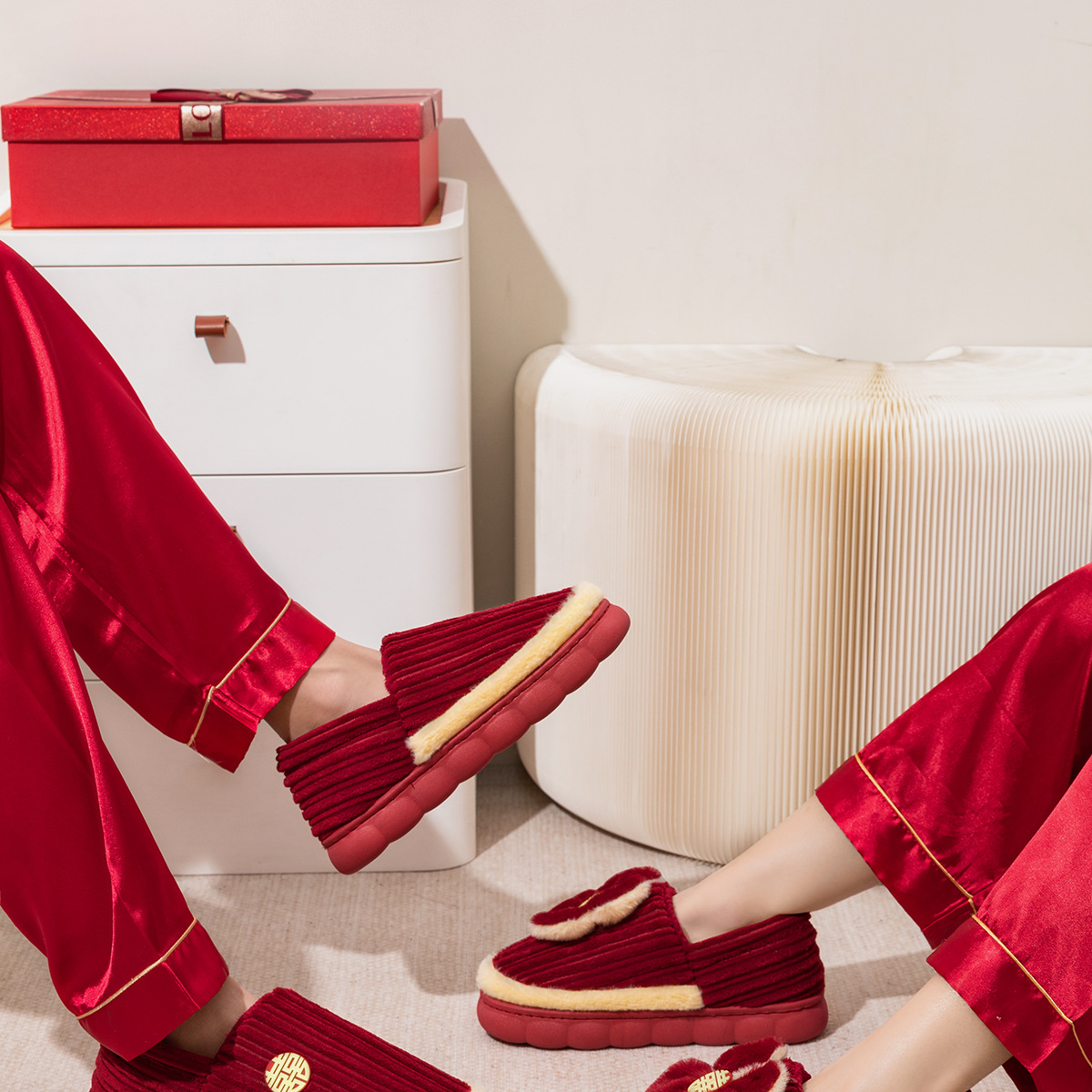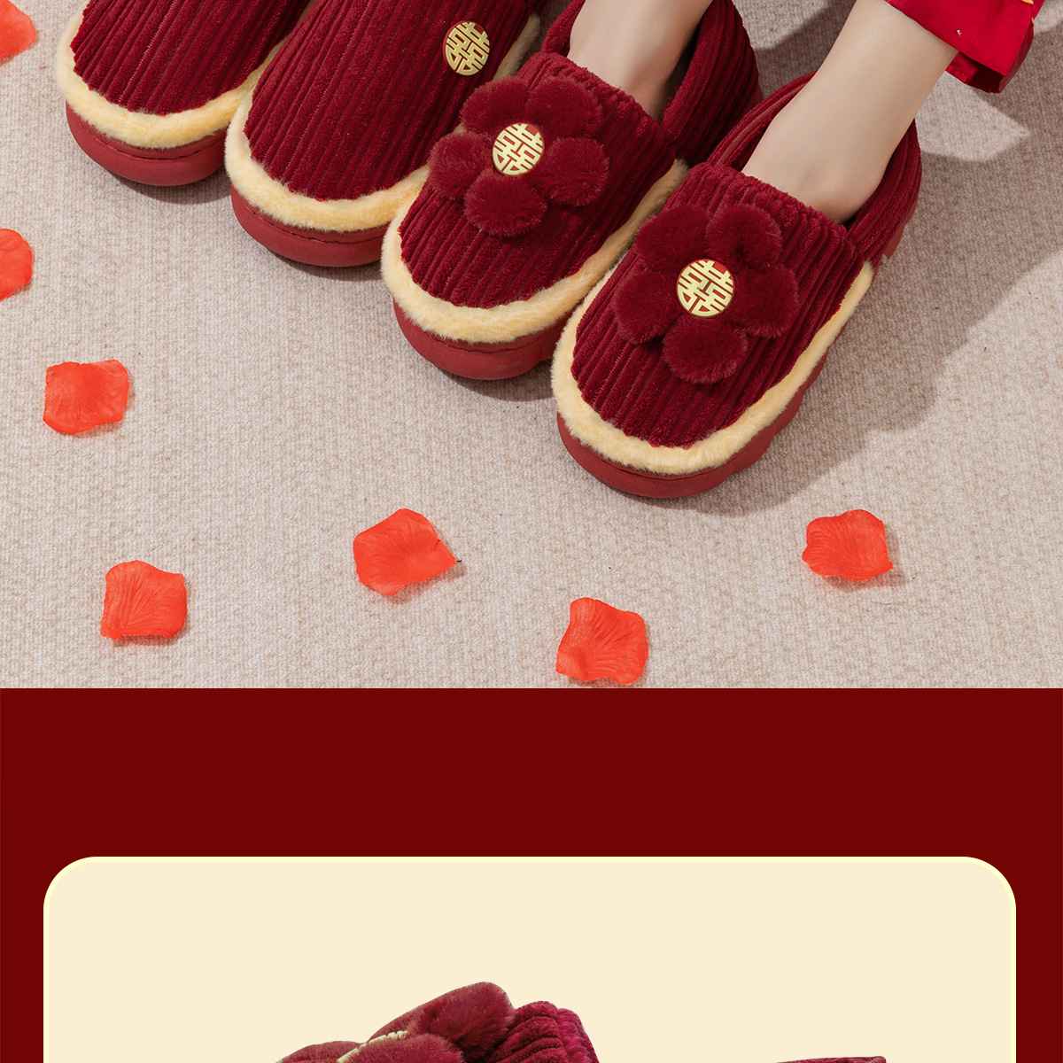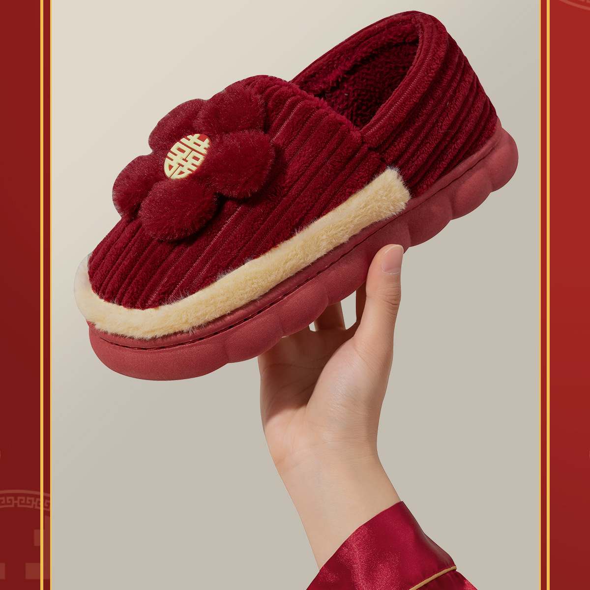 Красные хлопковые тапочки Зимние свадебные тапочки